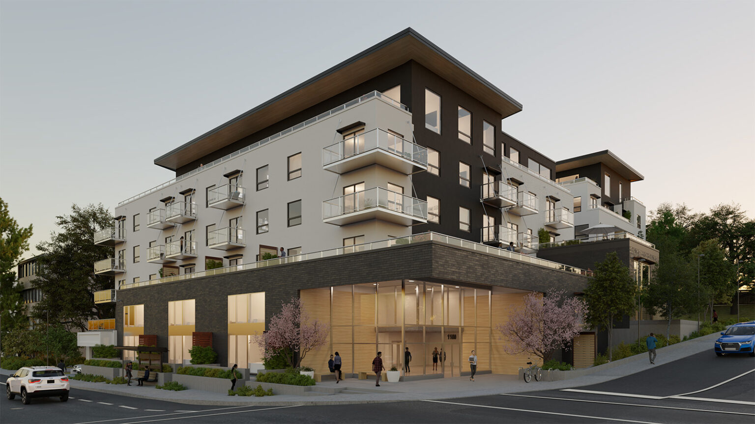 A two tower 89 unit development on the corner of Lampson Street and Esquimalt Road.