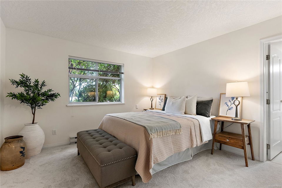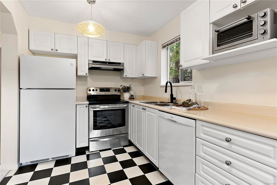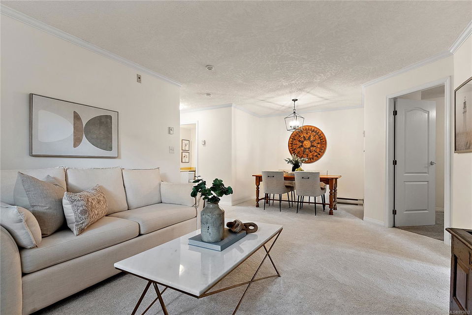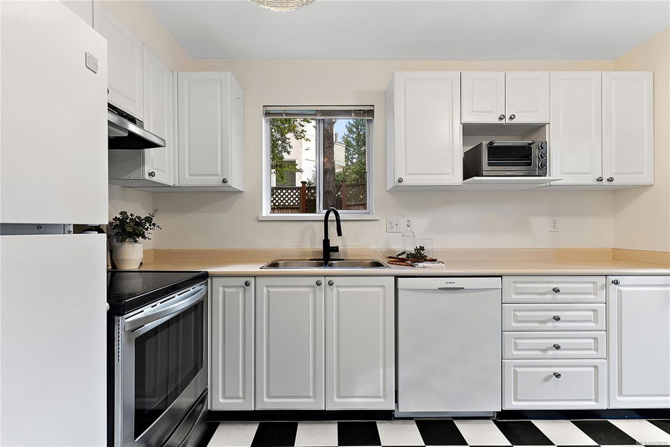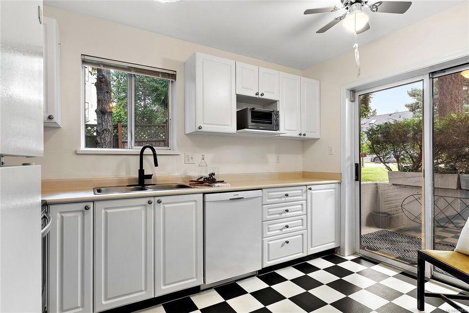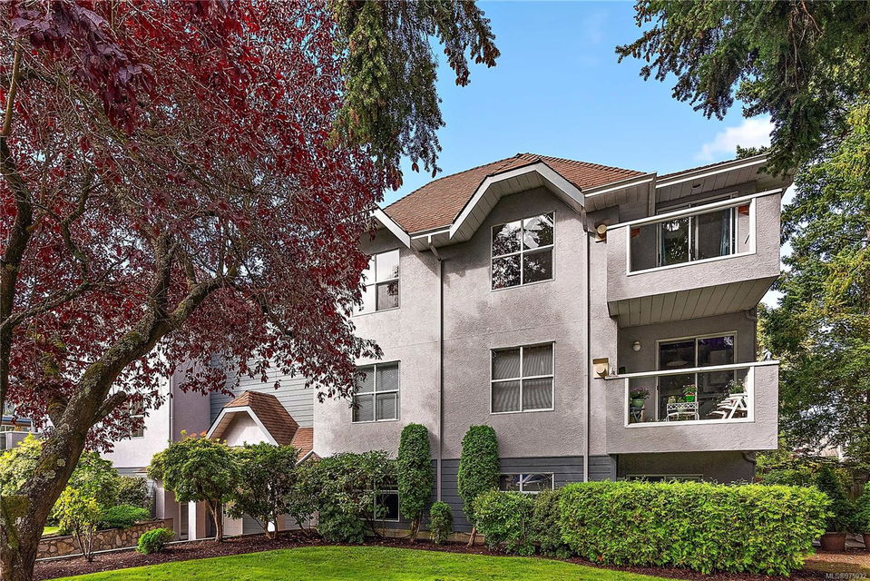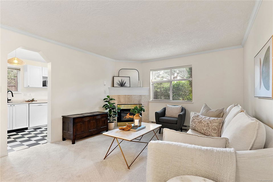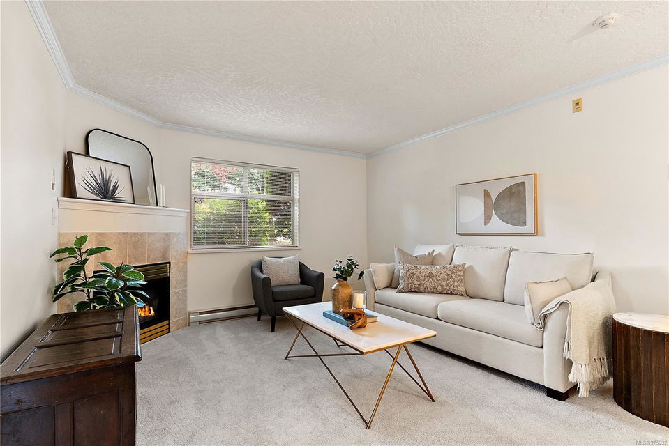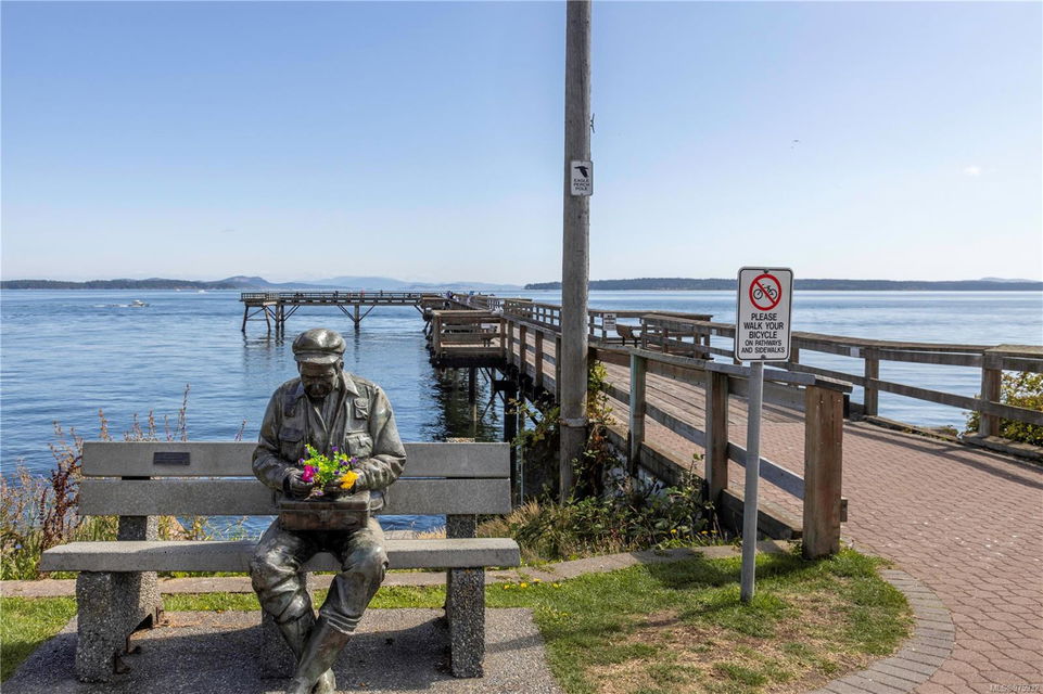 Experience the ease and allure of living just steps away from downtown Sidney. This prime location is close to shopping, restaurants, banks, bus routes, and theaters, offering unparalleled convenience. Nestled in a small, welcoming complex of just 9 units, this 1994, 2-bedroom, 2-bathroom condo is the ideal home. The corner unit features spacious living and dining areas, enhanced by a cozy gas fireplace. The functional kitchen boasts an eating area and ample cabinet space, perfect for culinary enthusiasts. Sliding doors in the kitchen lead to a private ground-level patio, offering a serene space to unwind. The primary bedroom includes a 3-piece ensuite bath, with laundry facilities conveniently located nearby. The meticulously maintained grounds add to the overall appeal, ensuring a pleasant living environment. This condo is in excellent condition, reflecting the careful attention given to its upkeep. Additional features include one parking spot, a storage locker, and a pet-friendly policy allowing one dog or one cat. This desirable property is perfect for those seeking both comfort and convenience.