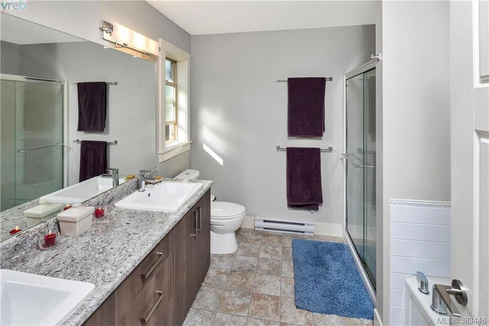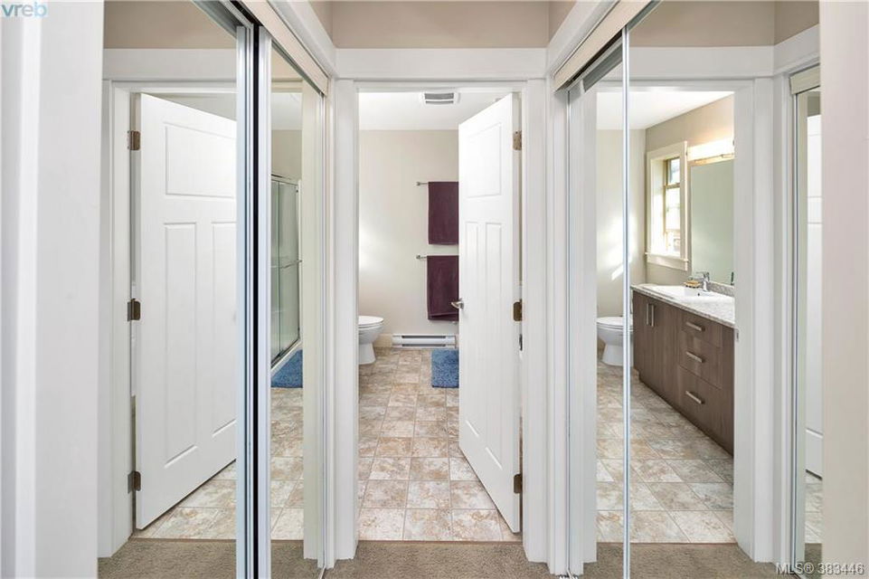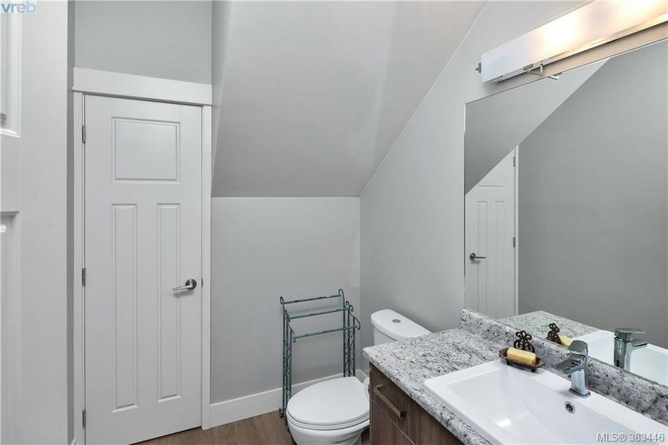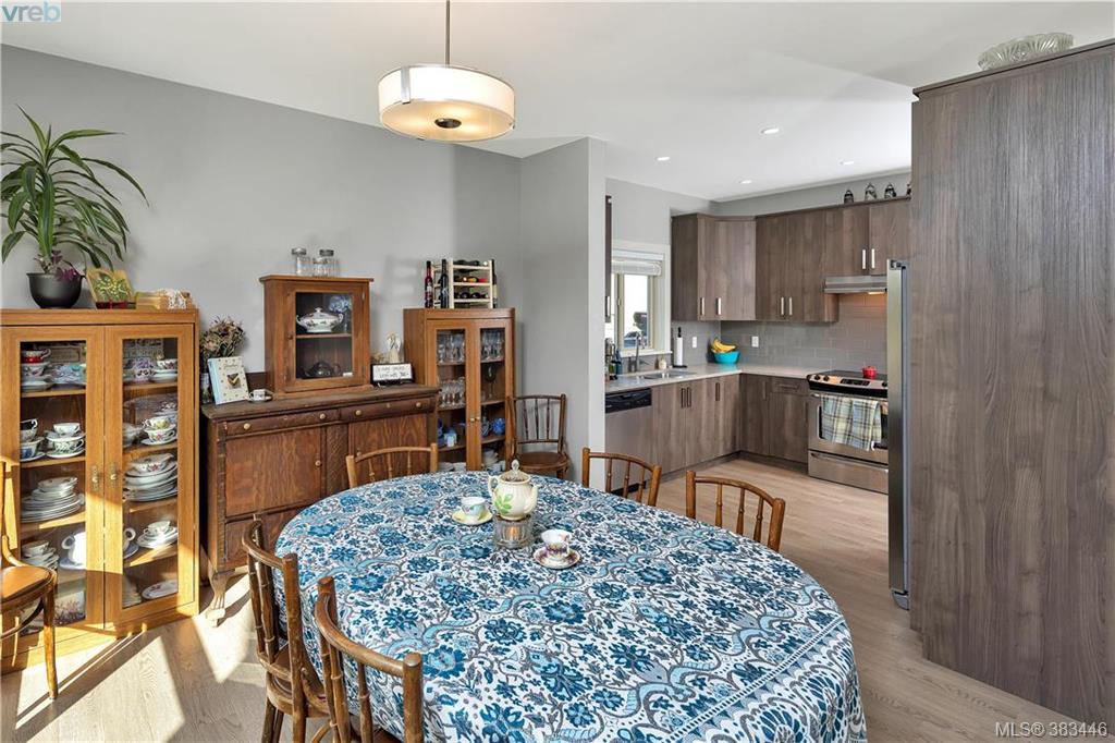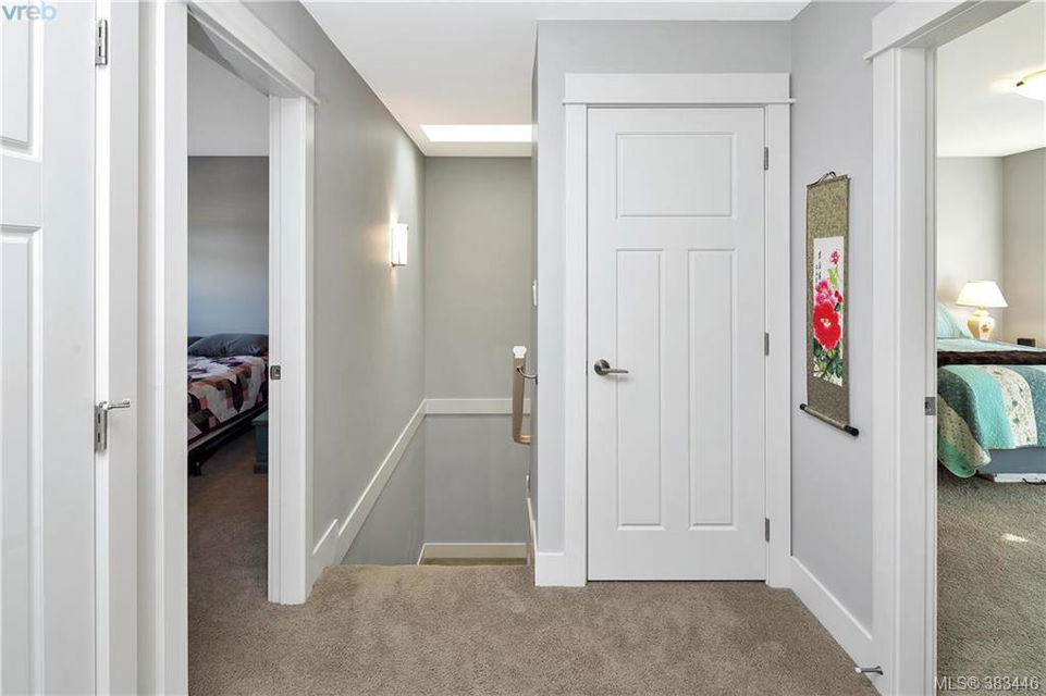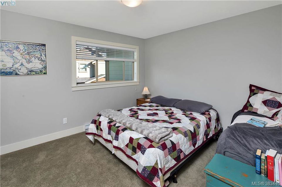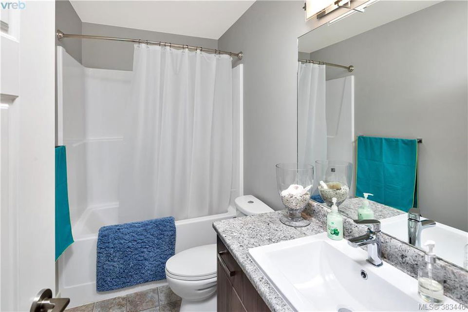 NEW PRICE Beautiful 2015 built, 1710 sq. ft. 3 bed+Den, 3 bath townhouse located in the heart of Sooke in the sought after ‘Townsend Park’ complex. Laminate floors, kitchen with quartz counters, high-end appliances and window blinds. Glass paneled garage door, glass front door, over-sized windows throughout, contemporary upscale finishing details, and 9ft ceilings give the home a modern and flexible living experience. Unit has covered front porch and a rear patio perfect for the BBQ. This home has a fenced yard and the complex backs on to the municipal trail system just a short walk to schools and the town core. The main floor has excellent flow between the kitchen, eating and living/den areas and the upstairs has the 3 large bedrooms, two full baths. Master is sure to please with 5 piece ensuite inc soaker tub, separate shower and a walk-in closet. Low monthly strata fees, pets and families welcome. Check out the 3D tour.