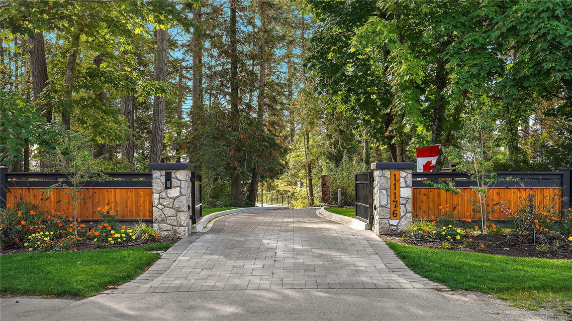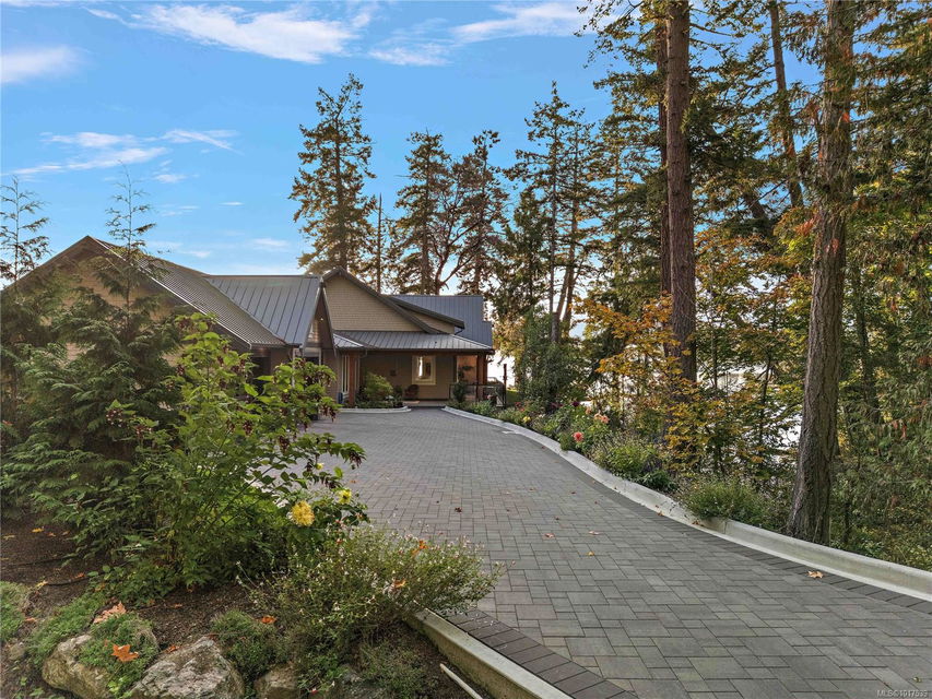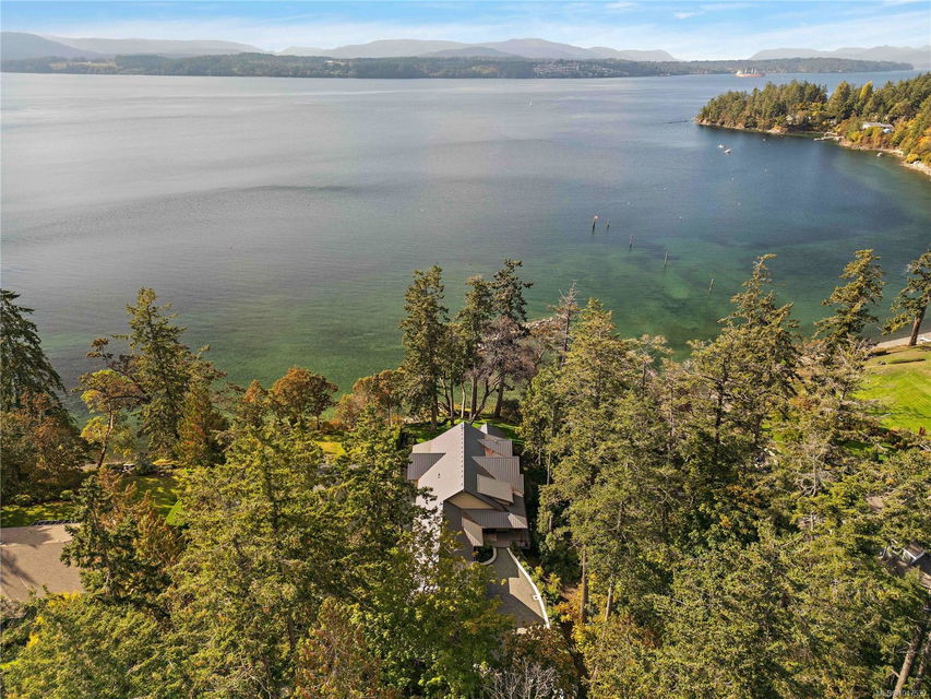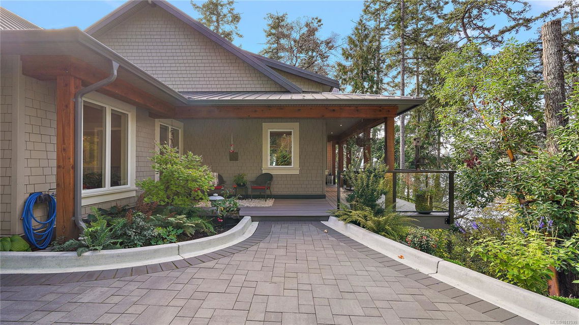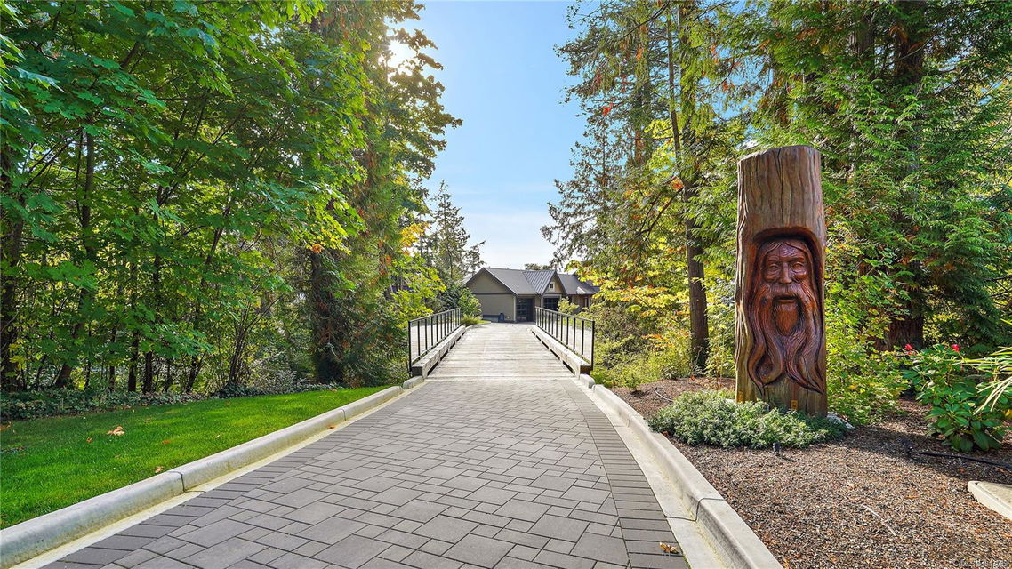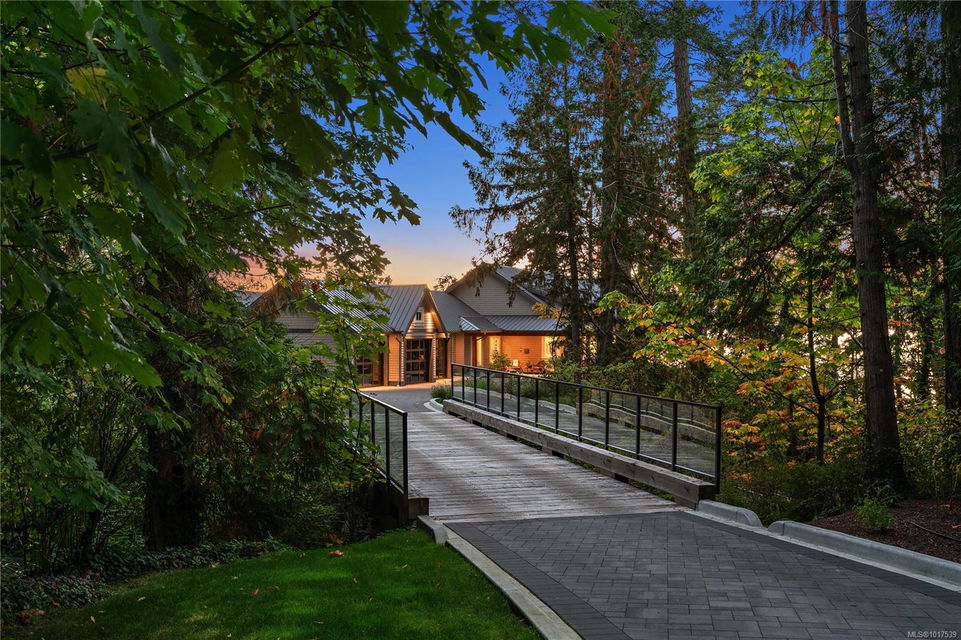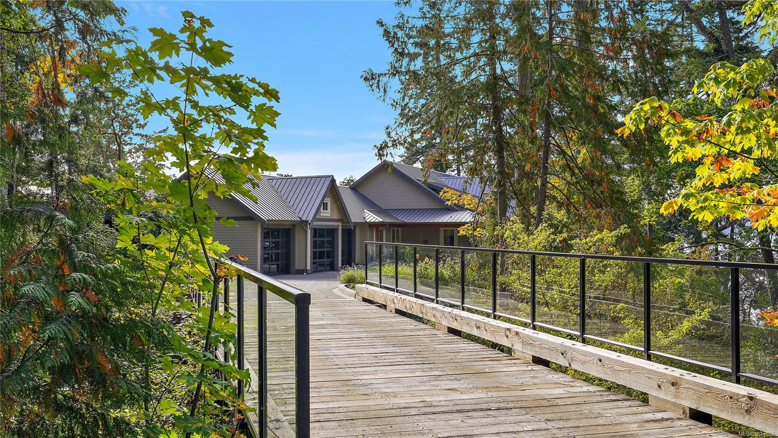 Magnificent WATERFRONT ranch-style home, nestled on a beautifully landscaped 1.25-acre estate with sweeping Saanich Inlet views. This 4,352 sqft coastal masterpiece, built with exceptional quality, captures stunning sunsets and marine life through large windows and vaulted ceilings. The gated property’s standout feature is its enchanting, whimsical bridge—a charming, storybook-like driveway that elevates the setting with magical tone of exclusivity and wonder. Inside, a chef’s kitchen dazzles with a quartz island, Wolf gas range, shaker cabinets, and premium appliances, while the primary suite offers a spa-like 5-piece ensuite and walk-in closet. Entertain in style with a vibrant games room and an extraordinary wine cellar, perfect for sophisticated gatherings. Outside, expansive covered patios, an outdoor kitchen, and meticulously landscaped grounds with pathways enhance the allure. An oversized triple garage, heat pump with A/C, and metal roof ensure comfort and durability. Located on the sunny west side of the Saanich Peninsula in tranquil Deep Cove, steps from the renowned Deep Cove Chalet and close to Sidney, BC Ferries, and the International Airport, this private sanctuary is just minutes to major services but offers the rural estate feel where you can buy fresh dinner ingredients from farms stands on your route to your favorite lunch spots.
