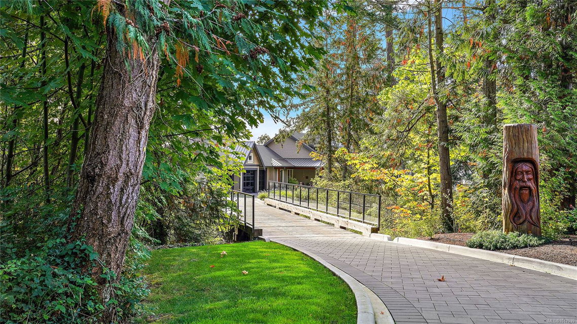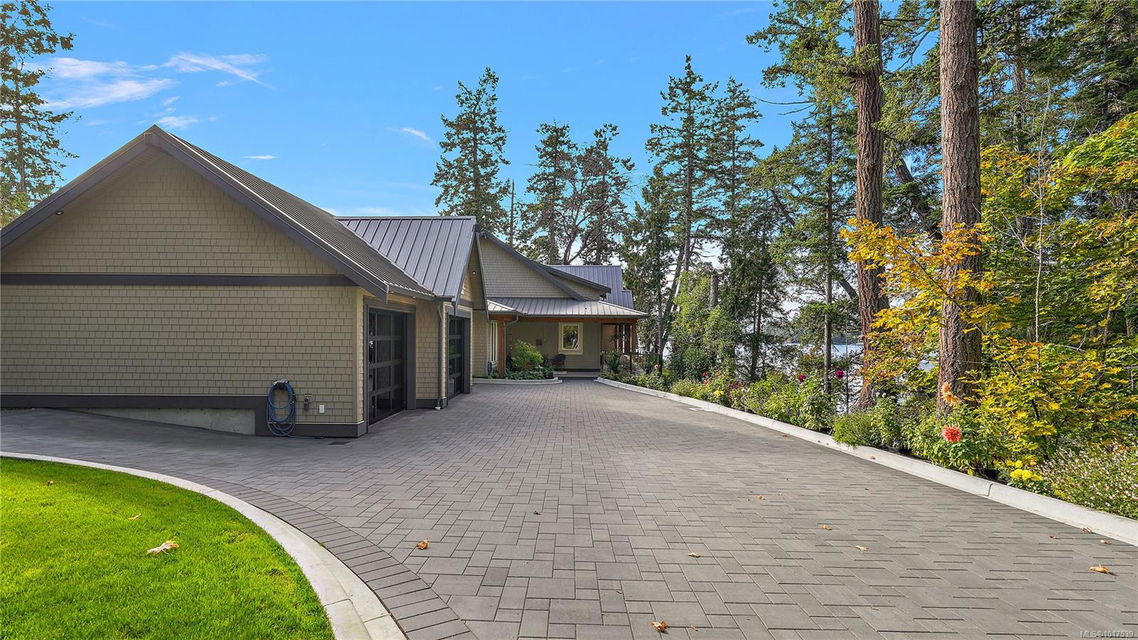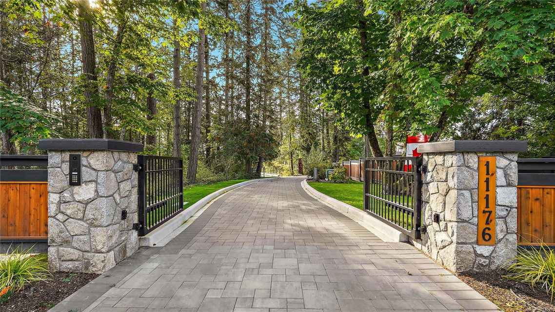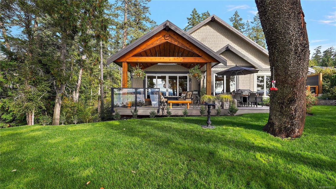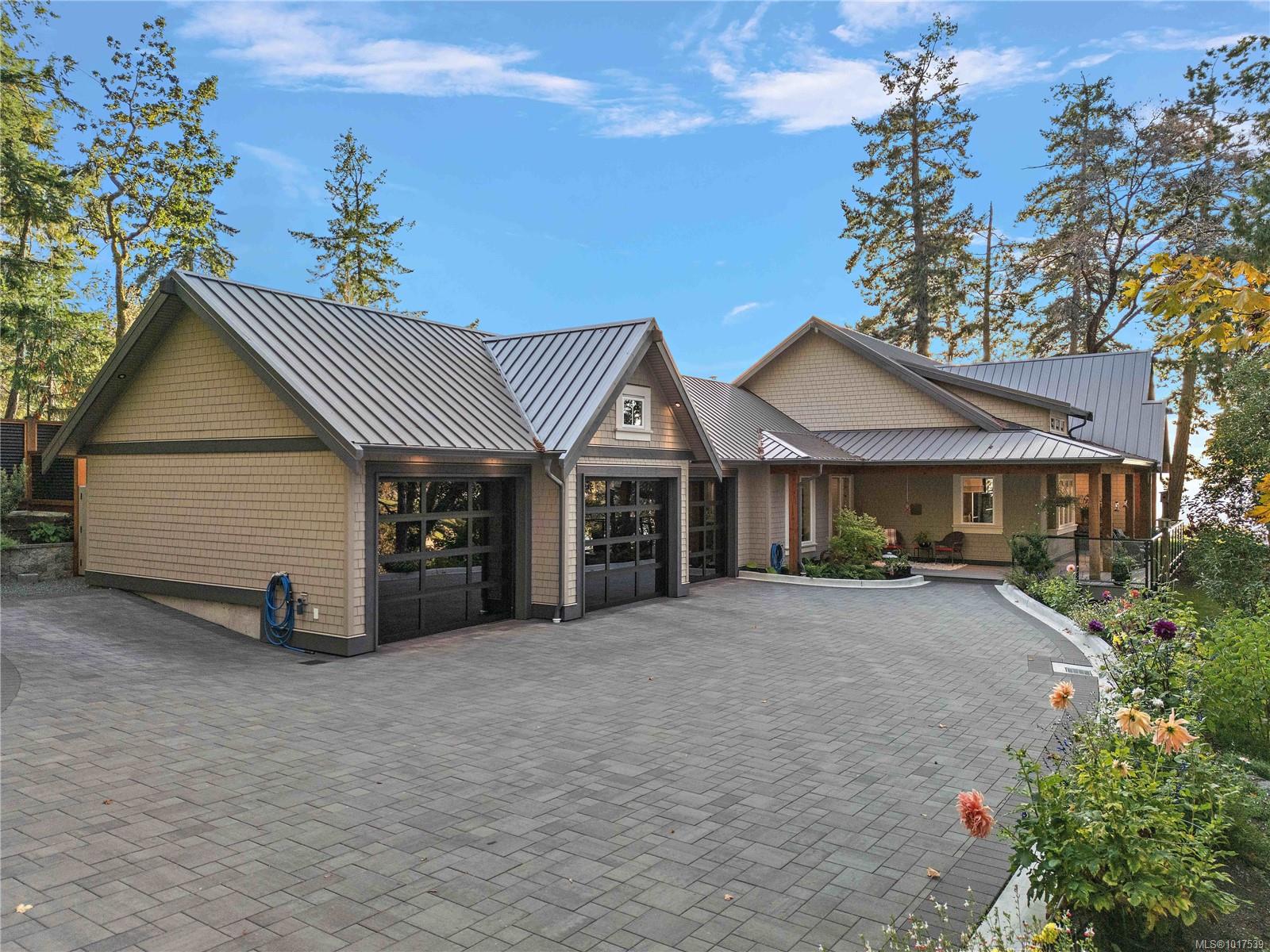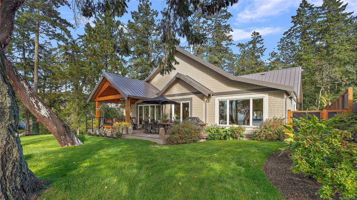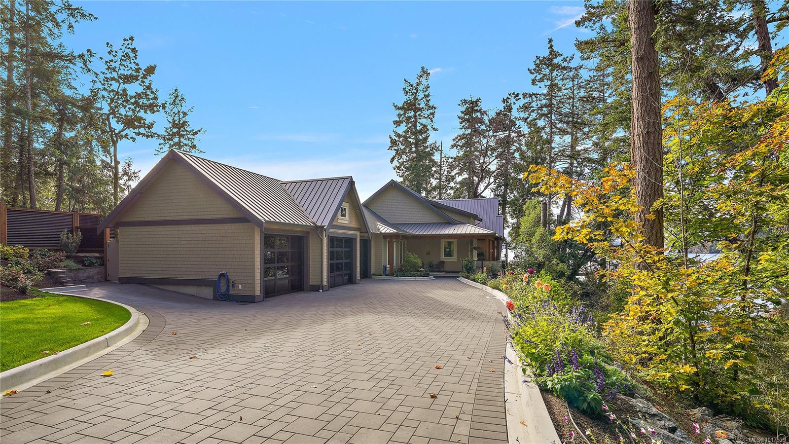 Magnificent WATERFRONT ranch-style home, nestled on a beautifully landscaped 1.25-acre estate with sweeping Saanich Inlet views. This 4,352 sqft coastal masterpiece, built with exceptional quality, captures stunning sunsets and marine life through large windows and vaulted ceilings. The gated property’s standout feature is its enchanting, whimsical bridge—a charming, storybook-like driveway that elevates the setting with magical tone of exclusivity and wonder. Inside, a chef’s kitchen dazzles with a quartz island, Wolf gas range, shaker cabinets, and premium appliances, while the primary suite offers a spa-like 5-piece ensuite and walk-in closet. Entertain in style with a vibrant games room and an extraordinary wine cellar, perfect for sophisticated gatherings. Outside, expansive covered patios, an outdoor kitchen, and meticulously landscaped grounds with pathways enhance the allure. An oversized triple garage, heat pump with A/C, and metal roof ensure comfort and durability. Located on the sunny west side of the Saanich Peninsula in tranquil Deep Cove, steps from the renowned Deep Cove Chalet and close to Sidney, BC Ferries, and the International Airport, this private sanctuary is just minutes to major services but offers the rural estate feel where you can buy fresh dinner ingredients from farms stands on your route to your favorite lunch spots.