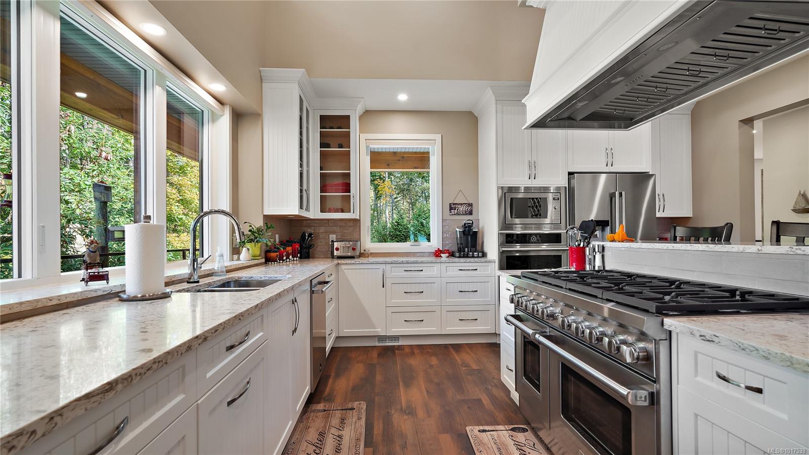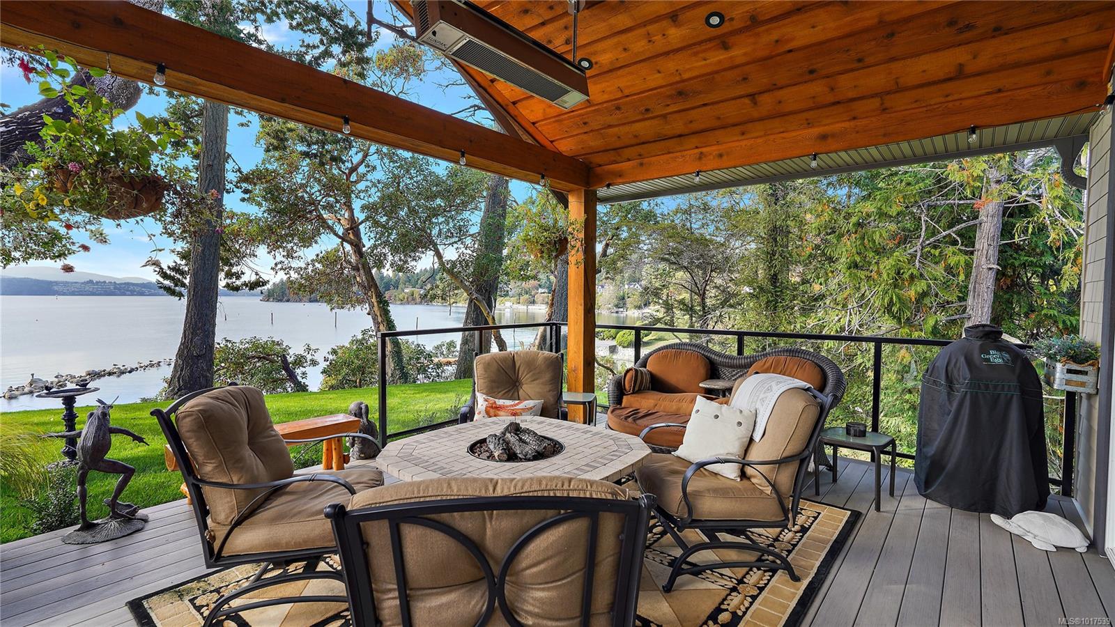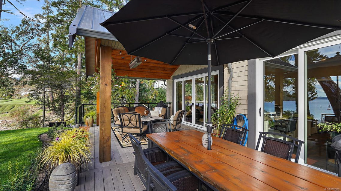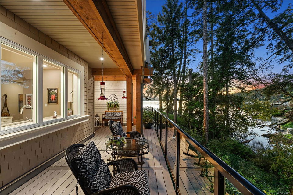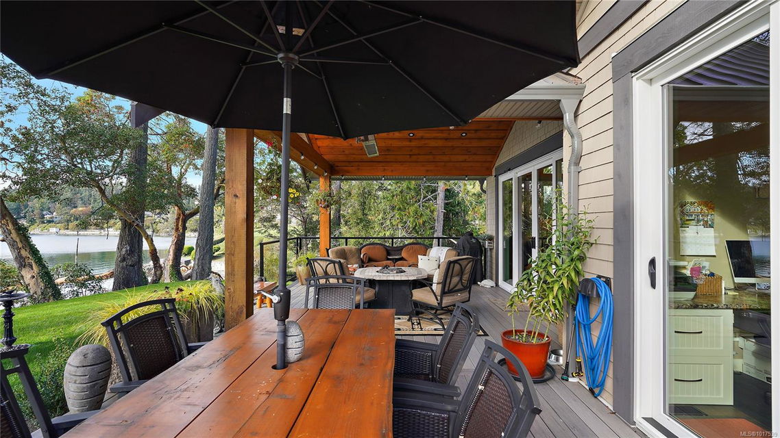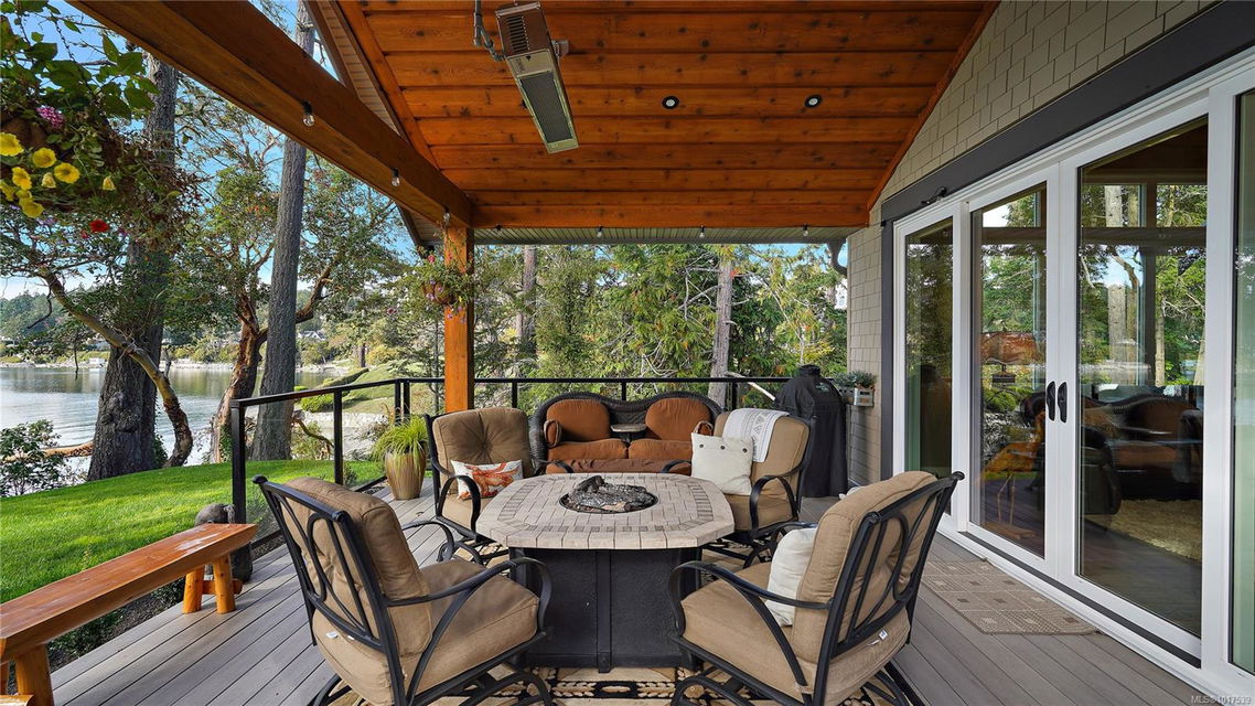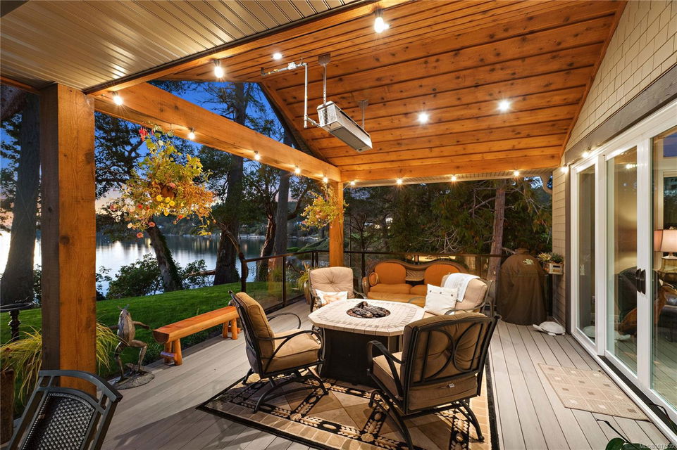 Magnificent WATERFRONT ranch-style home, nestled on a beautifully landscaped 1.25-acre estate with sweeping Saanich Inlet views. This 4,352 sqft coastal masterpiece, built with exceptional quality, captures stunning sunsets and marine life through large windows and vaulted ceilings. The gated property’s standout feature is its enchanting, whimsical bridge—a charming, storybook-like driveway that elevates the setting with magical tone of exclusivity and wonder. Inside, a chef’s kitchen dazzles with a quartz island, Wolf gas range, shaker cabinets, and premium appliances, while the primary suite offers a spa-like 5-piece ensuite and walk-in closet. Entertain in style with a vibrant games room and an extraordinary wine cellar, perfect for sophisticated gatherings. Outside, expansive covered patios, an outdoor kitchen, and meticulously landscaped grounds with pathways enhance the allure. An oversized triple garage, heat pump with A/C, and metal roof ensure comfort and durability. Located on the sunny west side of the Saanich Peninsula in tranquil Deep Cove, steps from the renowned Deep Cove Chalet and close to Sidney, BC Ferries, and the International Airport, this private sanctuary is just minutes to major services but offers the rural estate feel where you can buy fresh dinner ingredients from farms stands on your route to your favorite lunch spots.