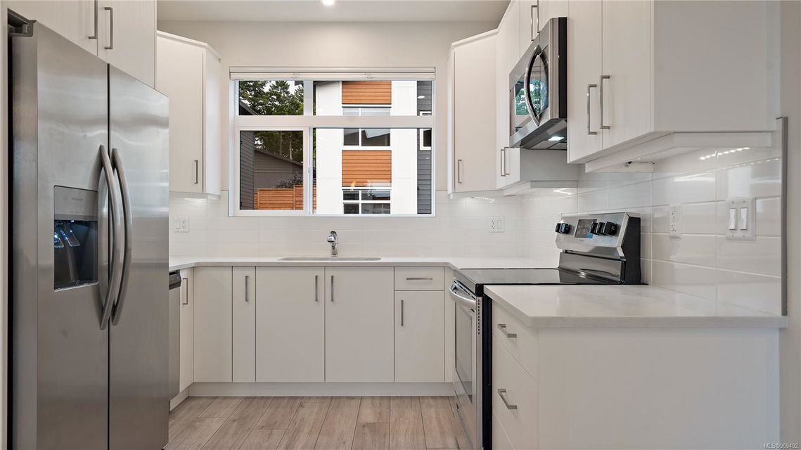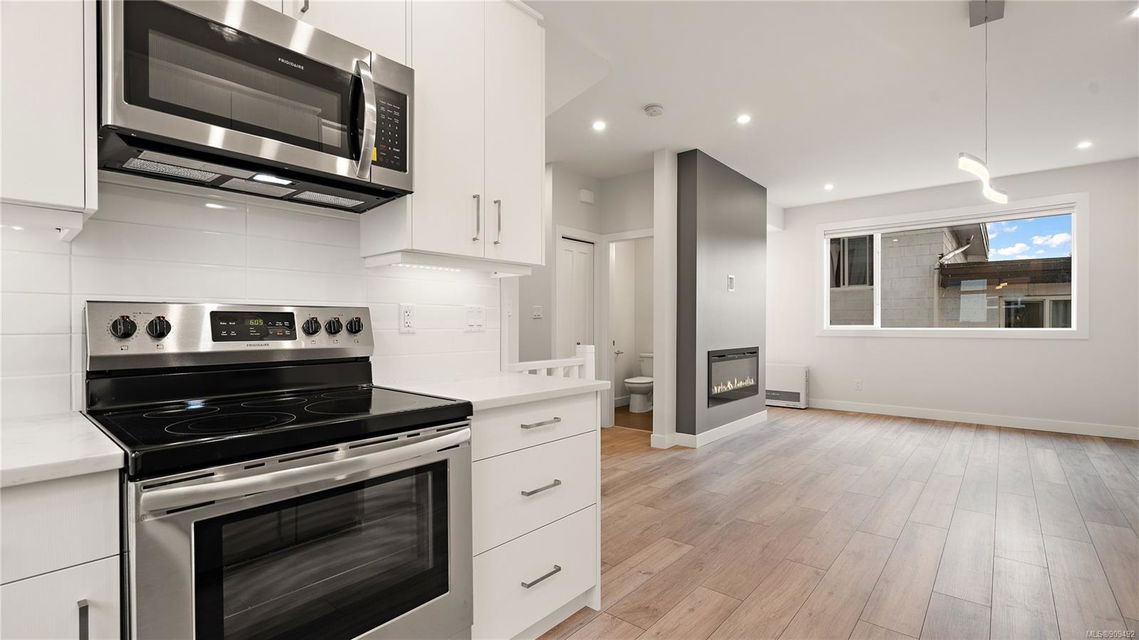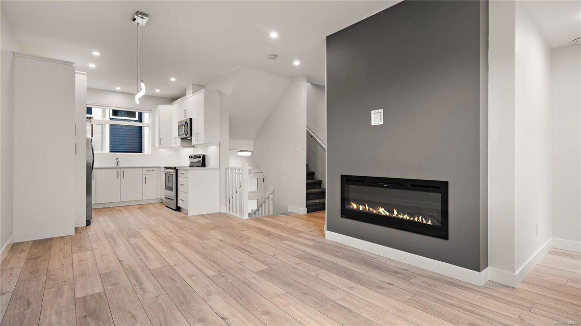 Brand new and never before occupied! Take immediate possession of this Modern & Stylish 2 bed+den townhome! You will be impressed by the thoughtful design & bright open layout of these homes! Featuring wide stairwells, 9′ ceilings on main & large windows. Enjoy the gourmet custom designed kitchen’s contemporary cabinetry, quartz counters, tile backsplash, under-cabinet lighting & full SS appliance pkg incl fridge w ice/water. Other features include a modern 50″ linear electric FP in the living room, powder room on main w/ quartz countertops, & stylish wide plank wood laminate floors on the main floor. Primary bedroom up boasts a stunning vaulted ceiling & 4pc ensuite including a floating vanity w motion lights below. Energy efficient gas fired wall furnace & on demand hot water heating will save on the energy bills! Featuring a small, landscaped rear yard (accessible from both the lower and main level) that includes privacy fencing, irrigation, & low maintenance artificial turf!