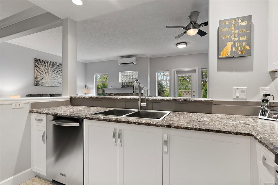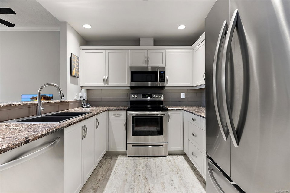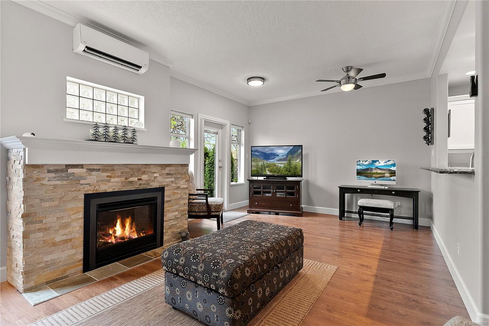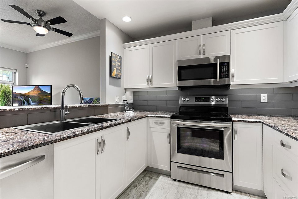 You will fall in LOVE with this beautiful 3 bedroom, 3 bathroom townhome in the popular Lakehill Estates. This delightful unit has been meticulously maintained & beautifully updated including a heat pump for year round comfort. The large living room has a new high-efficiency gas fireplace, with a wall of south-facing windows for year-round natural light, with access to the private patio garden backing onto a greenbelt. The kitchen has been completely updated with newer stainless steel appliances and an eating bar. Upstairs, find the Primary bedroom with an ensuite: two additional bright bedrooms, sharing a four-piece bathroom & a centrally located laundry room. Featuring lots of storage space, including a fully cemented crawlspace & a secure garage. Privacy abounds for relaxation in the gorgeous sun-soaked backyard. The location is absolutely ideal, close to restaurants, shopping, transit, UVIC and all levels of schools. Steps from the Galloping Goose & popular Lochside Trail.