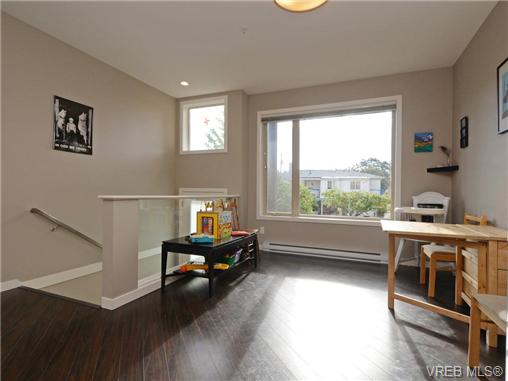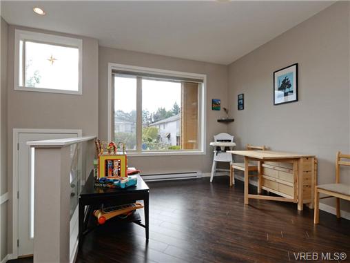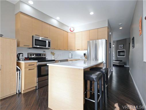 Awesome corner unit town house set far back from Peatt Rd. Featuring 4 beds and 3 baths this contemporary unit offers a lot of flexibility for your family. The focal point of the home is the dream kitchen featuring 6 high-end appliances, custom Wenge & Quartercut oak cabinetry and quartz counters. Tons of extra windows being a corner unit and the 9ft ceilings make for a bright airy feel. Spacious master with ensuite, large dining area, oversized single car garage with lots of storage and parking for 2. Lovely rear patio and private garden. This location boasts a terrific walk score with almost every amenity at your fingertips. Come experience all that downtown Langford has to offer!