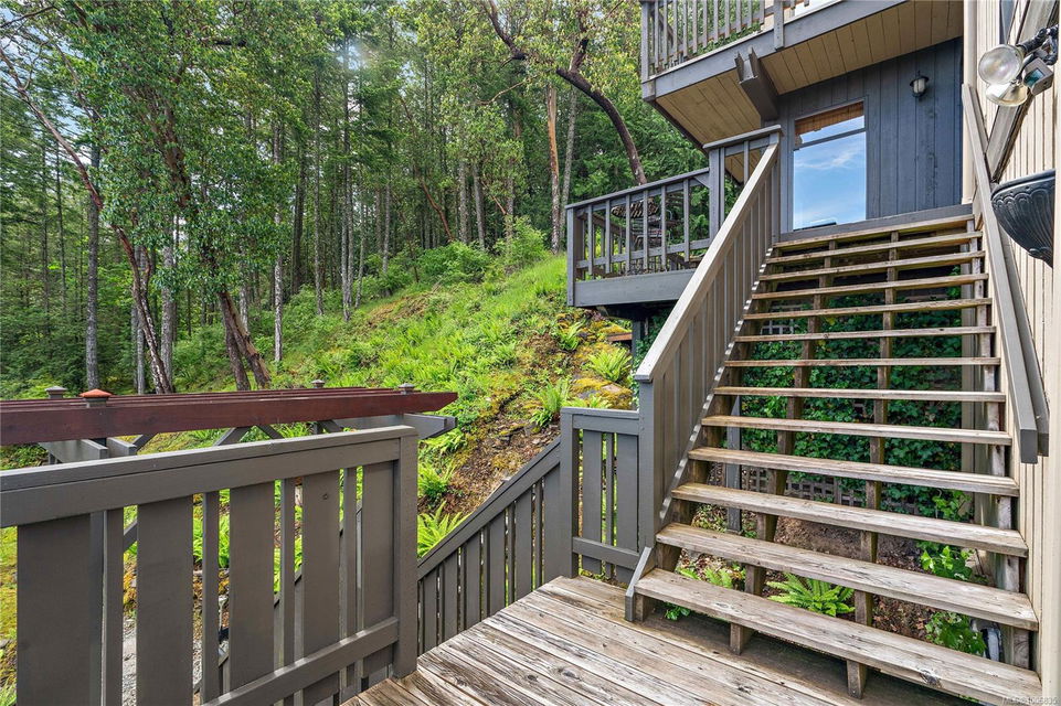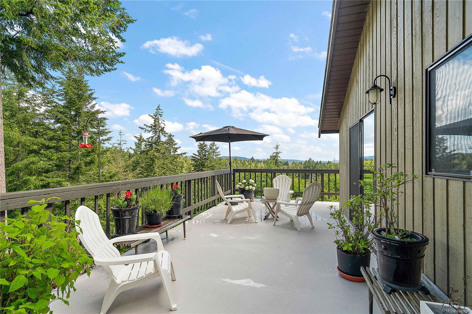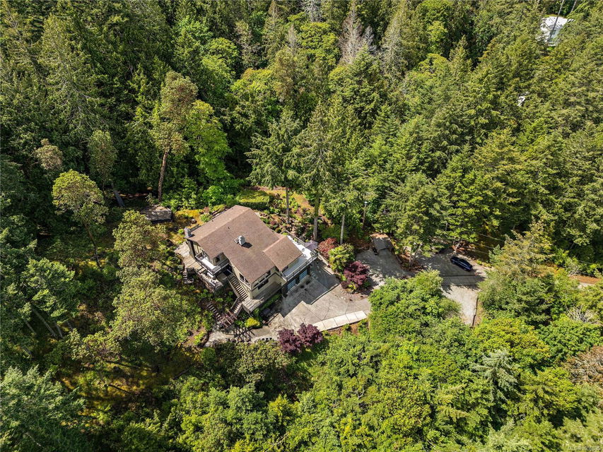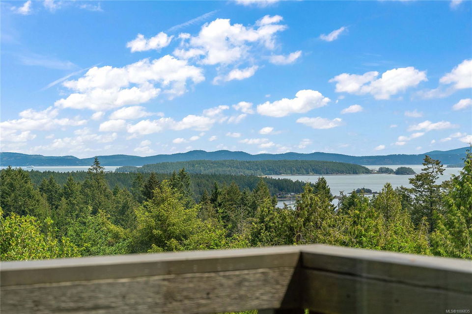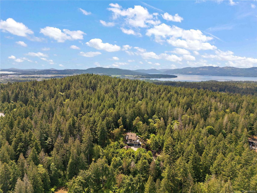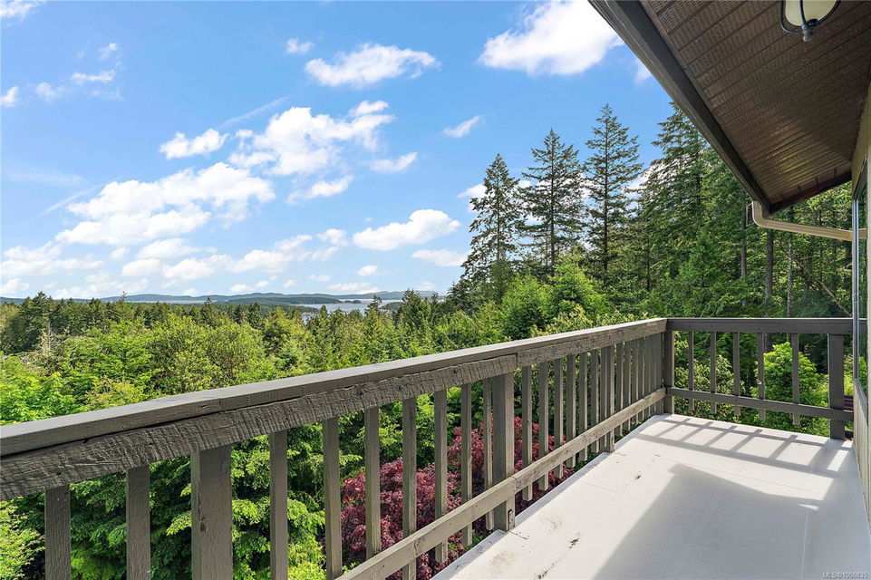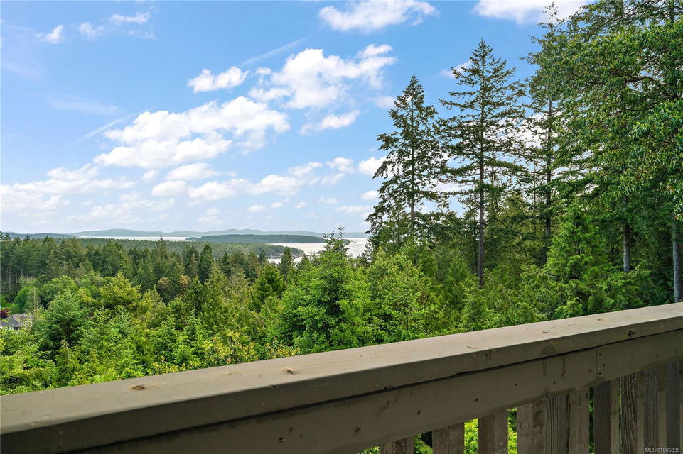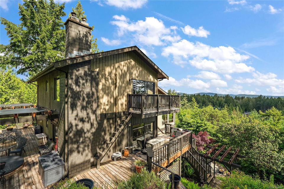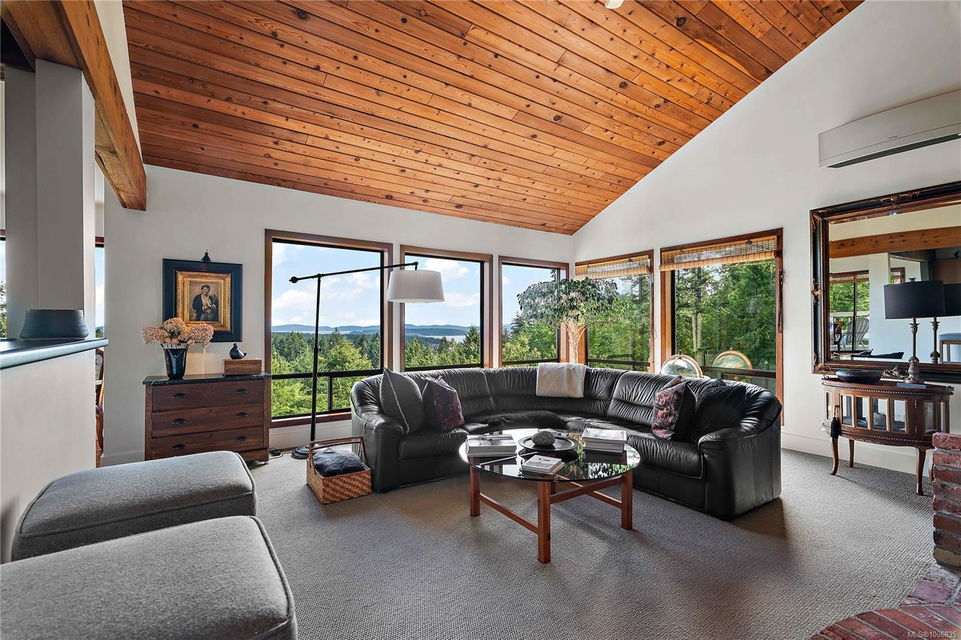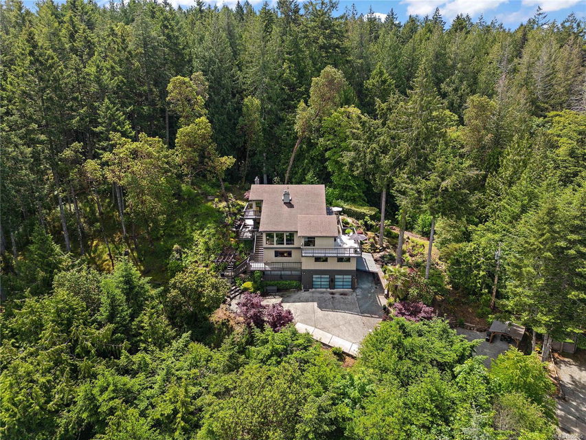 Discover extensive ocean views and privacy at 1595 Eagle Way. This stunning west coast contemporary home, nestled on 3.6 acres in North Saanich overlooks the Gulf Islands and across to three ski slopes in North Vancouver. Backing onto Horth Hill park and its nature trails, this 3,092 sq ft residence features 3 bedrooms, 3 bathrooms, flexible guest accommodation or a spacious home office. Vaulted ceilings, floor to ceiling windows, floor to ceiling brick gas fireplace and ductless heat pumps create a comfortable and inviting atmosphere. Multiple north, south, east and west facing decks maximize the spectacular views. Enjoy a heated double car garage, workshop, carport and ample parking for multiple vehicles. Bring your love of nature, solitude and tranquility to this easy care natural woodland setting, conveniently located near Sidney, the airport and ferry terminal. Bonus: subdivision potential. A rare offering in North Saanich making it an excellent long-term investment. Don’t miss out on this one-of-a-kind opportunity to own a private oasis in a prime location.