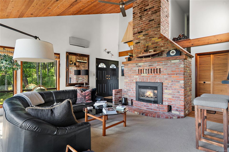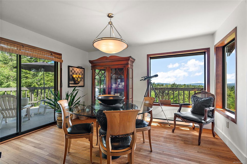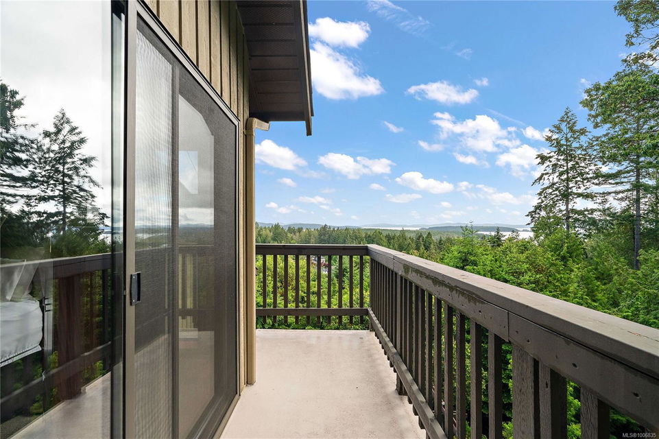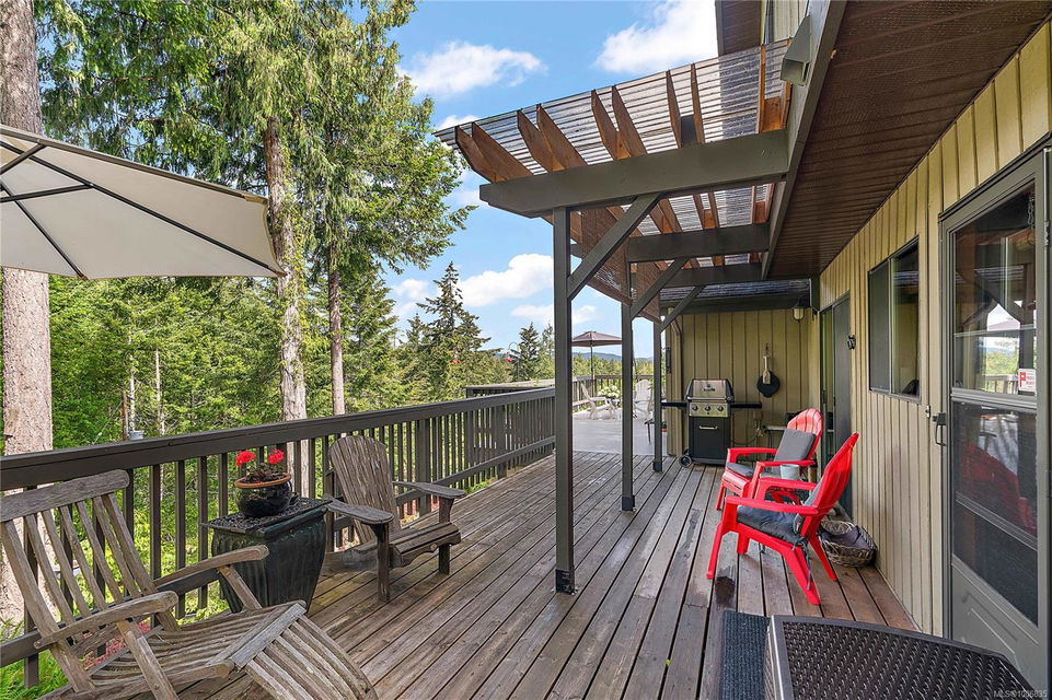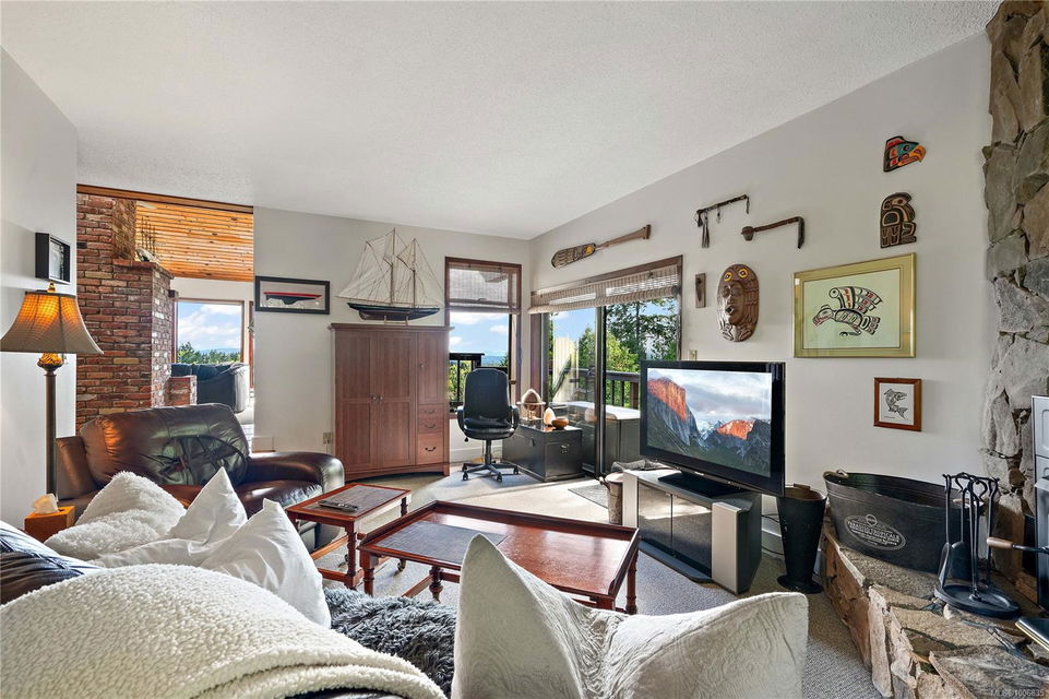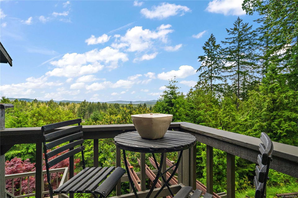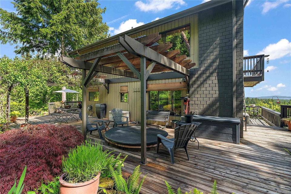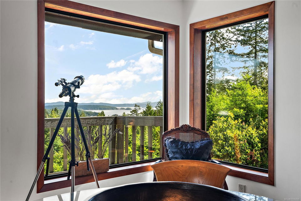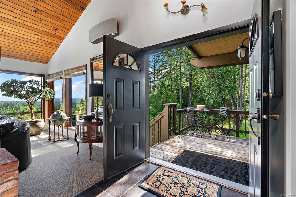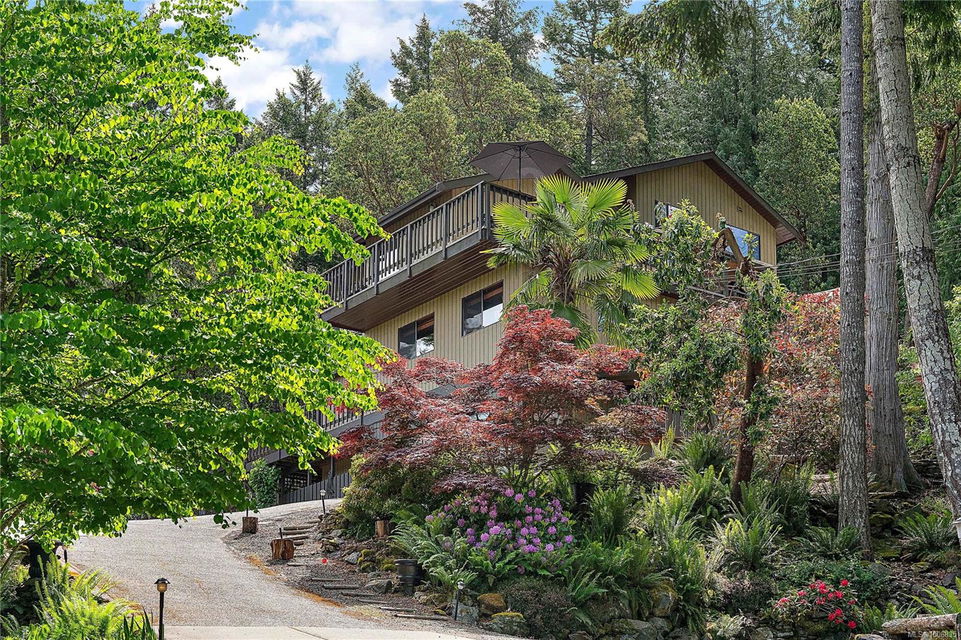Discover extensive ocean views and privacy at 1595 Eagle Way. This stunning west coast contemporary home, nestled on 3.6 acres in North Saanich overlooks the Gulf Islands and across to three ski slopes in North Vancouver. Backing onto Horth Hill park and its nature trails, this 3,092 sq ft residence features 3 bedrooms, 3 bathrooms, flexible guest accommodation or a spacious home office. Vaulted ceilings, floor to ceiling windows, floor to ceiling brick gas fireplace and ductless heat pumps create a comfortable and inviting atmosphere. Multiple north, south, east and west facing decks maximize the spectacular views. Enjoy a heated double car garage, workshop, carport and ample parking for multiple vehicles. Bring your love of nature, solitude and tranquility to this easy care natural woodland setting, conveniently located near Sidney, the airport and ferry terminal. Bonus: subdivision potential. A rare offering in North Saanich making it an excellent long-term investment. Don’t miss out on this one-of-a-kind opportunity to own a private oasis in a prime location.