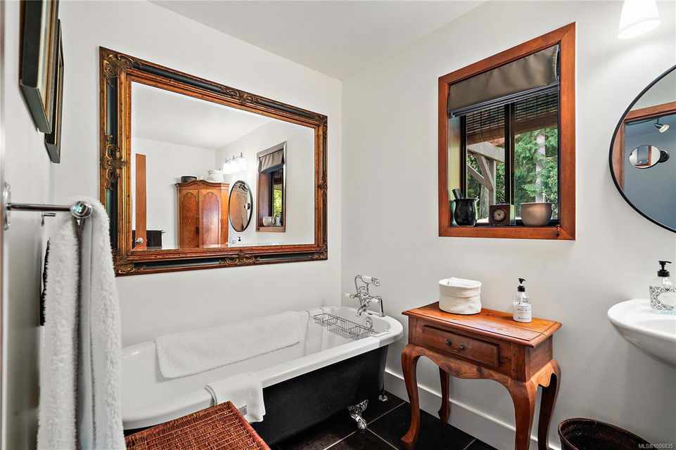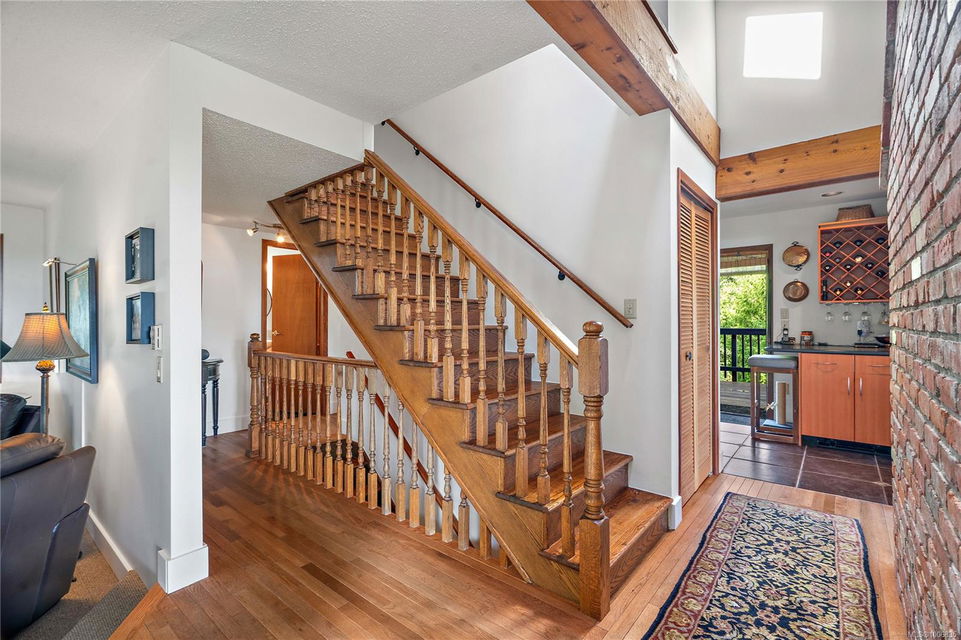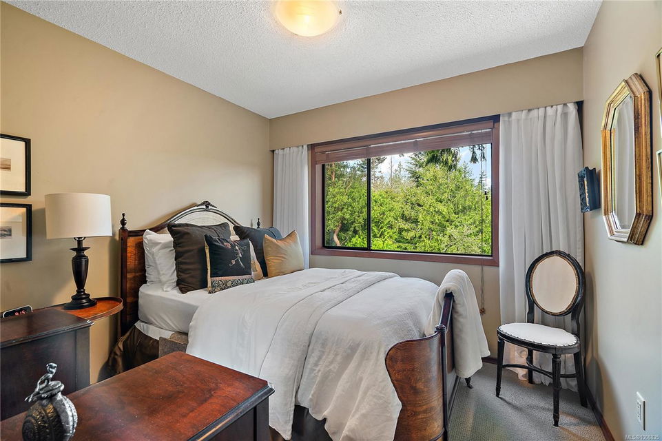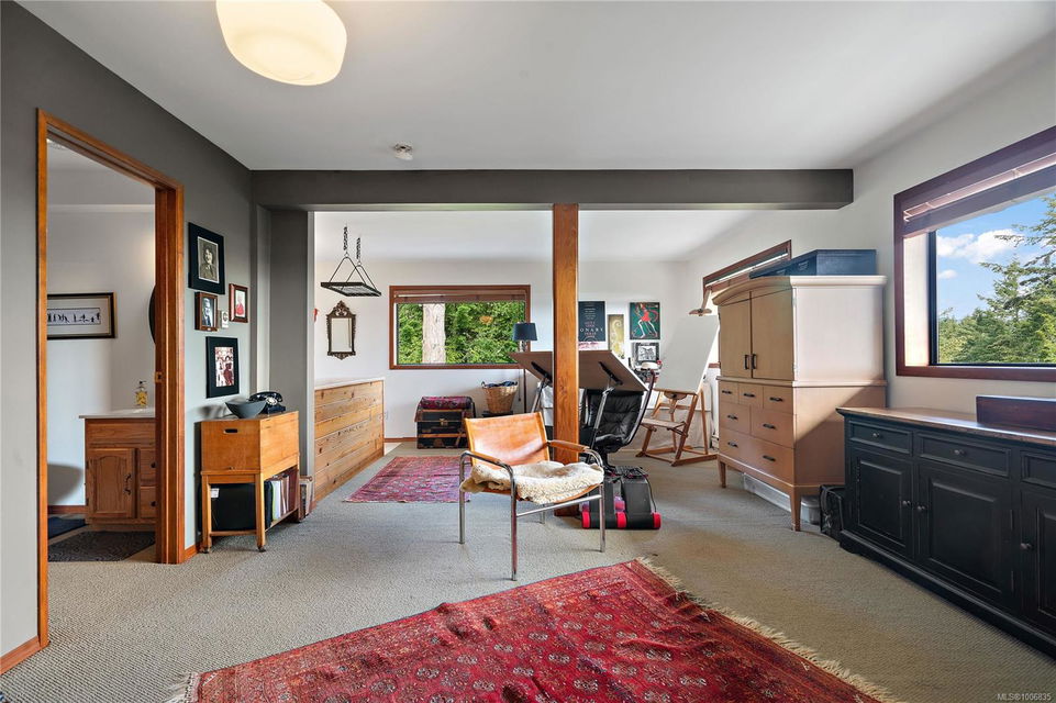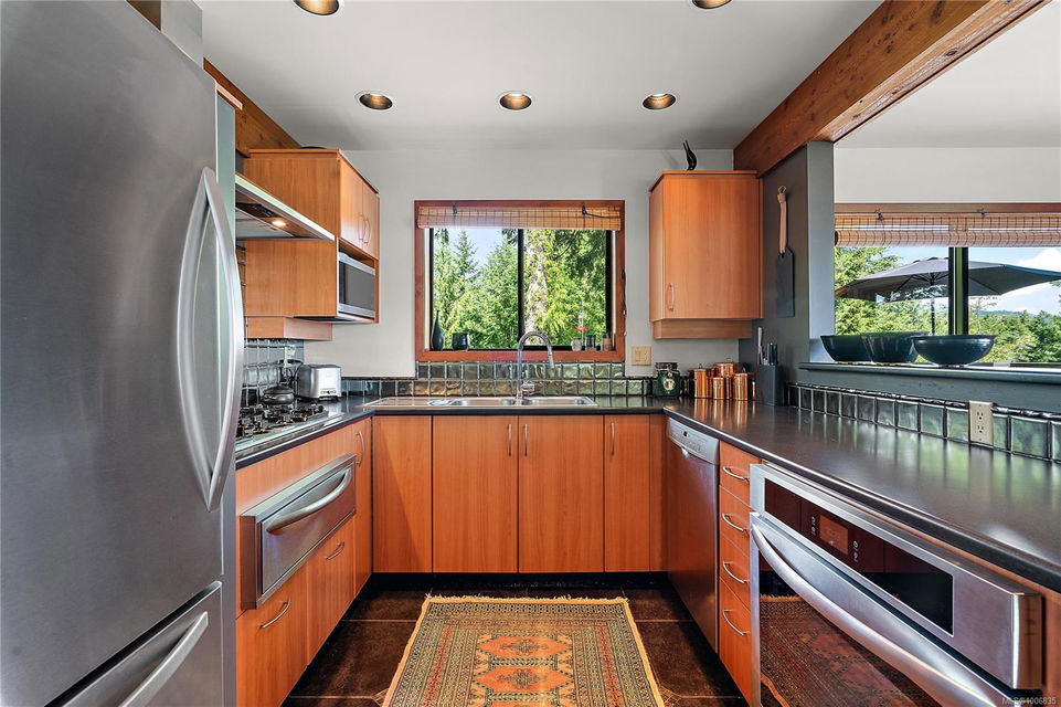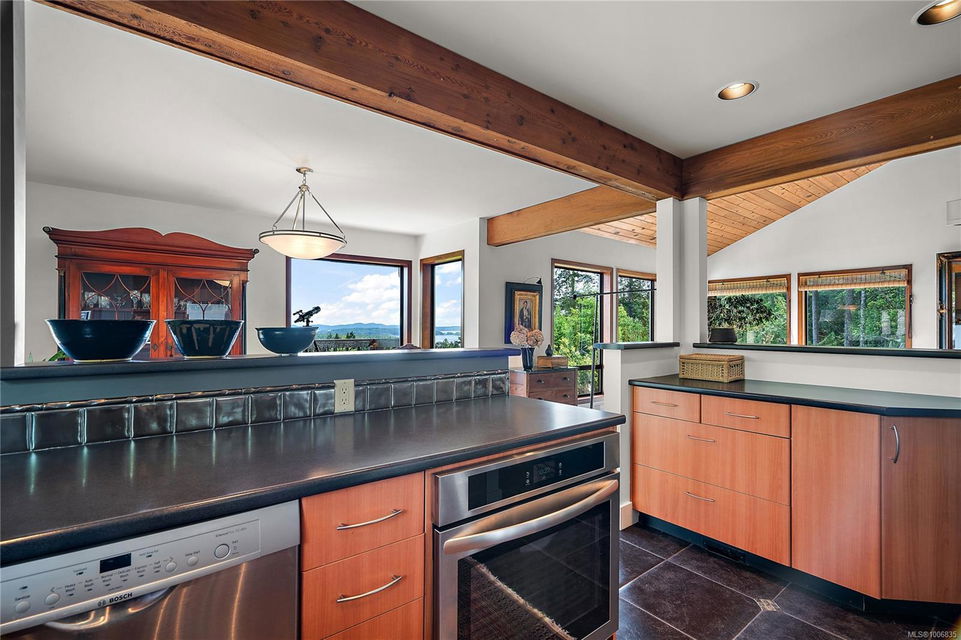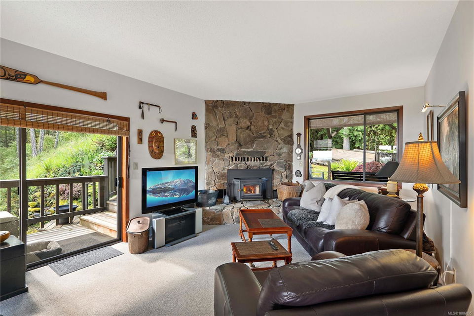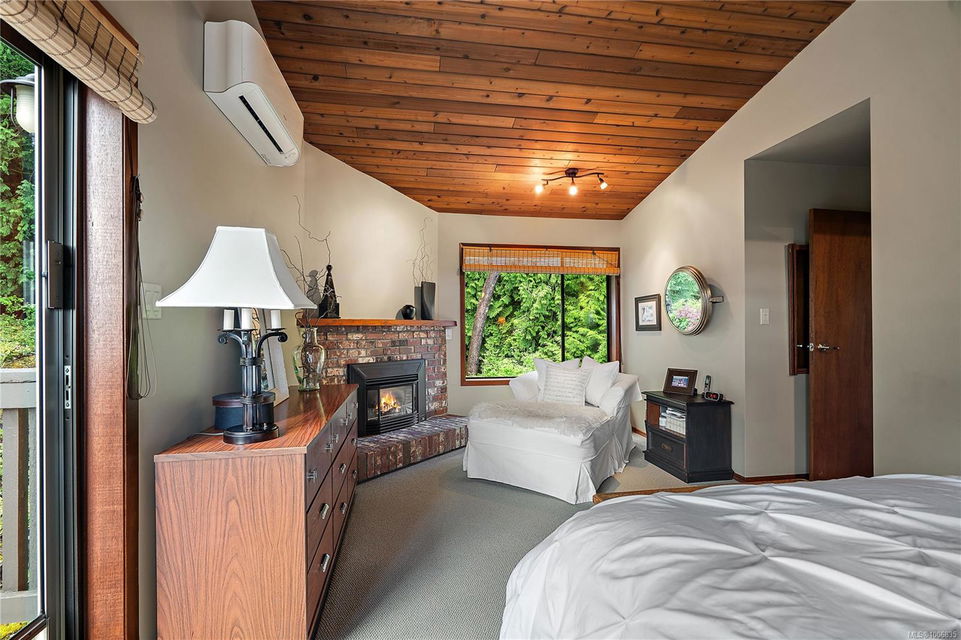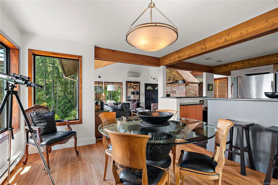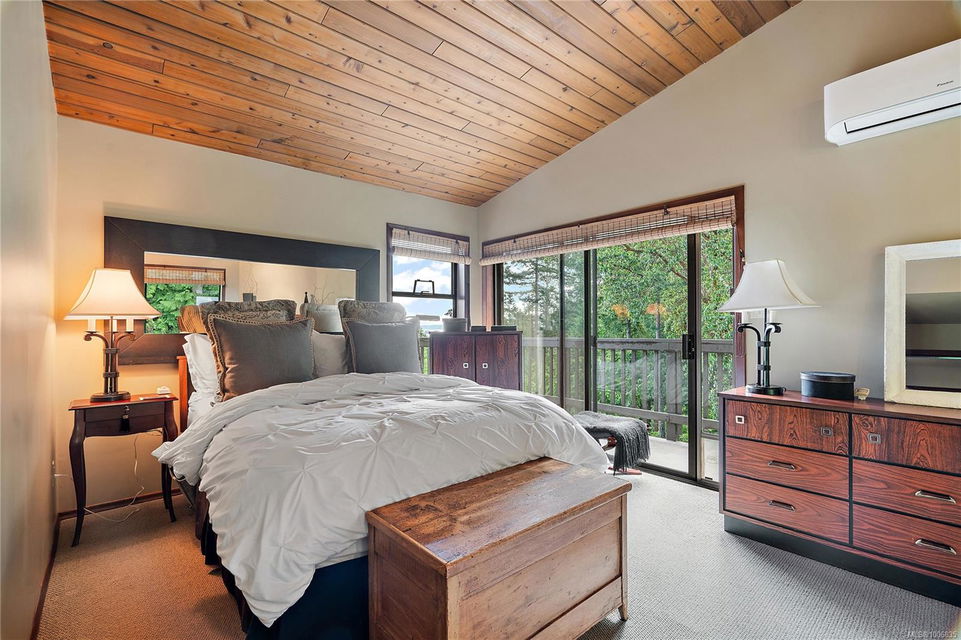 Discover extensive ocean views and privacy at 1595 Eagle Way. This stunning west coast contemporary home, nestled on 3.6 acres in North Saanich overlooks the Gulf Islands and across to three ski slopes in North Vancouver. Backing onto Horth Hill park and its nature trails, this 3,092 sq ft residence features 3 bedrooms, 3 bathrooms, flexible guest accommodation or a spacious home office. Vaulted ceilings, floor to ceiling windows, floor to ceiling brick gas fireplace and ductless heat pumps create a comfortable and inviting atmosphere. Multiple north, south, east and west facing decks maximize the spectacular views. Enjoy a heated double car garage, workshop, carport and ample parking for multiple vehicles. Bring your love of nature, solitude and tranquility to this easy care natural woodland setting, conveniently located near Sidney, the airport and ferry terminal. Bonus: subdivision potential. A rare offering in North Saanich making it an excellent long-term investment. Don’t miss out on this one-of-a-kind opportunity to own a private oasis in a prime location.
