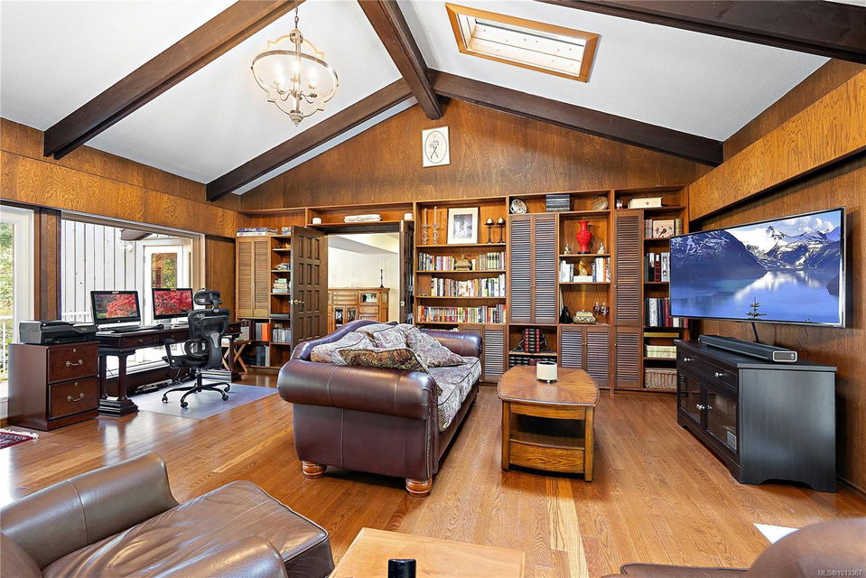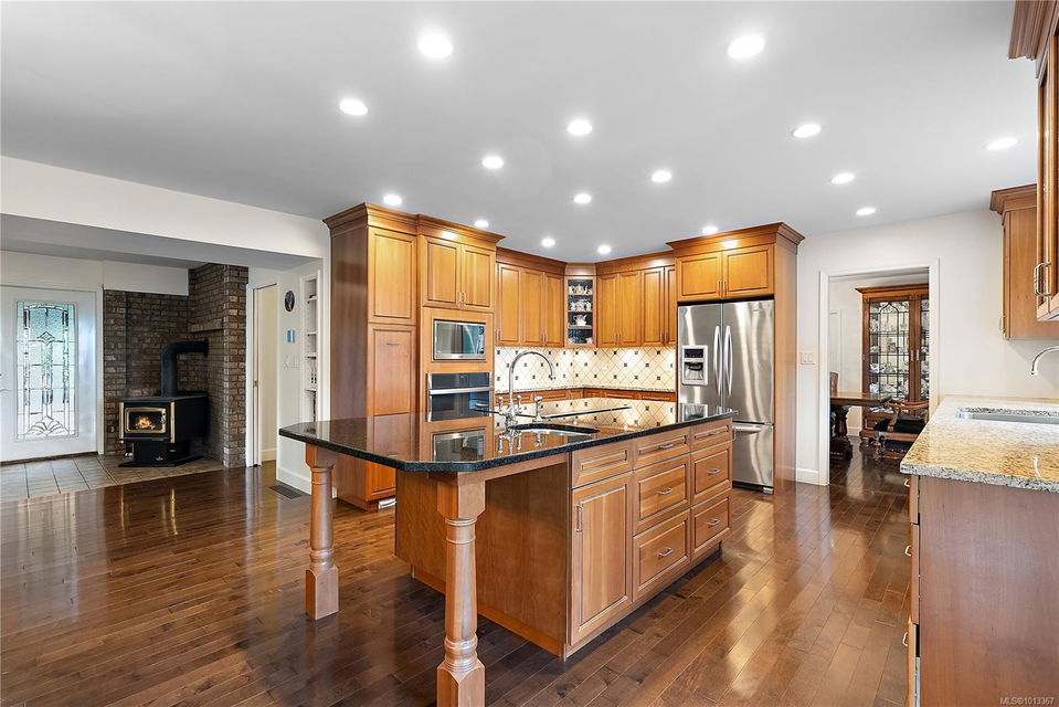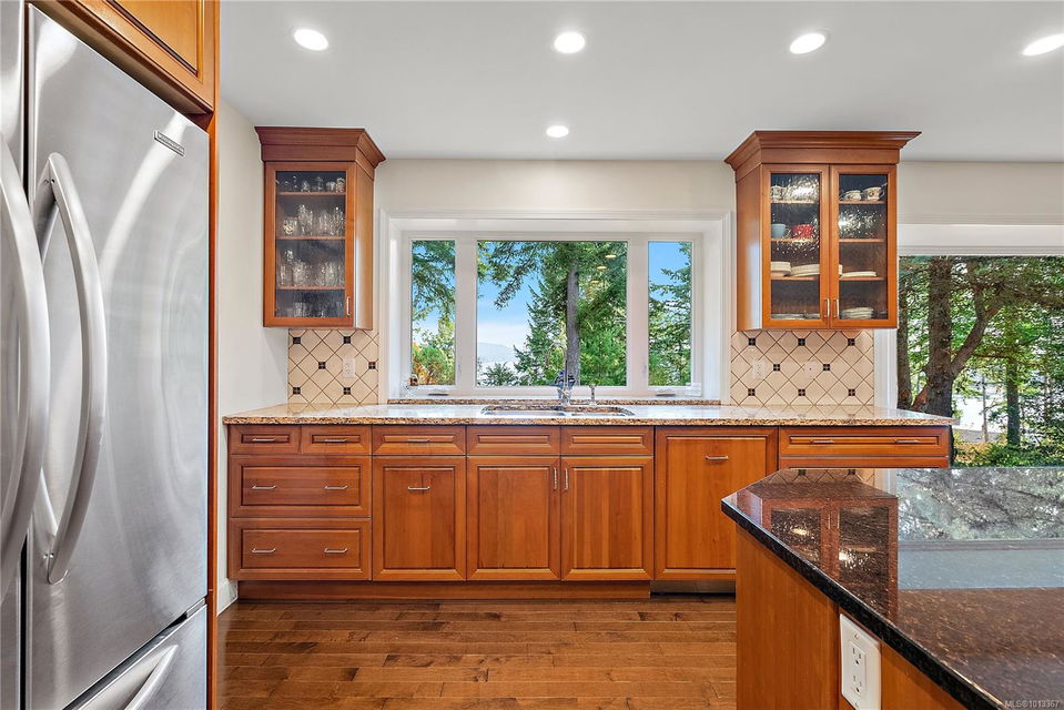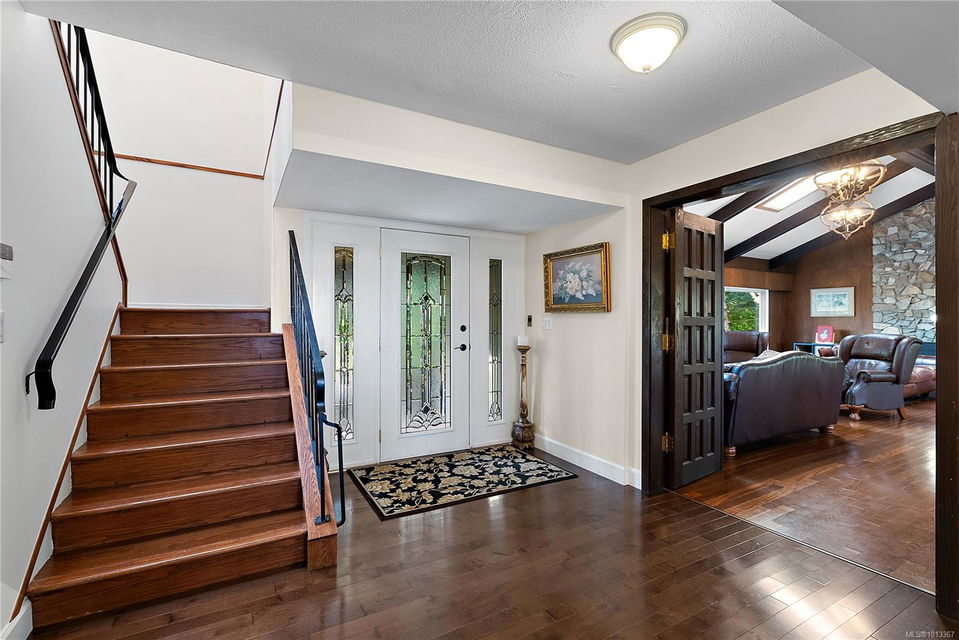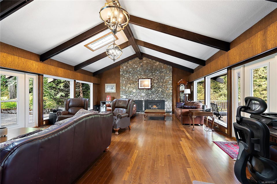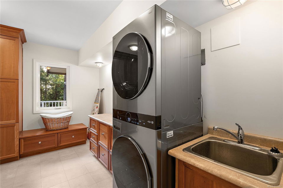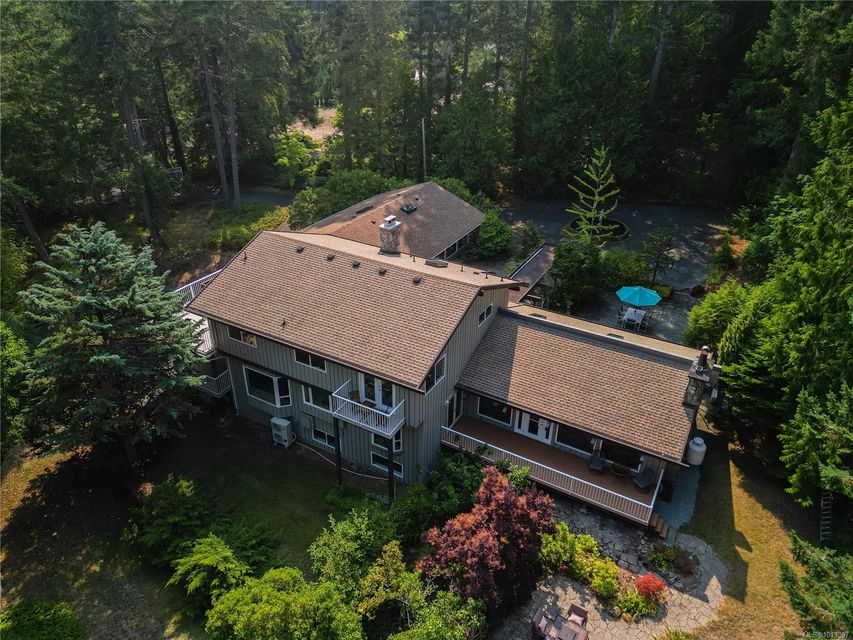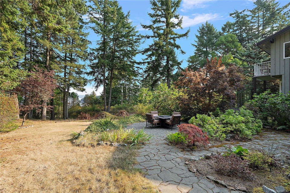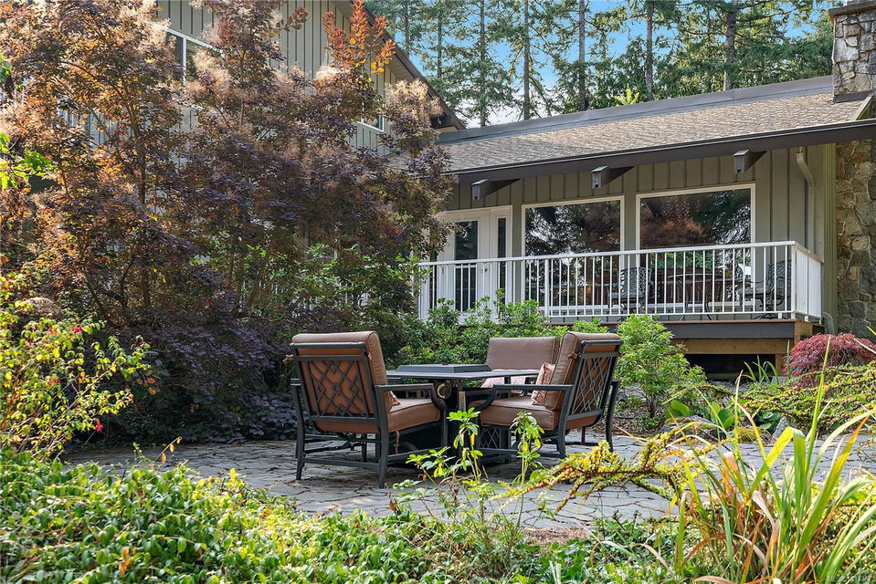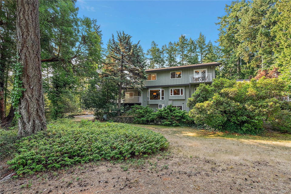 Welcome to your dream home! This 6013 sq ft residence is situated on a natural acre with ocean views and many outdoor living spaces. Grand circular driveway with a feature fountain provides extra parking. The spacious living room boasts high vaulted ceilings and a cozy fireplace. Adjacent is a large dining room, perfect for family gatherings. A cook’s dream kitchen features granite countertops, wall oven, a large island, and a window over the sink with picturesque sea views. Multiple decks allow you to follow the sun around the home all day. Downstairs is a flex space perfect for hobbies, pool tables, or man cave. It can easily be converted into an in-law suite. A large sun-filled Rec Room has patio doors that lead onto a sunny courtyard, making it perfect for a studio or workout room. This home is perfect for a large or multi-generational family, or ideal for an at-home business, it offers privacy, ample living and parking space, and sea views for everyone to enjoy.
