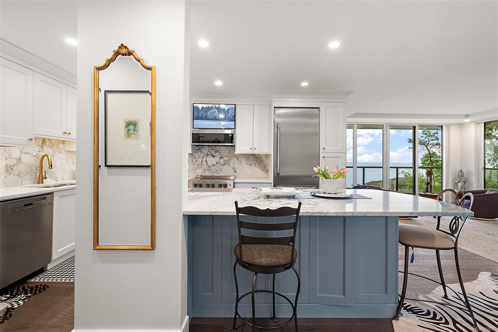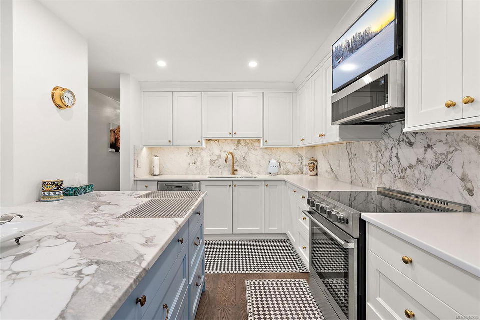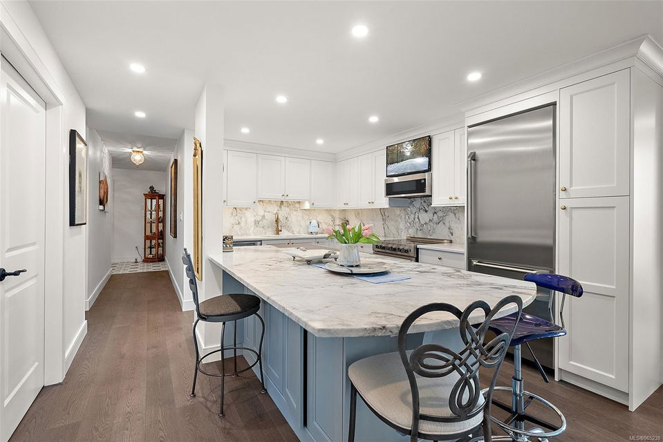 Absolutely breathtaking oceanfront fully renovated condo situated in quite possibly the most sought-after location in all of Oak Bay. This spacious walk-on waterfront unit has all the designer elements to make it completely turnkey, even for the most discerning buyer. From the large gourmet kitchen with high-end appliances to the opulent master bedroom with designer bath, there are no areas that don’t scream luxury. There is lots of in-suite storage, covered parking, and it is located directly next door to the Oak Bay Beach Hotel. The amenities are abundant and the walk score is serene. Do not miss this opportunity to own this iconic Victoria address.