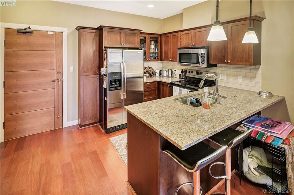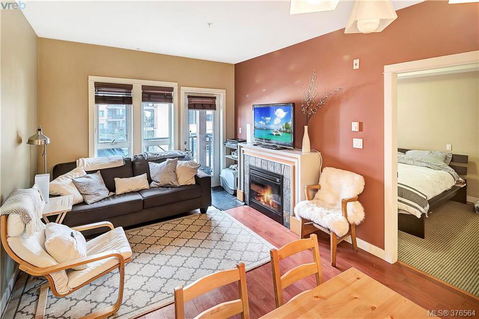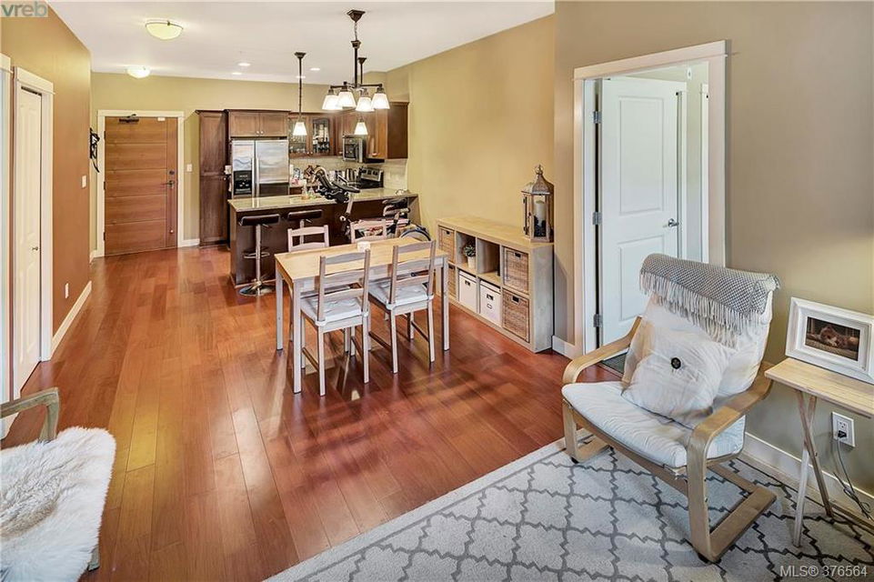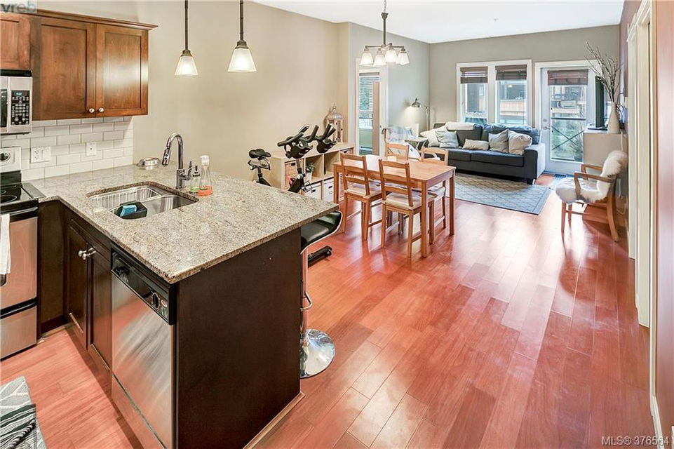 Hard to find 2 parking spots!!! This development is in high demand. Come experience the ultimate condo lifestyle being so close to the goose and Thetis Lake Park. Modern finishing’s with hard surface counters and floors, open concept kitchen with plenty of cabinets, counter space, and eating bar. Perfect roommate or guest plan with no adjoining bedrooms. Master has pass through closet and cheater door to Main Bath. In line dining and living room perfect for entertaining and cozy fireplace. Great commuter location with easy access to highway and bike path. Onsite Gym pets, BBQ’s, rentals allowed, storage locker. It doesn’t get any better then this check out the virtual tour.