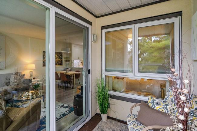 wall, electric wall fireplace, and is well lit w/ glass sliding doors out to the patio – the perfect place for your