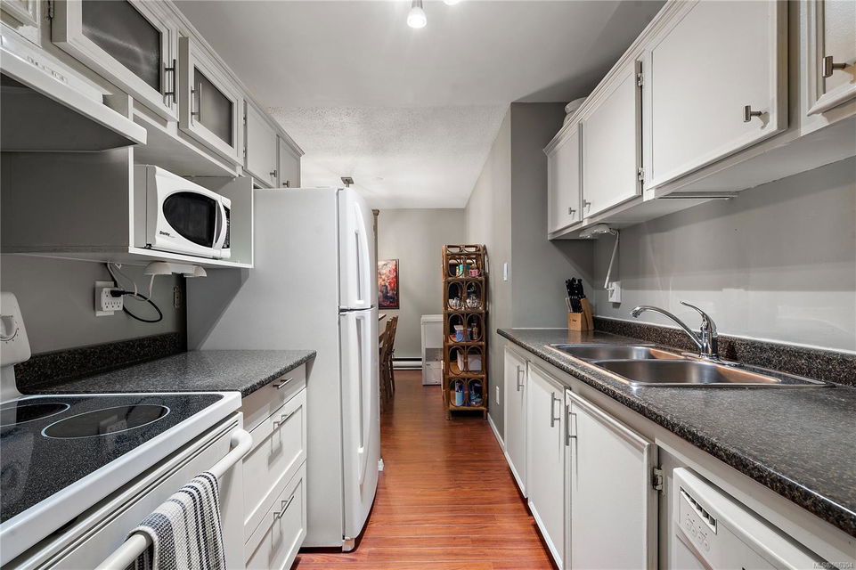 This location has it all! Located in one of the most convenient areas of the city, close to all major amenities. You are within a block of major bus routes, bike lanes, the Royal Jubilee Hospital, grocery store, Oak Bay Rec Centre, golf courses, cafe’s, restaurant’s, and so much more! Welcome to this bright and beautiful generously sized 2 bed, 1 bath condo in the heart of it all! This unit has been tastefully updated with new flooring plus a renovated kitchen and bathroom. The spacious primary bedroom features a walk through closet, cheater ensuite, and access to the balcony (spanning the entire width of the unit). You will love the gas fireplace for those cozy winter days. This condo has been immaculately kept and includes parking and separate storage. Plus, you’re only a few minutes drive to beautiful Willow’s Beach, Oak Bay Village, Camosun College, and UVic. The perfect opportunity for a first time home buyer, investor, or someone wanting proximity to the hospital or university.