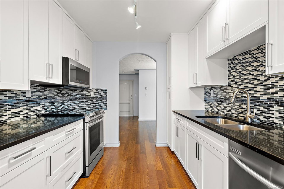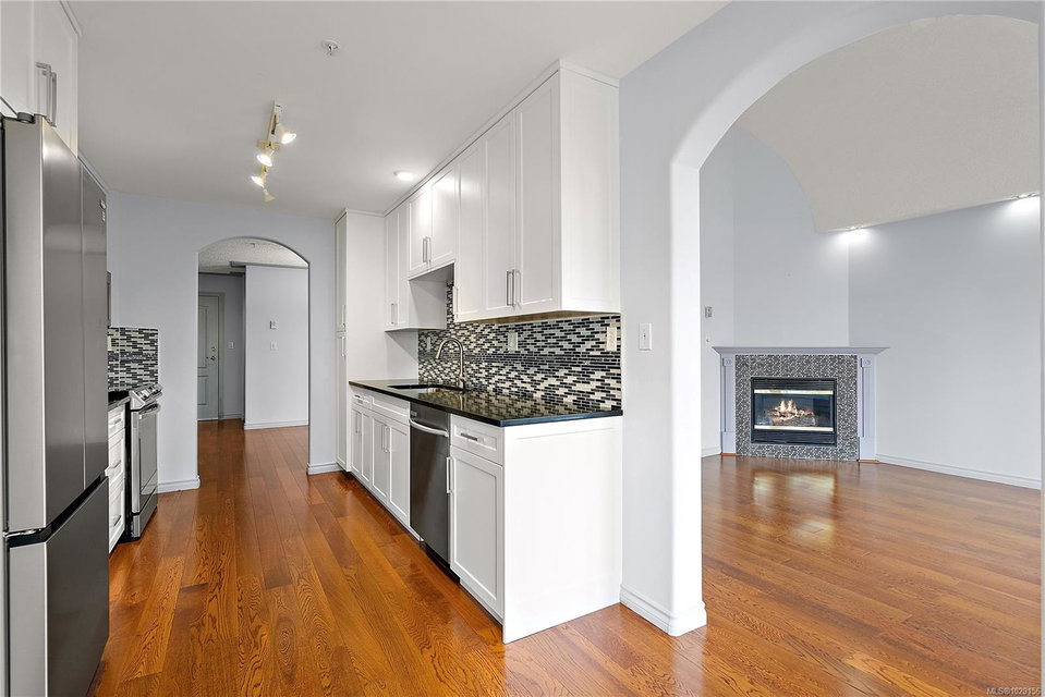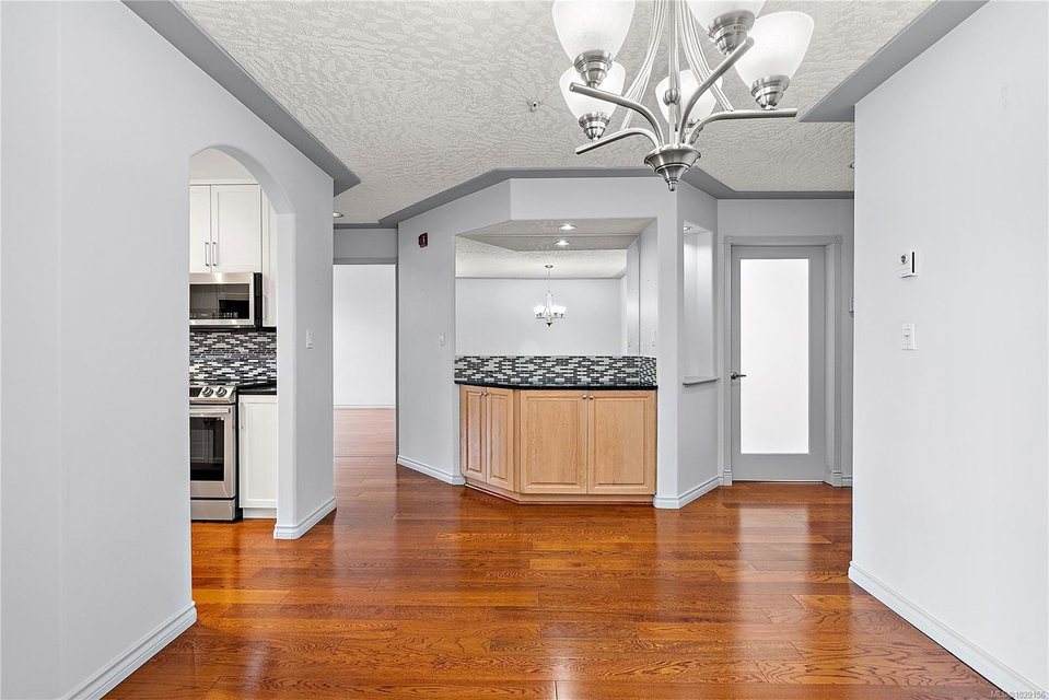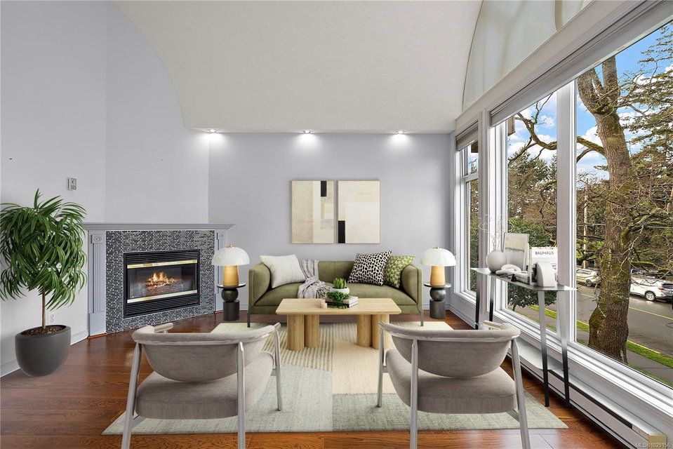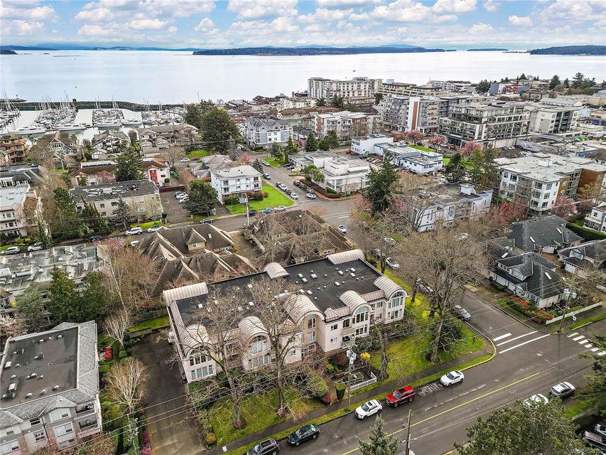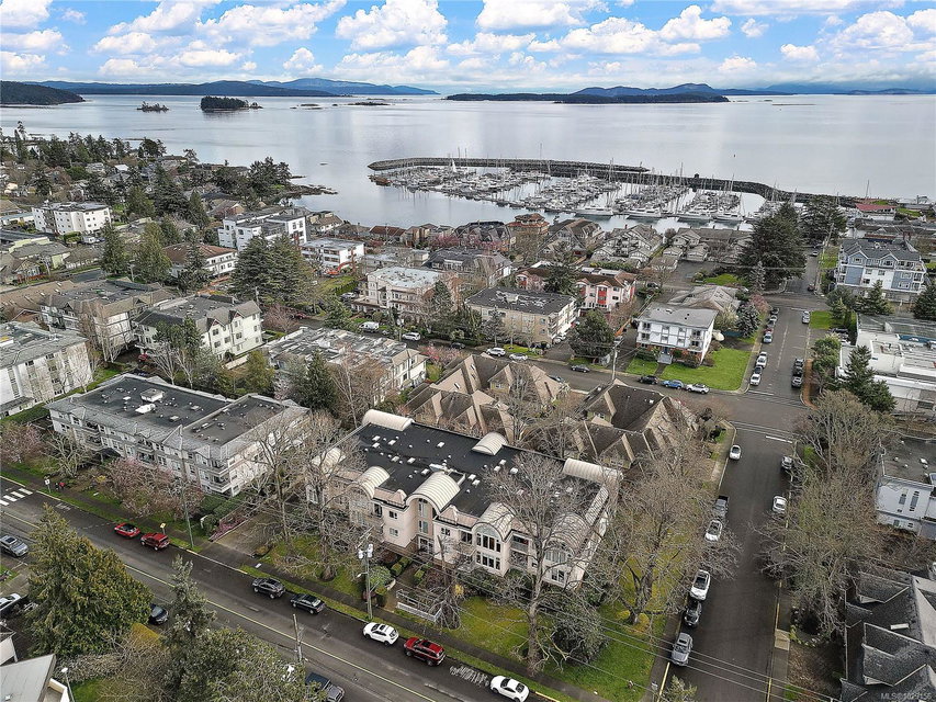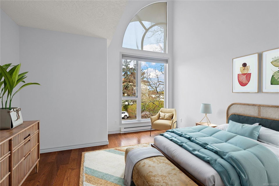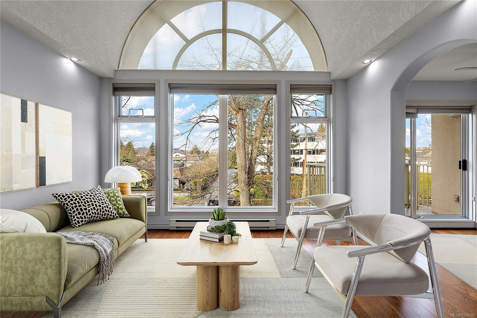 OPEN HOUSE – Sat & Sun Apr 11&12 – 12-1:30 pm – Welcome to The Marlena, one of downtown Sidney’s most sought-after condominium residences. This beautifully updated top-floor unit offers 1,161 sq ft of bright and inviting living space with high vaulted ceilings and impressive floor-to-ceiling windows that fill the home with natural light. The desirable west-facing exposure provides a warm, sunny outlook over the surrounding neighbourhood and lovely sunsets from your private deck. The spacious layout features a large living room, separate dining area, and an updated kitchen with quartz countertops, quality appliances, and a convenient eating area. The home has been tastefully updated throughout, including wood floors, updated bathrooms, and new window coverings, creating a move-in ready space that blends comfort and style. There are two generously sized bedrooms and two full bathrooms, including a well-appointed primary bedroom with excellent closet space. A separate laundry room with additional storage adds convenience and functionality. This exceptionally well-maintained building offers just 14 units, creating a quiet and welcoming community. Additional features include secure underground parking and a large storage locker. Ideally located just steps from Beacon Avenue, you’ll enjoy easy access to Sidney’s charming shops, restaurants, transit, and the beautiful oceanfront walkways. Opportunities to own in this highly regarded building rarely come available, making this a fantastic chance to enjoy comfortable, low-maintenance living in the heart of Sidney.