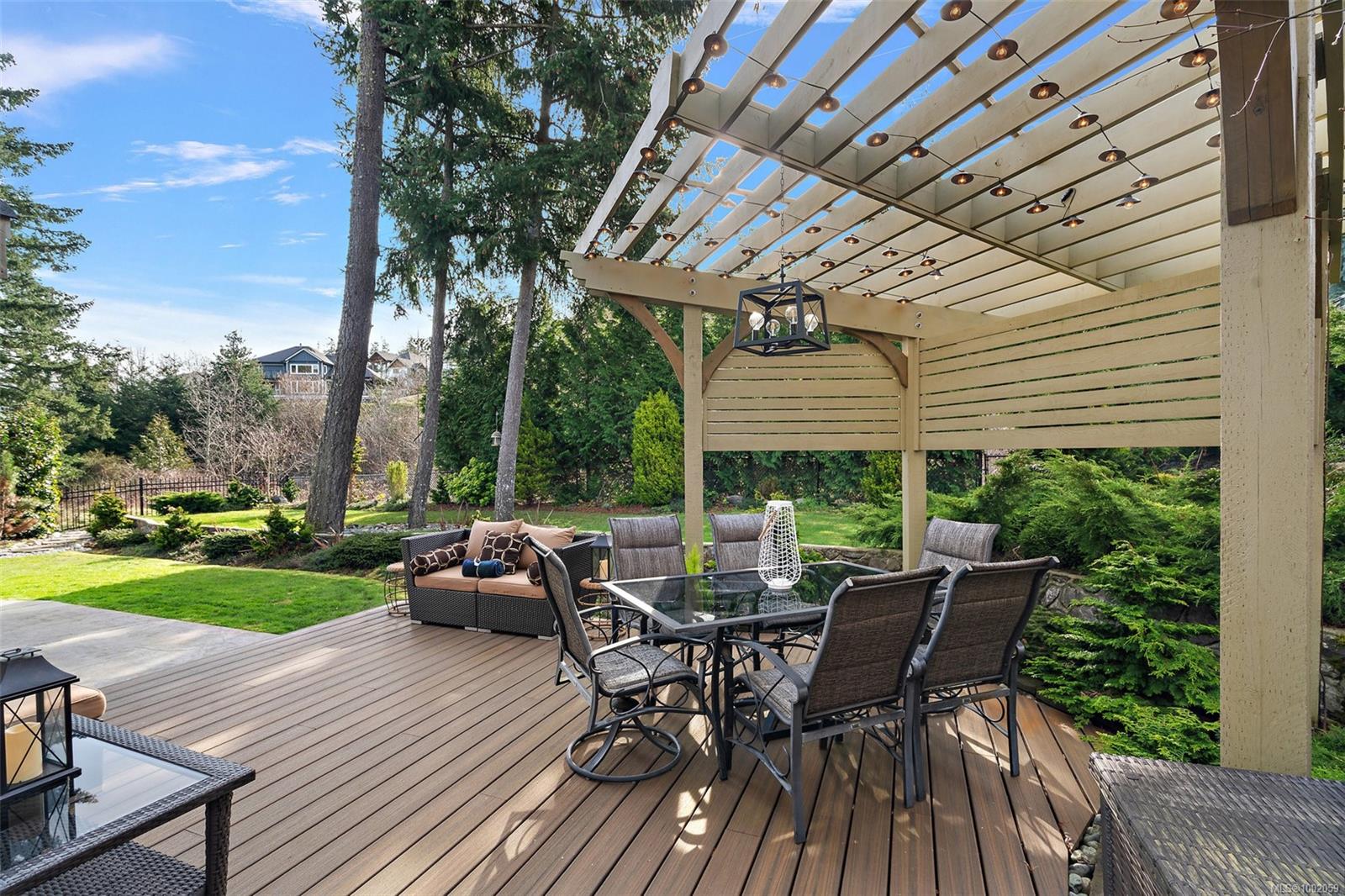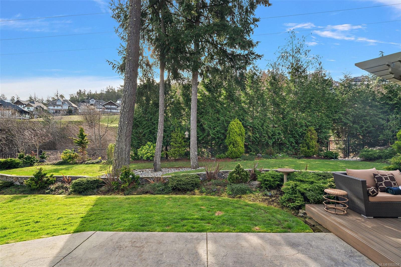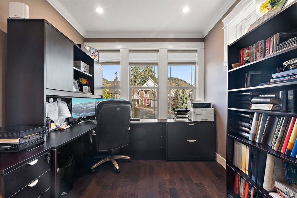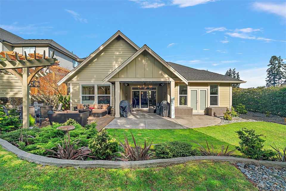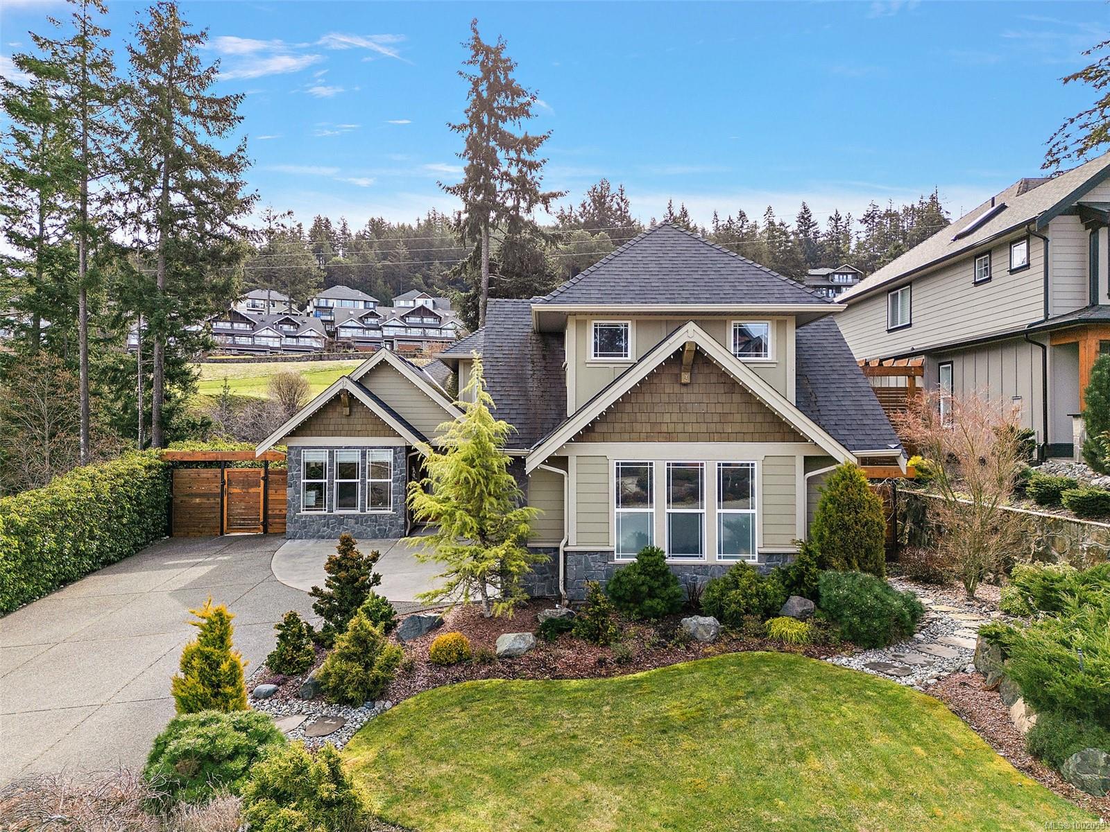 Nestled in the heart of the Bear Mountain resort community, this exceptional 5-bedroom, 3-bathroom executive-style home offers luxury living positioned a stone’s throw from the village with your own golf membership. The main level boasts a seamless open-concept layout featuring a chef’s kitchen with premium stainless-steel appliances, oversized island, open living room with built in surround system & sunlit eating nook overlooking the south-facing backyard & prestigious Bear Mountain Golf Course. No-step entry leads to a formal dining space, a private office, spacious primary suite with direct garden access, spa-like ensuite, & a generous walk-in closet. Upstairs, 3 additional bedrooms & 4 piece bath accompany your 13×21 ultimate media room. Thoughtful extras include in-floor water-based radiant heating on the main level, outdoor “she-shed”, redesigned laundry room, built-ins & shelving throughout for functionality, fresh landscaping with irrigation system, and fencing to name a few!