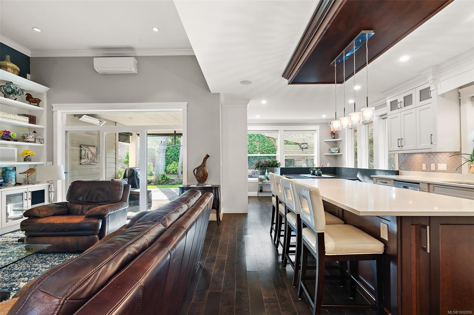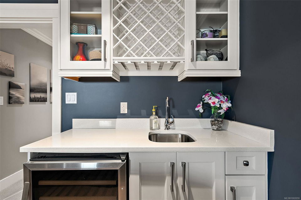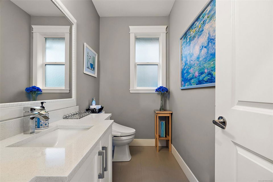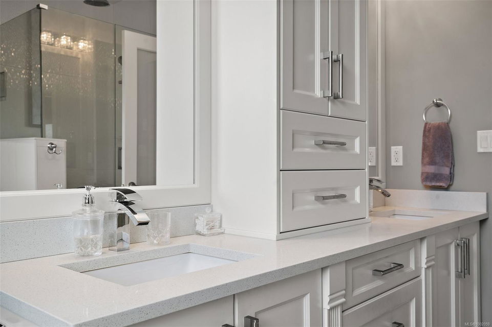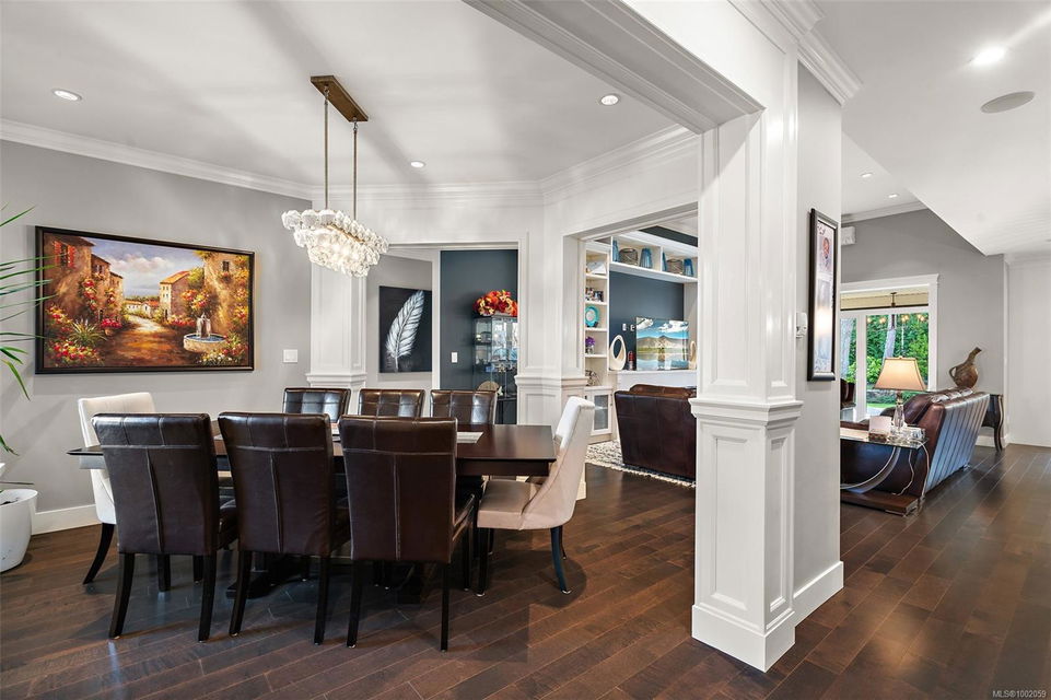 Nestled in the heart of the Bear Mountain resort community, this exceptional 5-bedroom, 3-bathroom executive-style home offers luxury living positioned a stone’s throw from the village with your own golf membership. The main level boasts a seamless open-concept layout featuring a chef’s kitchen with premium stainless-steel appliances, oversized island, open living room with built in surround system & sunlit eating nook overlooking the south-facing backyard & prestigious Bear Mountain Golf Course. No-step entry leads to a formal dining space, a private office, spacious primary suite with direct garden access, spa-like ensuite, & a generous walk-in closet. Upstairs, 3 additional bedrooms & 4 piece bath accompany your 13×21 ultimate media room. Thoughtful extras include in-floor water-based radiant heating on the main level, outdoor “she-shed”, redesigned laundry room, built-ins & shelving throughout for functionality, fresh landscaping with irrigation system, and fencing to name a few!