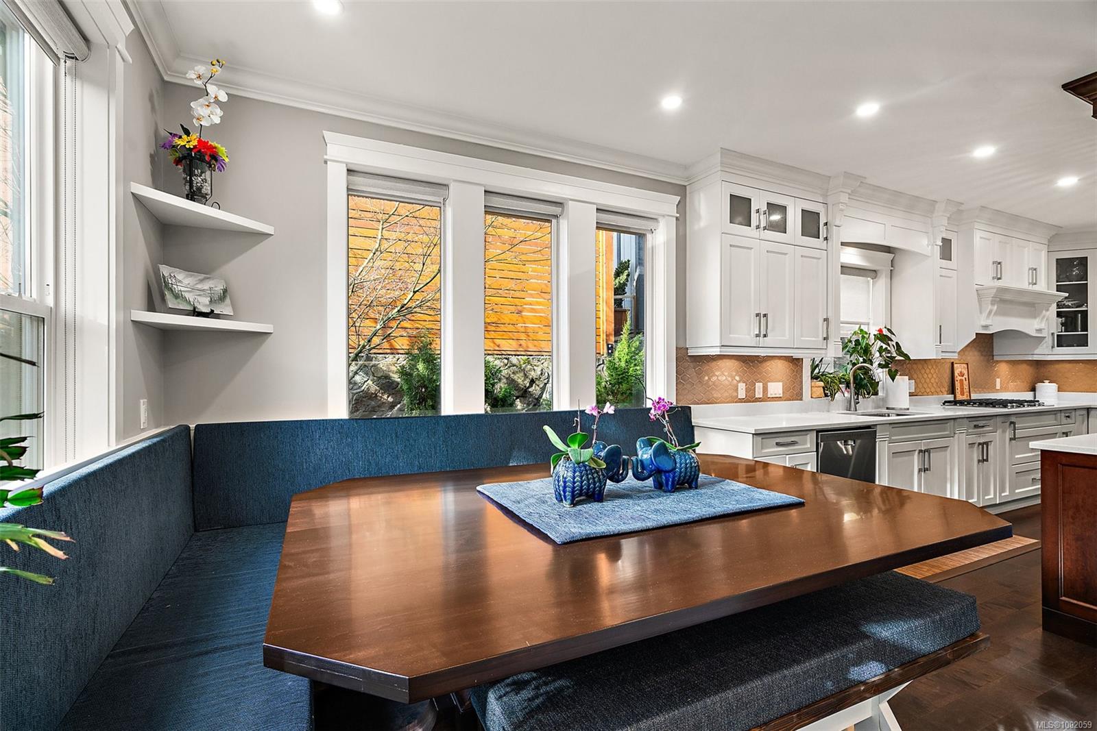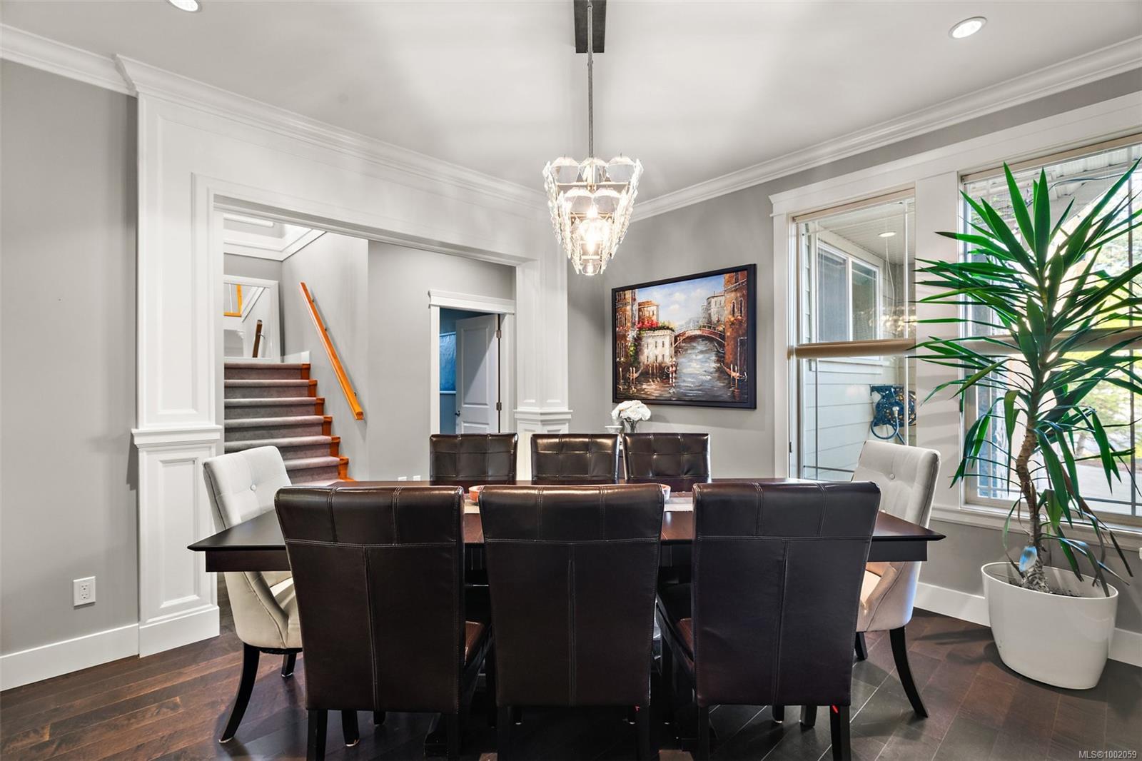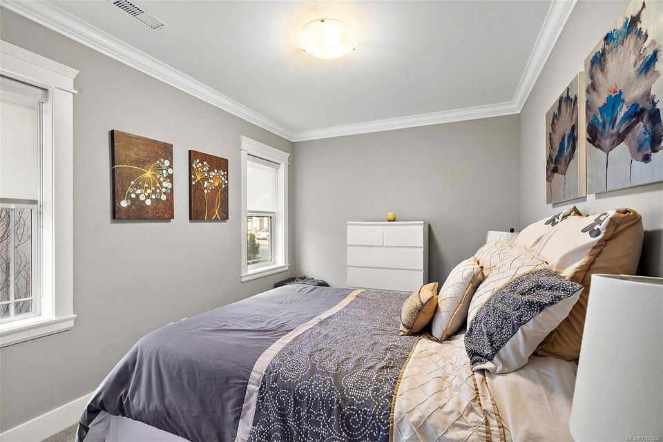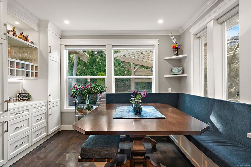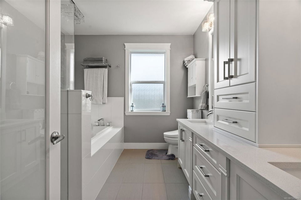 Nestled in the heart of the Bear Mountain resort community, this exceptional 5-bedroom, 3-bathroom executive-style home offers luxury living positioned a stone’s throw from the village with your own golf membership. The main level boasts a seamless open-concept layout featuring a chef’s kitchen with premium stainless-steel appliances, oversized island, open living room with built in surround system & sunlit eating nook overlooking the south-facing backyard & prestigious Bear Mountain Golf Course. No-step entry leads to a formal dining space, a private office, spacious primary suite with direct garden access, spa-like ensuite, & a generous walk-in closet. Upstairs, 3 additional bedrooms & 4 piece bath accompany your 13×21 ultimate media room. Thoughtful extras include in-floor water-based radiant heating on the main level, outdoor “she-shed”, redesigned laundry room, built-ins & shelving throughout for functionality, fresh landscaping with irrigation system, and fencing to name a few!