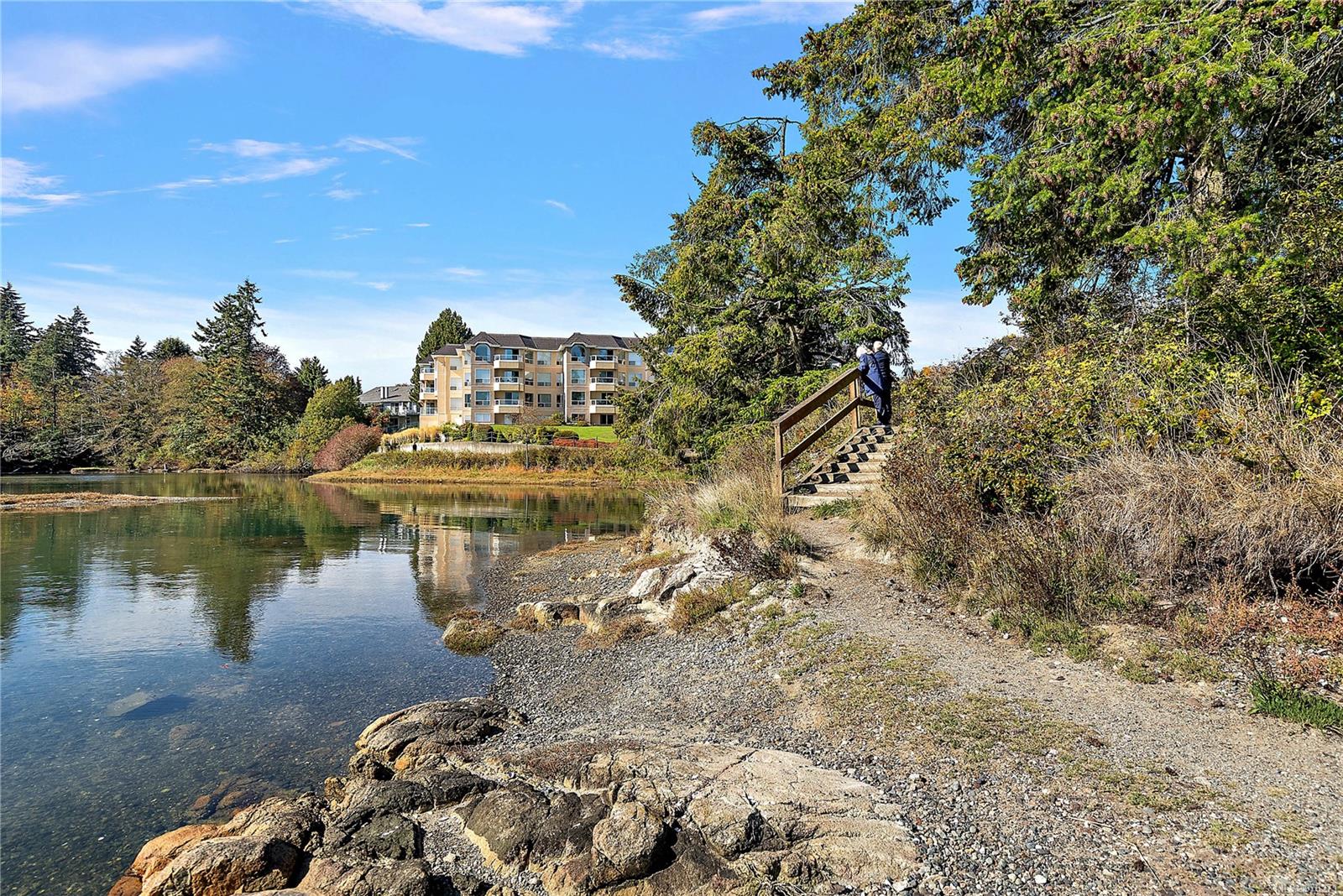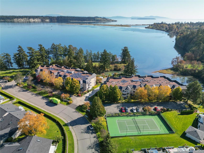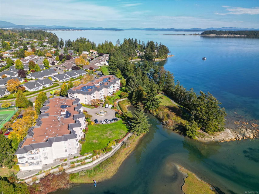 Discover your dream home at Water’s Edge Village! This 1176 sq. ft. 2-bedroom, 2-bath suite offers breathtaking sea views from both the living room and kitchen eating area. Enjoy the convenience of a secure underground parking space. Nestled in a superb quiet location, this community boasts well-maintained grounds with beautiful flower gardens, trees, & a tranquil water fountain. Experience the joy of oceanside walks & marvel at the local wildlife, including eagles, herons, swans, & kingfishers. Incredible amenities such as an indoor swimming pool, hot tub, sauna, exercise room, tennis court, putting green, workshop, 3 guest suites, and bicycle parking. Professionally managed with a responsible council and a Depreciation Report in place, Water’s Edge Village offers peace of mind and quality living. Conveniently located close to Saanich Peninsula Hospital, Saanichton, Sidney, shopping, and bus services. Embrace resort living!