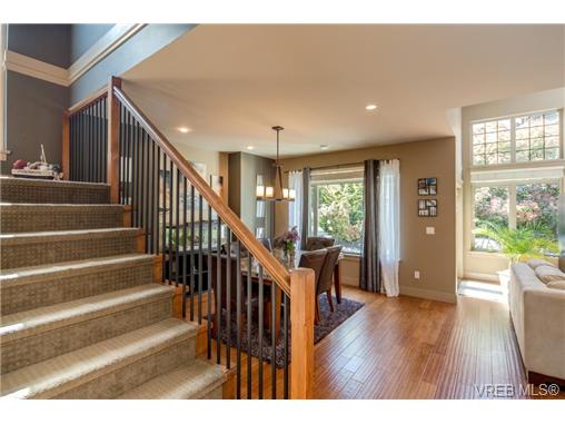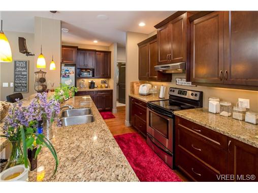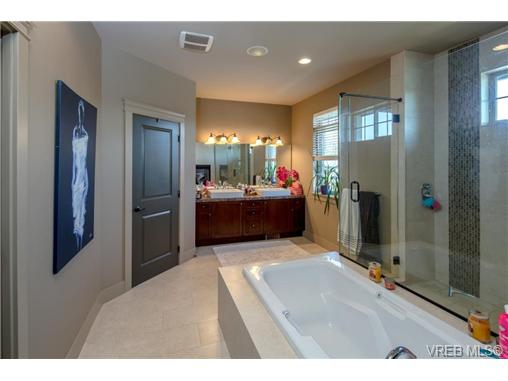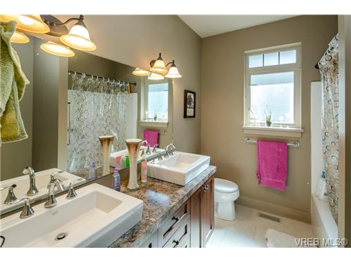 This stunning 4 bedroom custom home built by Bear Mountain Projects offers incredible finishing, theatre room, open plan layout, gourmet granite kitchen, eating bar, pantry, stainless steel appliances, Great Room, gas fireplace, French doors to the study, separate dining area, lovely patio with easy care yard. Upper floor boasts 4 bedrooms, 2 guest rooms feature walk-in closets! An exquisite master suite features a 2-sided fireplace, spa-like en-suite, large soaker tub, extra large shower, 2 sinks, walk-in closet. Other features include, heat pump, air conditioning, screens, surround sound, security system, underground sprinklers. Live in style at fabulous Bear Mountain Golf Resort!