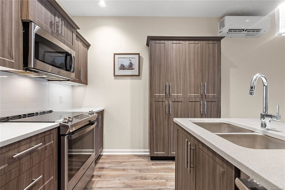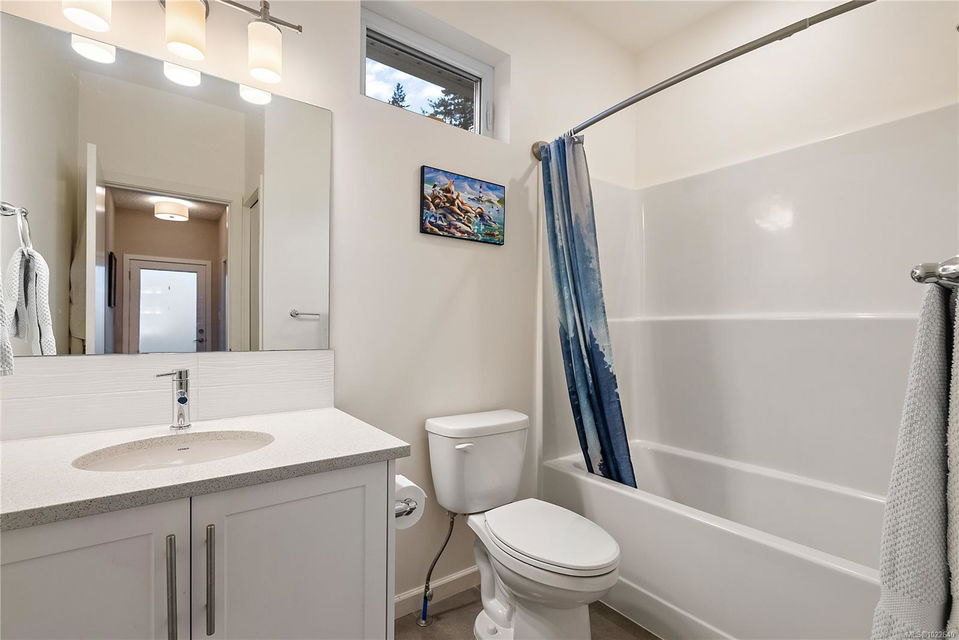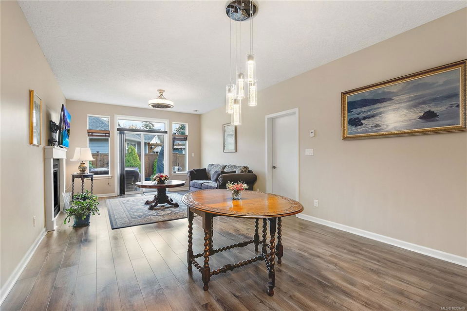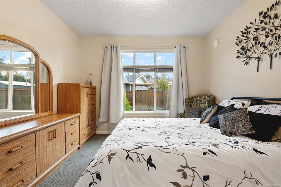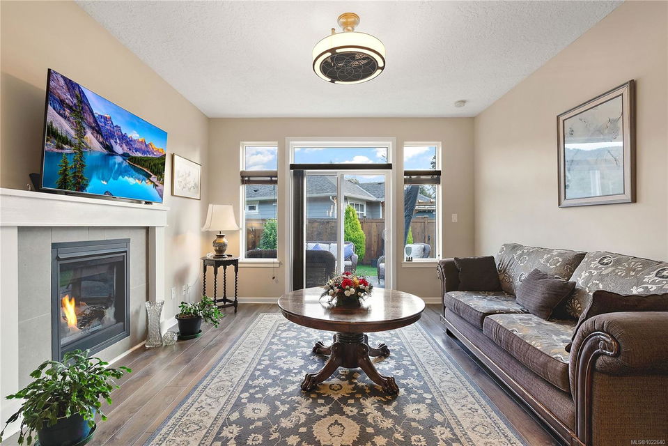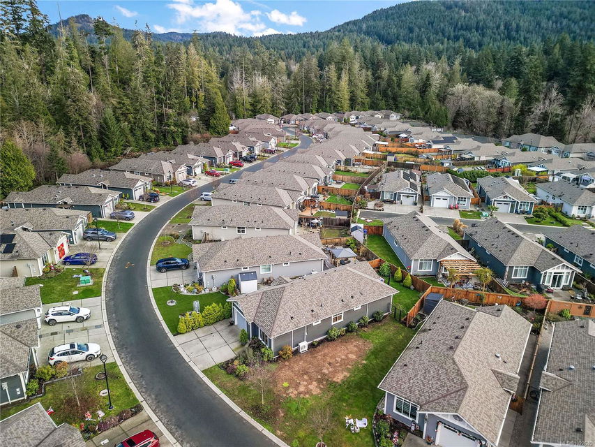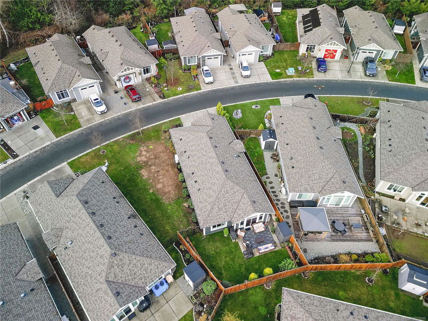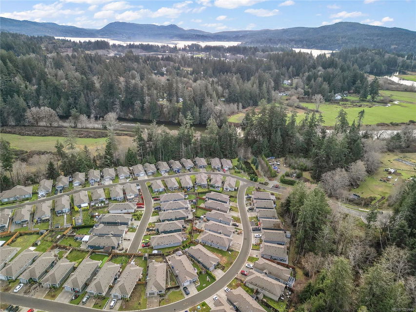Welcome to RiversEdge Village at Sunriver Estates, surrounded by parkland, scenic trails, and the Sooke River. 2427 Fern Way features The Magnolia, the largest floor plan in the community, offering 1,188 sq. ft. of thoughtfully designed living space on a 4,868 sq. ft. lot. This patio-style home includes a spacious one-car garage with 220V and EV charger, three generous bedrooms, and two bathrooms. The open-concept living and dining area is ideal for comfortable living and entertaining, highlighted by a natural gas fireplace. The well-appointed kitchen features quartz countertops, stainless steel appliances, and abundant workspace, while a light tube enhances natural brightness throughout the home. Additional features include a ductless heat pump in the living room, front and primary bedroom, air conditioning, tankless hot water, front and back yard irrigation, and a hot tub rough-in on the back patio. Enjoy an active and social lifestyle with access to the community Club House—perfect for hosting gatherings, watching the big game, playing pool, or enjoying summer BBQs and horseshoes on the patio. Club house has two rentable bedrooms. Rivers Edge community includes RV and boat storage. Seaparc Leisure Center is just a short walk away, offering swimming, fitness classes, ice skating, and more. A wonderful opportunity to enjoy comfortable, low-maintenance living in a vibrant and welcoming community.
