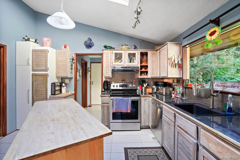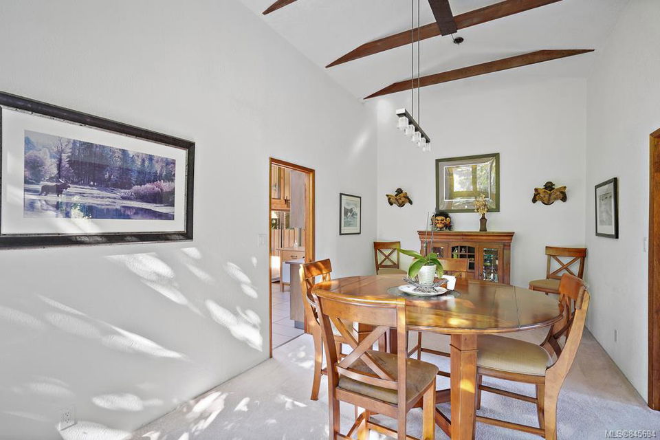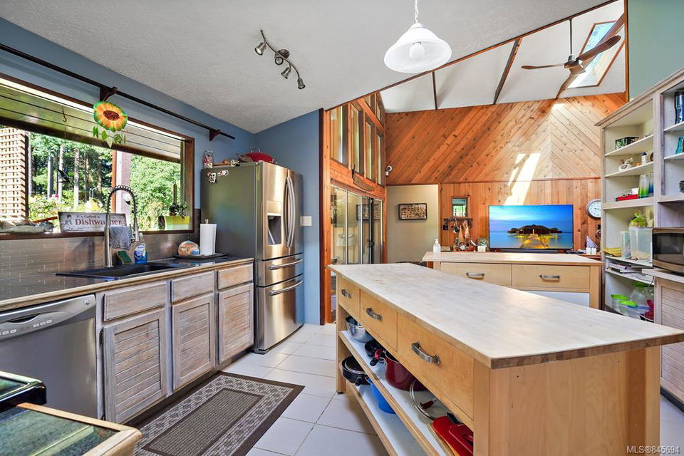 Looking to get away from the bustle of the city? 257 Dutnall offers you the Island lifestyle at its finest. This impressive 5 bed/3 bath West Coast home offers a tranquil retreat to call home in stunning Albert Head, Metchosin on over 1 acre of private, landscaped land. This home is perfect for entertaining with plenty of extra space for family & friends. The open floor plan offers a substantial living room with striking wooden beams, stone fireplace, vaulted ceilings, & floor to ceiling windows allowing the natural light to flood through. Just minutes to the lagoon you can catch ocean & garden views from the expansive windows throughout. Step out to the exterior lounge & entertainment area with flowering gardens – perfect for relaxing outside or hosting. Off the living room is the recently updated kitchen w/ stainless steel appliances, new cabinets, & kitchen island. Added bonus of 2 car garage & huge workshop! If you are looking to live the West Coast lifestyle – this is your gem.