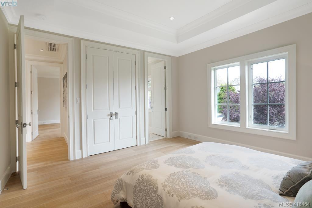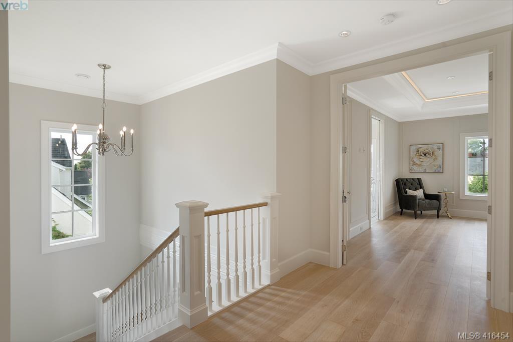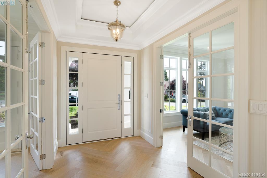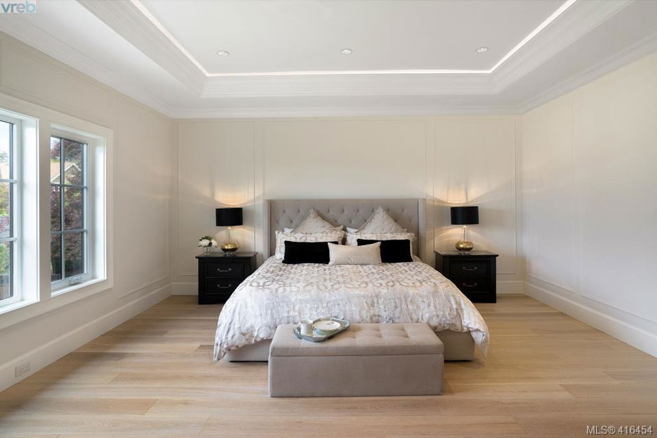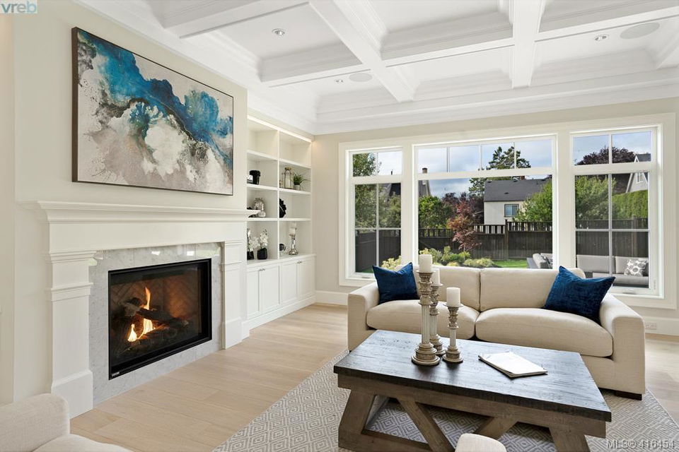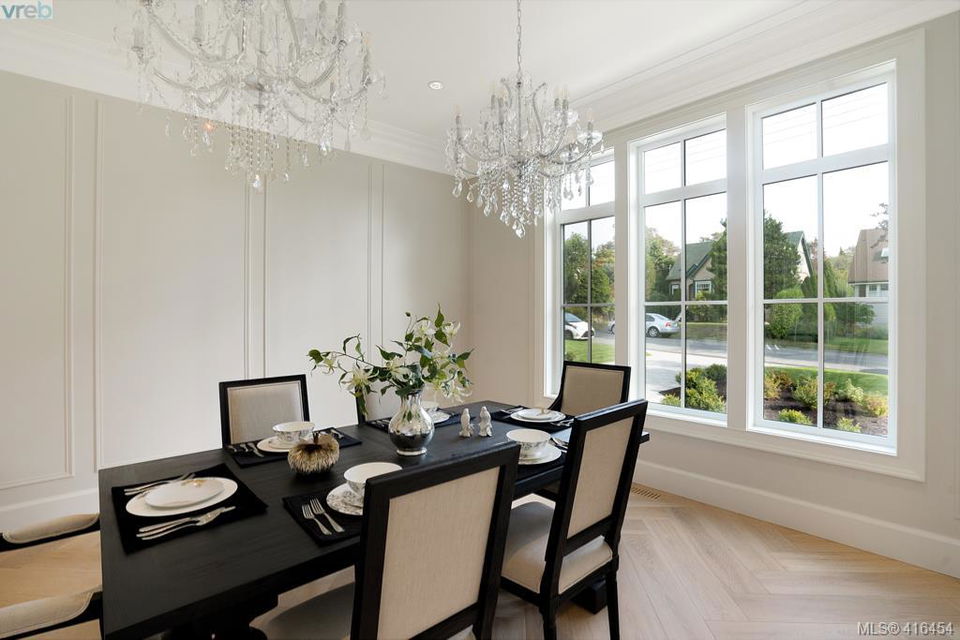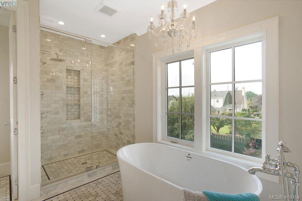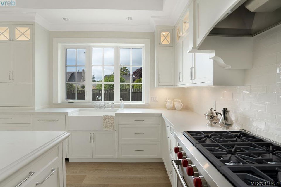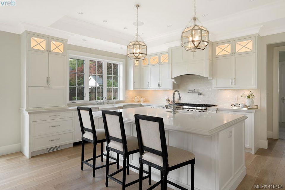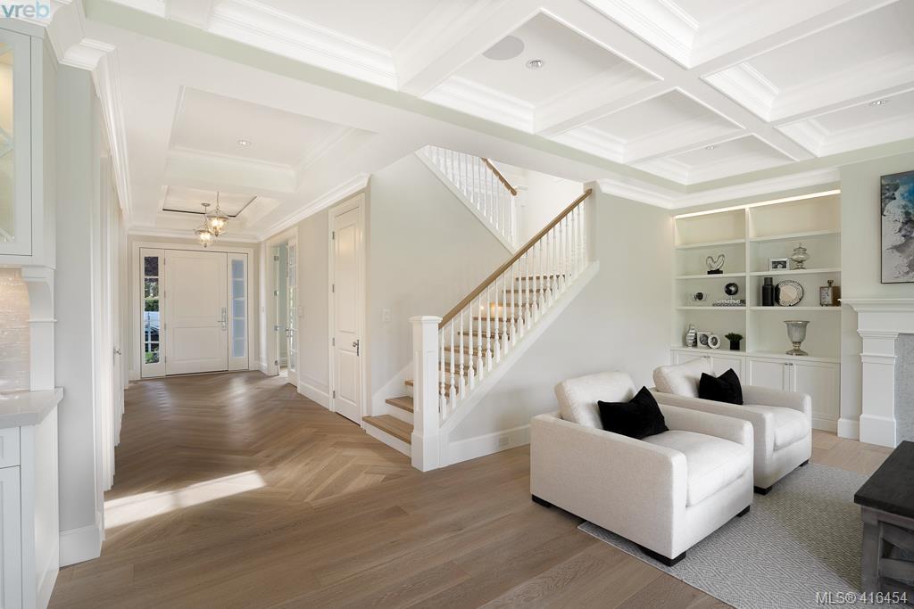 This exceptional newly built home is situated in the one of the most desirable neighbourhoods of Victoria. Custom designed throughout with outstanding finishing and superior attention to detail with 10ft ceilings on two of the three levels, 5 bdrms, an office and 6 baths elegantly assembled over 4779 sq ft. The light Oak flooring weaves its way throughout the home. Two heat-pumps ensure all season comfort. The Butlers pantry has a second dishwasher and connects the dining room and the kitchen. Floor to ceiling windows overlooking the SE facing fenced backyard bring in warm light that accentuates the coffered ceilings and triple-step crown moulding. Upper level has laundry, 3 bdrms and 3 bth with heated marble tile flrs. The magnificent ensuite bathroom has the ultimate in relaxation; deep soaker tub and walk in marble shower. The lower level has 9ft ceilings with a dazzling Entertainment room with wet bar, two more bdrms and two 5 piece bathrooms. Wait till you see the appliances!!