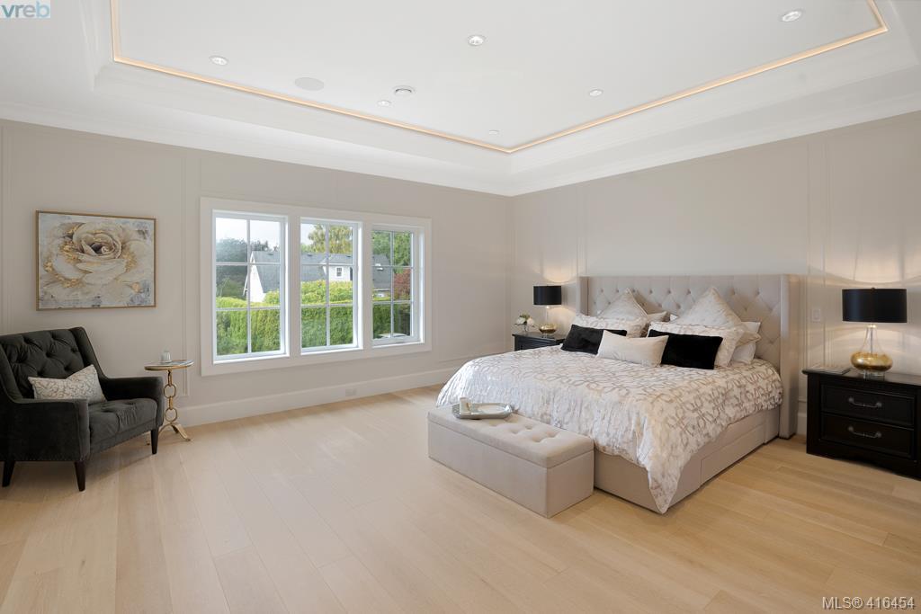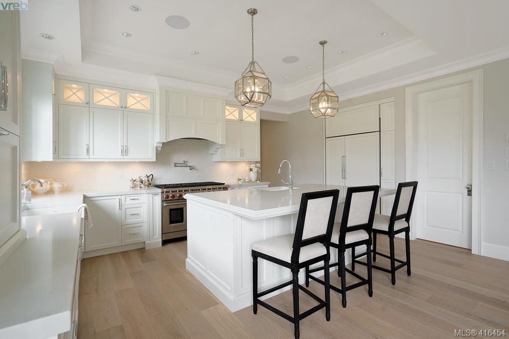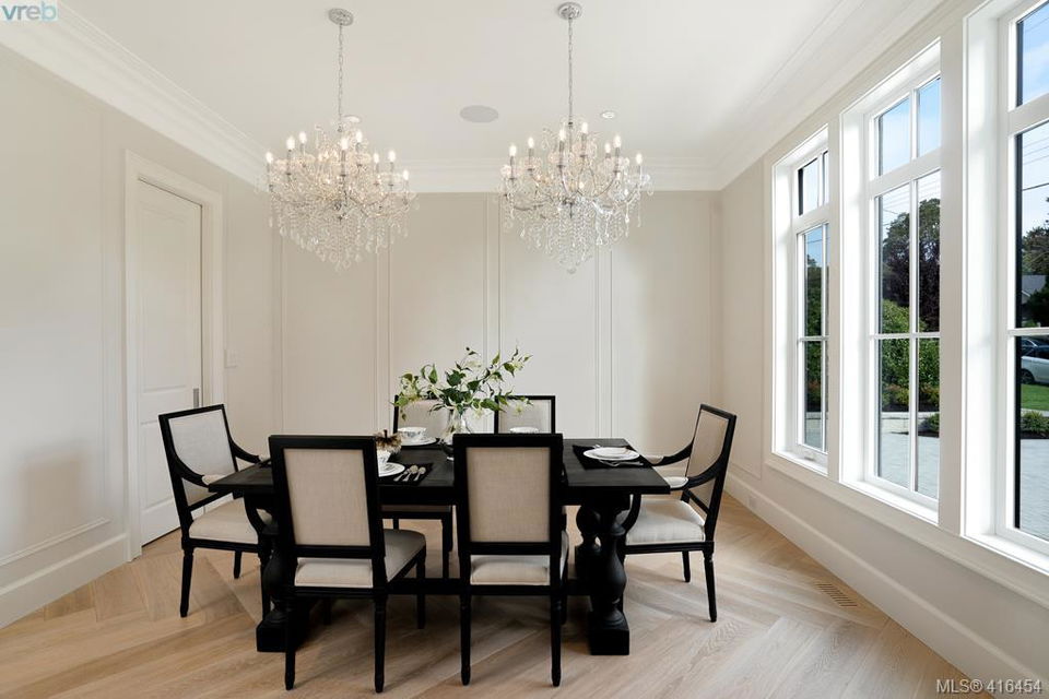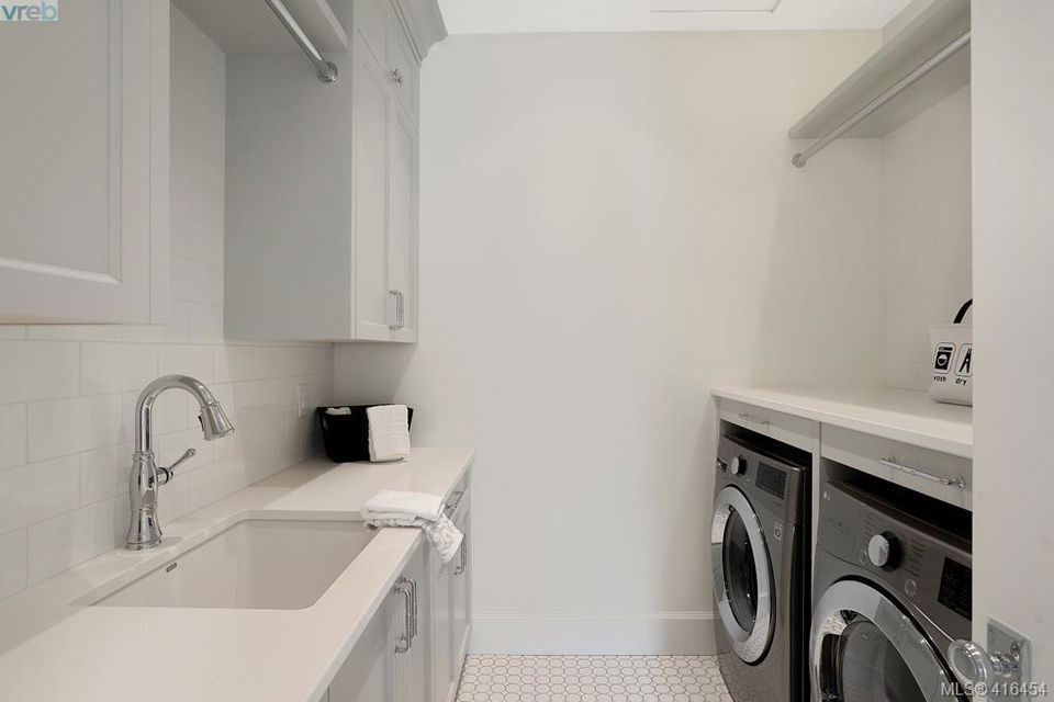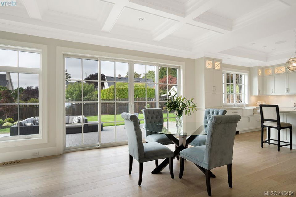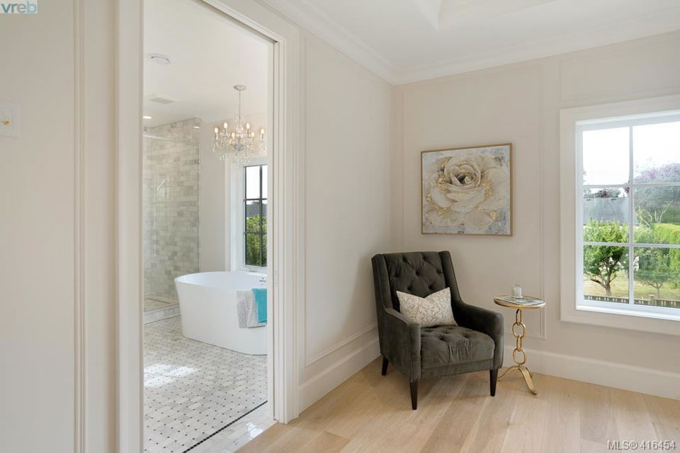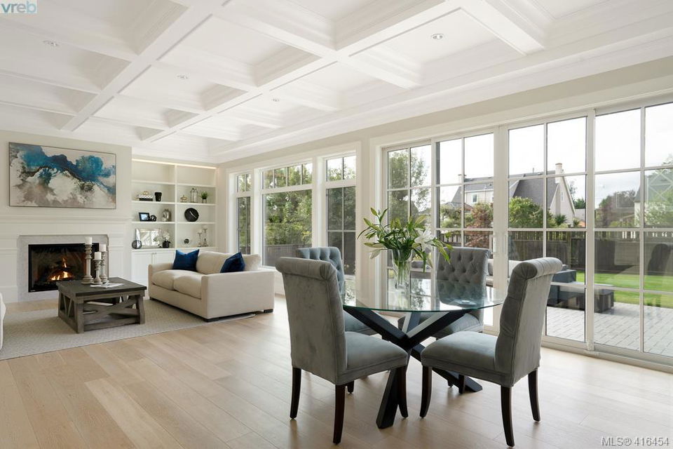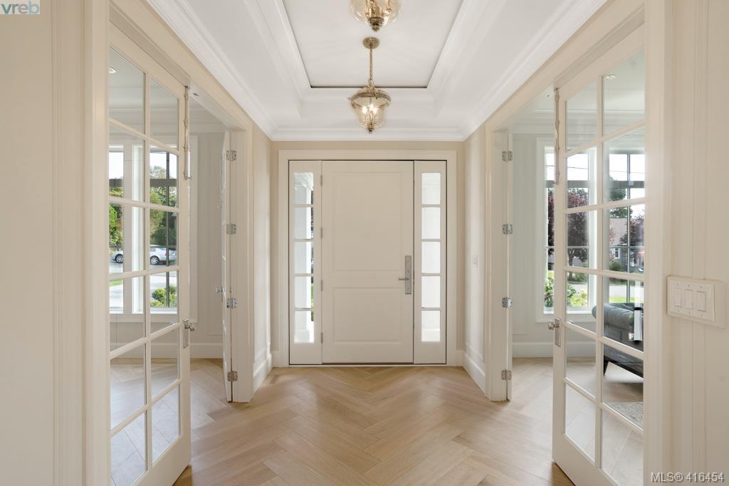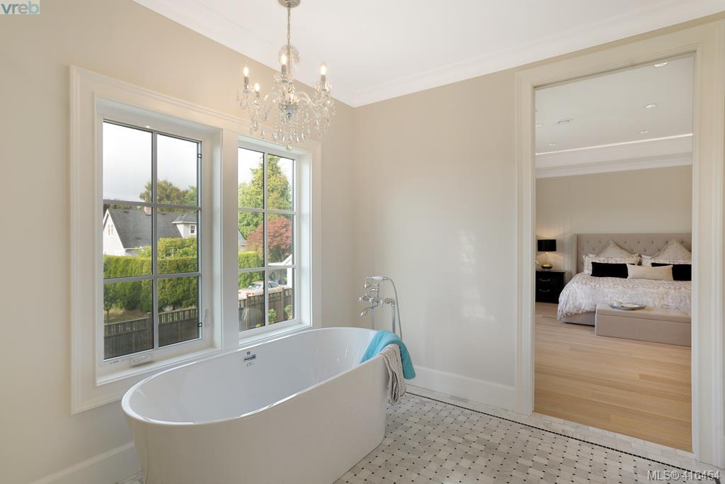 This exceptional newly built home is situated in the one of the most desirable neighbourhoods of Victoria. Custom designed throughout with outstanding finishing and superior attention to detail with 10ft ceilings on two of the three levels, 5 bdrms, an office and 6 baths elegantly assembled over 4779 sq ft. The light Oak flooring weaves its way throughout the home. Two heat-pumps ensure all season comfort. The Butlers pantry has a second dishwasher and connects the dining room and the kitchen. Floor to ceiling windows overlooking the SE facing fenced backyard bring in warm light that accentuates the coffered ceilings and triple-step crown moulding. Upper level has laundry, 3 bdrms and 3 bth with heated marble tile flrs. The magnificent ensuite bathroom has the ultimate in relaxation; deep soaker tub and walk in marble shower. The lower level has 9ft ceilings with a dazzling Entertainment room with wet bar, two more bdrms and two 5 piece bathrooms. Wait till you see the appliances!!