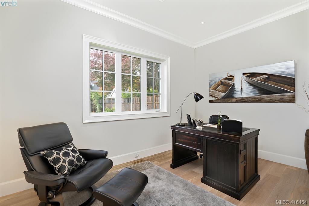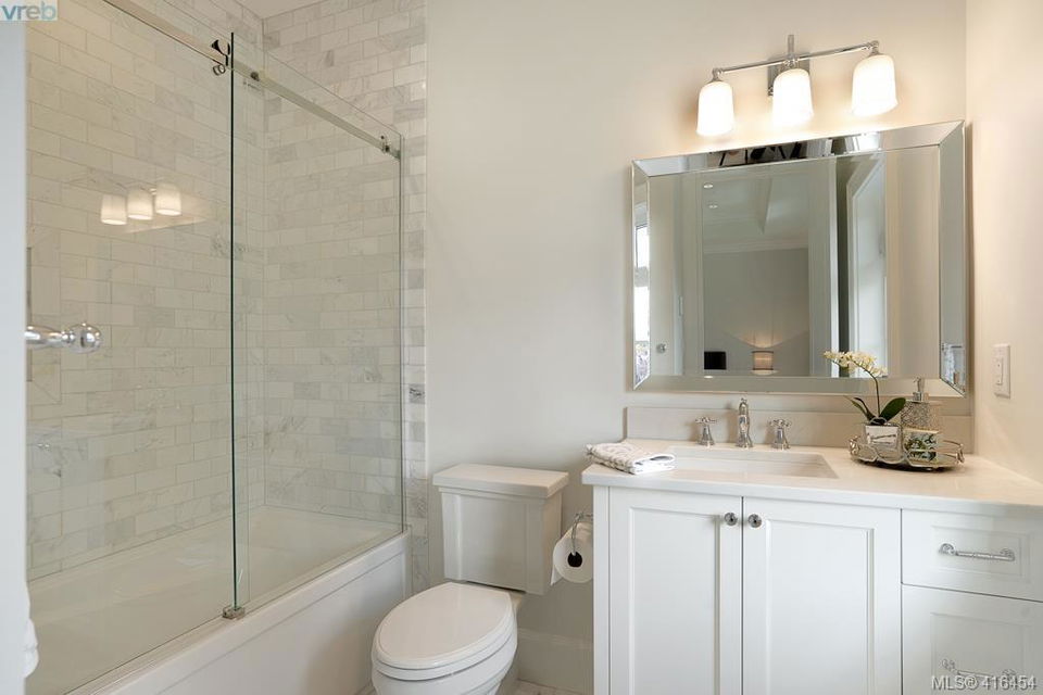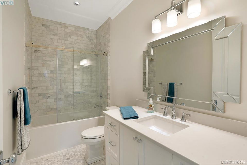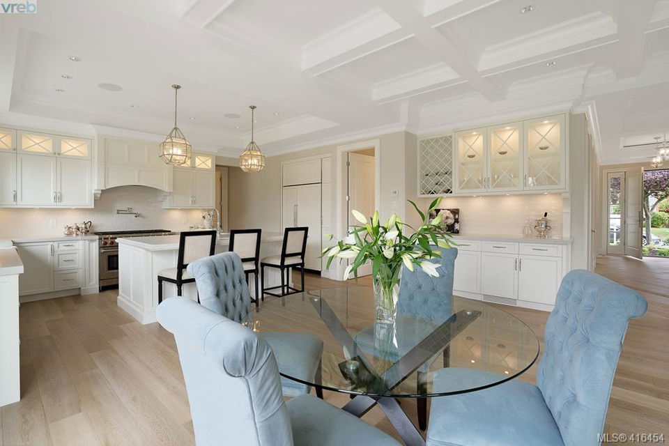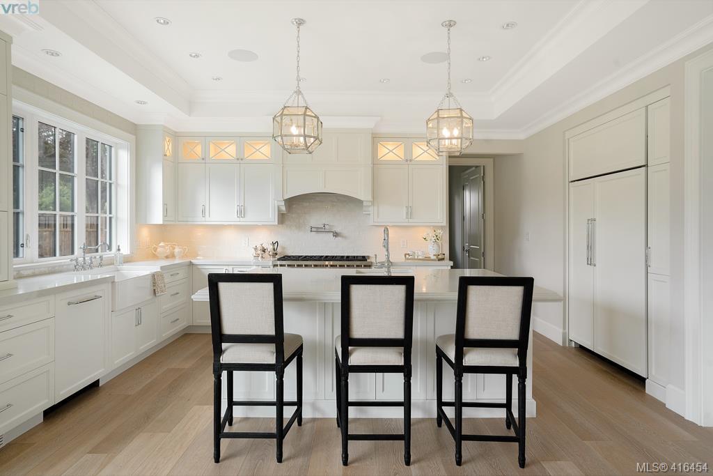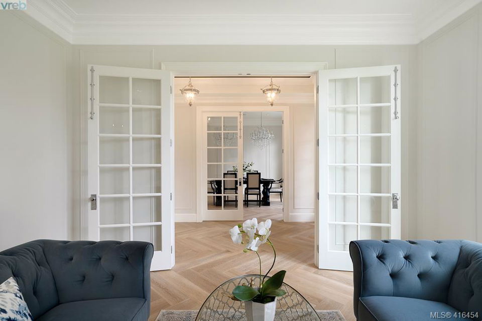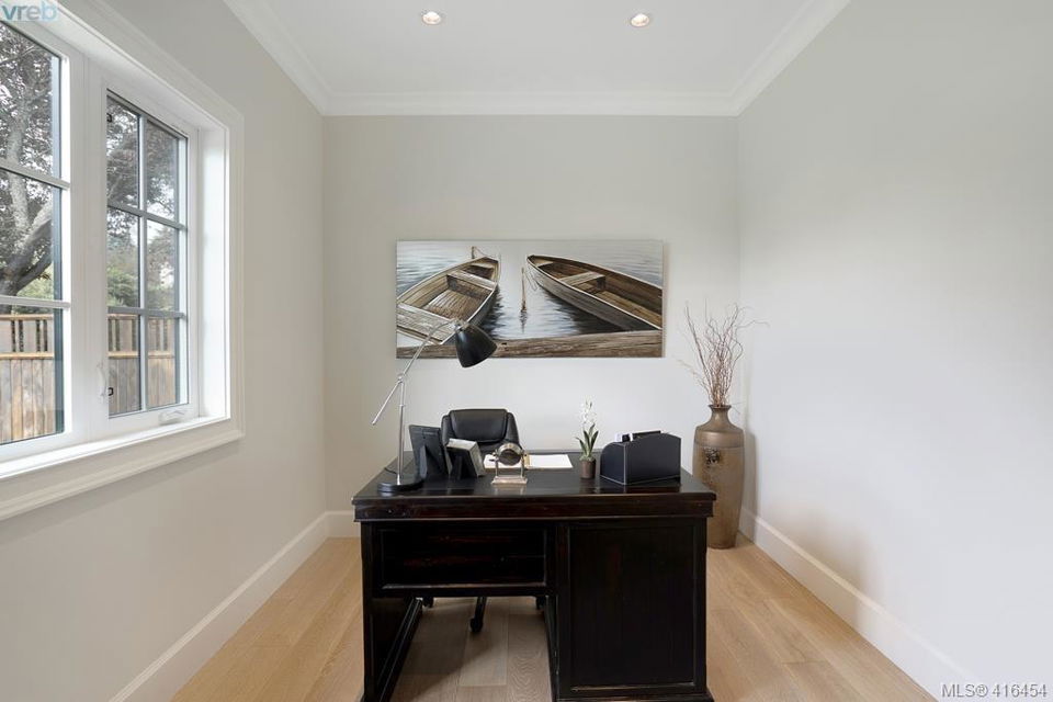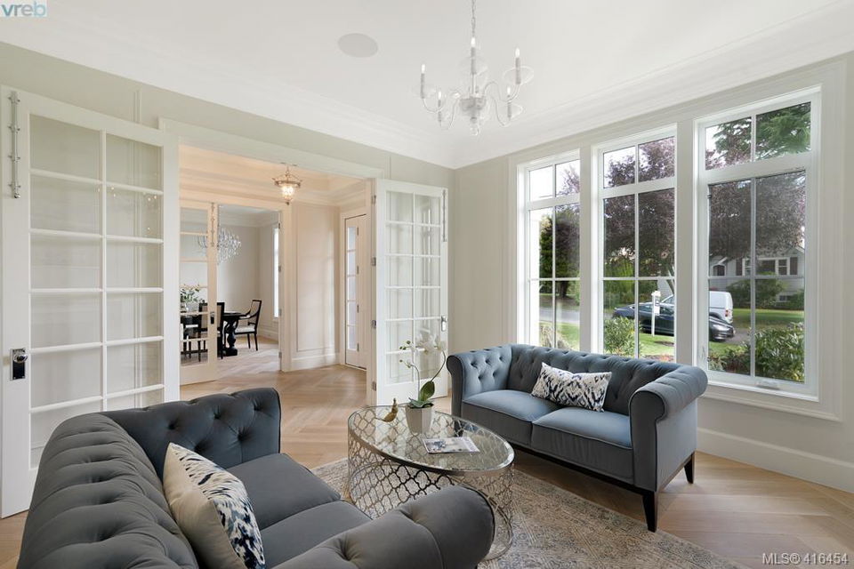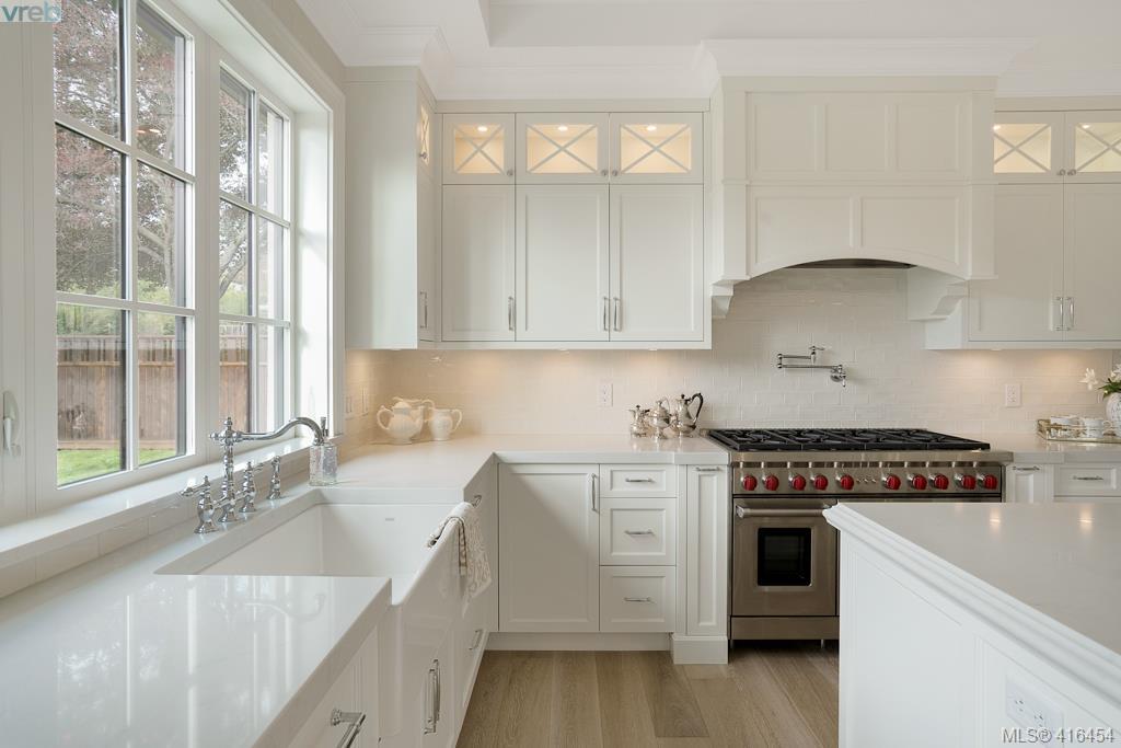 This exceptional newly built home is situated in the one of the most desirable neighbourhoods of Victoria. Custom designed throughout with outstanding finishing and superior attention to detail with 10ft ceilings on two of the three levels, 5 bdrms, an office and 6 baths elegantly assembled over 4779 sq ft. The light Oak flooring weaves its way throughout the home. Two heat-pumps ensure all season comfort. The Butlers pantry has a second dishwasher and connects the dining room and the kitchen. Floor to ceiling windows overlooking the SE facing fenced backyard bring in warm light that accentuates the coffered ceilings and triple-step crown moulding. Upper level has laundry, 3 bdrms and 3 bth with heated marble tile flrs. The magnificent ensuite bathroom has the ultimate in relaxation; deep soaker tub and walk in marble shower. The lower level has 9ft ceilings with a dazzling Entertainment room with wet bar, two more bdrms and two 5 piece bathrooms. Wait till you see the appliances!!