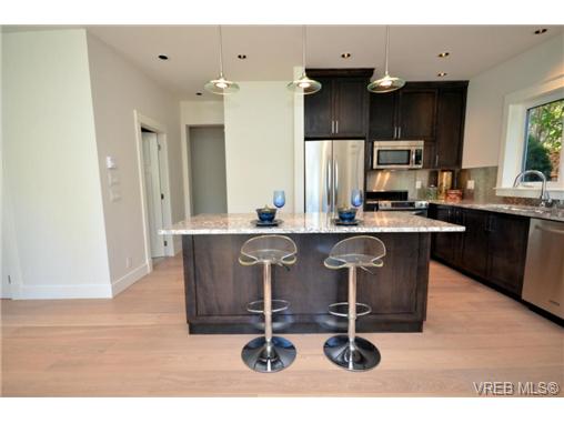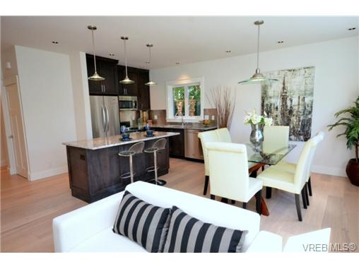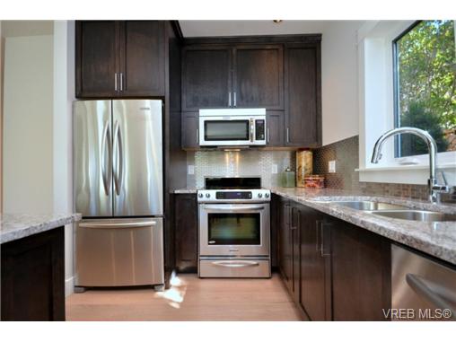 The perfect synergy of lifestyle, location and quality craftsmanship has been combined to create the perfect picture of condo living. This walk up, 2 bedroom, 2 bathroom unit is finished to the highest standards with an open plan that boasts nine-foot ceilings. Gourmet kitchen includes granite counters with service bar, chef-series stainless steel appliances, custom millwork, and tile backsplashes. Two baths with heated floors, expressive tile, and top mounted vanities. Try barbequing and entertaining alfresco on your outdoor patio. Each unit also offers one off-street parking stall and a storage locker. All this is just a short stroll to Gonzales Beach or Fairfield Plaza. Price includes GST. New Home Warranty