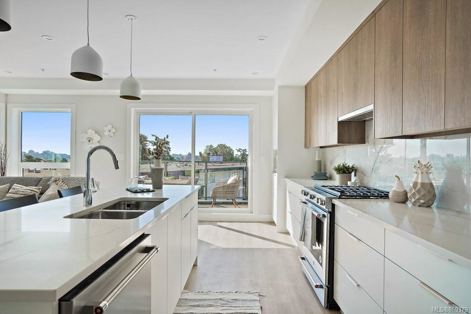 Unlike any other condo building in Victoria, Harbour Landing offers incomparable quality constructed by award winning builders GT Mann Contracting nestled seaside at 835 Dunsmuir Rd. This 2 bed 2 bath offers spectacular harbour views w/ spacious 950 sq. ft. leaving 2 of the best units remaining & ready for immediate occupancy. Book a private showing to be welcome to stunning interior by Maven Design, gourmet kitchen w/ quartz countertops, eat in island, in suite laundry, top of the line appliance package, & sun drenched balcony. No detail has gone unmissed w/ massive windows allowing the natural light in up on the 3rd floor, built in gas fireplace, & extensive storage space. Explore a coastal lifestyle w/ easy commute to Downtown Victoria, Westbay walkway, plus plenty of beaches and parks – truly one of the most up and coming locations. Enjoy top quality recreation & easy access to ample choices of shopping or dining either by walk, drive, or bike ride – your options are limitless.