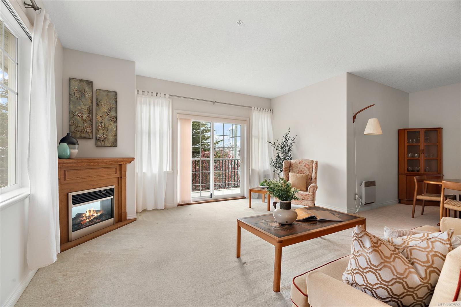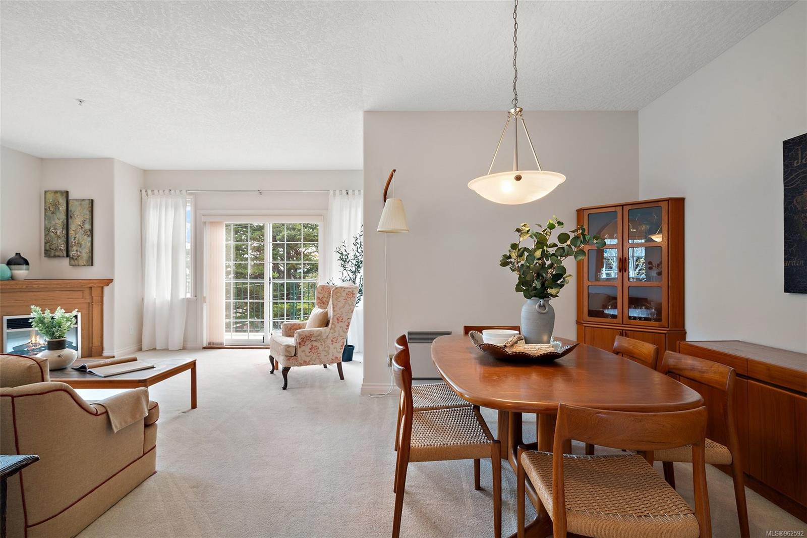 Welcome to Stephen’s Green a desirable 8-unit complex on the quiet side of Fourth Street. This lovely two-bed two-bath corner condo offers a spacious 1351 sq ft of living space, providing the perfect blend of comfort & style. Step inside & be greeted by oversized windows that flood the condo with natural light, creating a warm & inviting atmosphere. The open-concept design seamlessly connects the living & dining areas, offering ample space for entertaining guests or simply relaxing after a long day in front of the fireplace. Prepare gourmet meals in the eat-in kitchen, featuring generous counter space & abundant cupboard storage. Retreat to the expansive primary bed, where you’ll find plenty of room to create your sanctuary. With space for a yoga area, a cozy reading nook, or a home office desk. Walk-in closet & 2 additional closets plus a 3-piece ensuite. Walk to everything that beautiful Sidney has to offer. Restaurants, shops, and the fabulous waterfront walk. Small dog or cat ok.