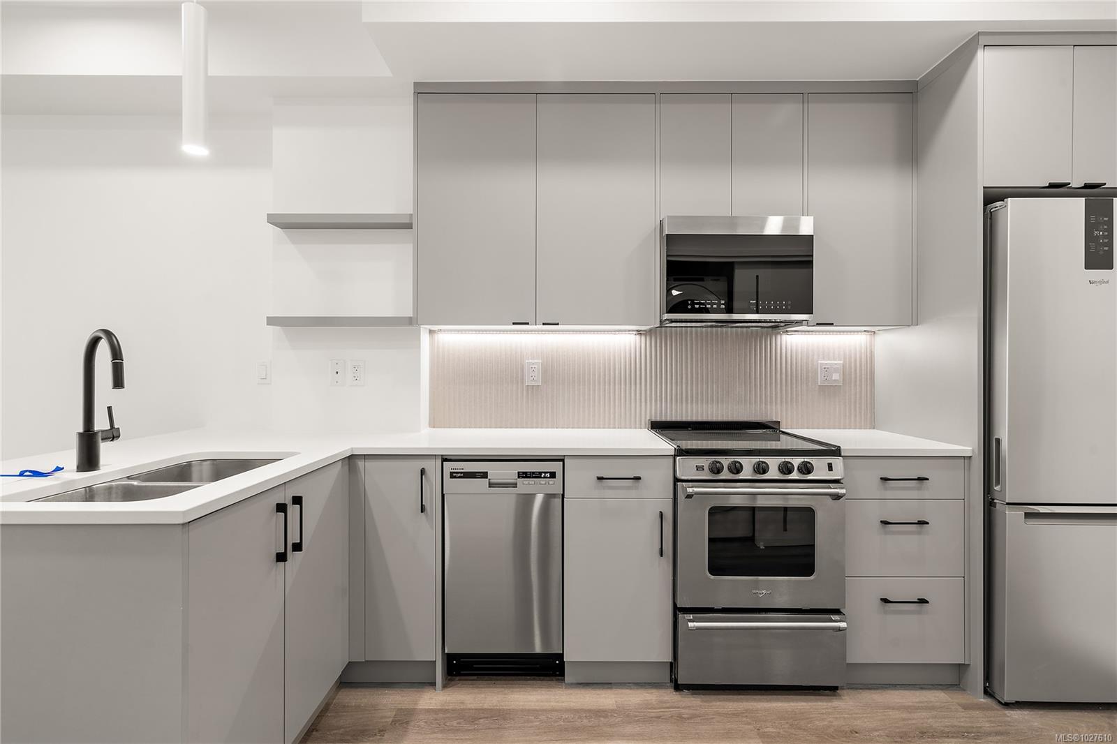 Move-in ready at The Proxima! Welcome to Unit 308 in the Bellus building located off Lampson Ave. A thoughtfully designed junior one-bed offering an ideal entry point into homeownership or a smart addition to your investment portfolio. Located in the heart of Esquimalt Village, The Proxima places you steps from everyday conveniences & weekend adventures alike, including Saxe Point Park, local breweries, Esquimalt Market, shopping, & the Archie Browning Sports Centre. Built by award-winning GT Mann Contracting with interiors curated by Spaciz Design, this home features quality finishes & efficient space planning. Enjoy quartz countertops, space saving appliances, separate storage, and a heat pump with cooling for year-round comfort. Overlooking The Proxima’s landscaped courtyard, this unit offers a peaceful outlook to unwind. Residents also enjoy access to a state-of-the-art gym, atrium, & inviting common spaces designed for connection and convenience.