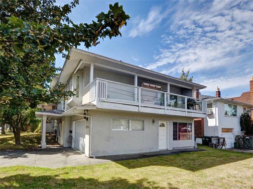.Great investment property or live in one suite and have your tenant live in the other suite and pay half your mortgage in this centrally located 1,568 sq. ft. strata duplex. 2 bedroom, 2 bath up and 1 bedroom, 1 bath down. Potential for $2,500. per month income. Easy care tile floors throughout the whole home, very efficient in floor gas fired hot water radiant heat, newer roof, no strata fees, large single car garage and a great deck off the upper level kitchen. The lower suite is freshly painted with an updated bathroom and kitchen. Close to all amenities and less than 10 minutes to downtown.