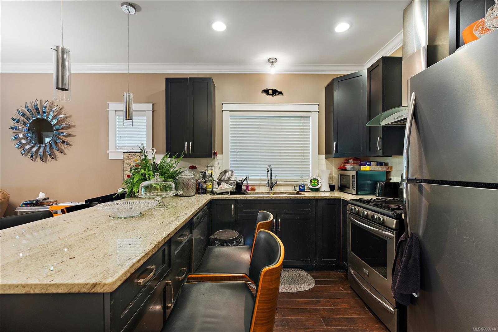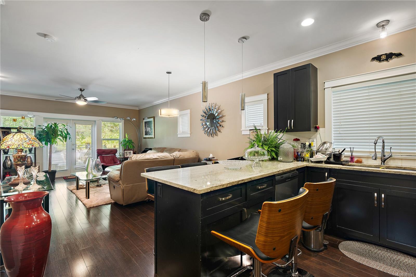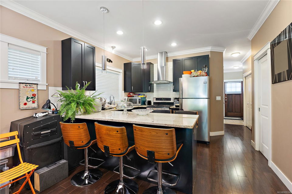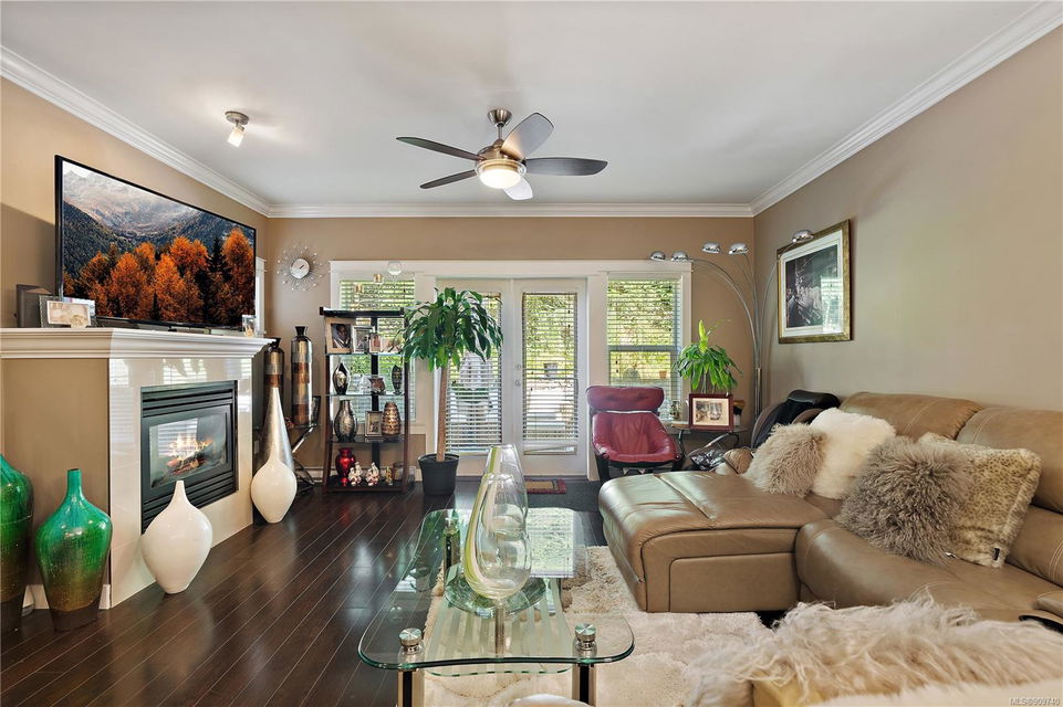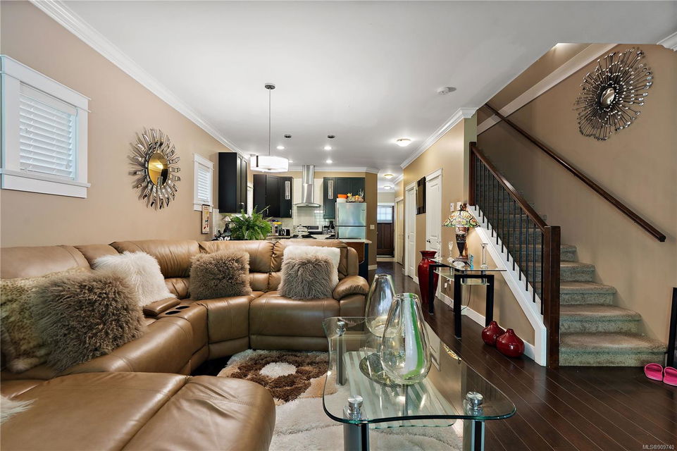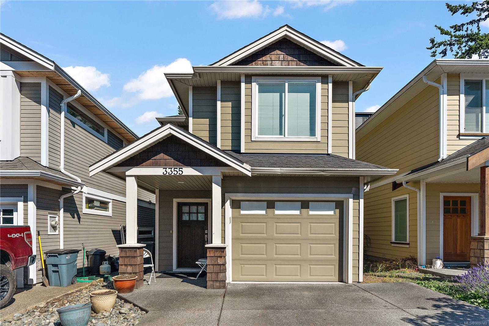 This delightful 3 bed, 3 bath single-family home is a great alternative to a townhouse with a superior floor plan offering two stories, 1,404 sq. ft. of living space, attached garage, fresh paint, w/ recently replaced carpets & brand-new washer dryer combo. The main level features hard surfaced flooring, 2-pce bath, w/ central kitchen, sparkling granite countertops, eat in island, stainless appliance pkg, which perfectly extends to the dining area to 16×11 large living room with gas fireplace & French doors out to the patio. Upstairs you will find a generously sized primary bedroom w/ double closets and premium 4-pce ensuite w/ relaxing soaker tub. With 2 additional bedrooms & 4-pce bath, this home is perfect for a small family or starter. Happy Valley is a fantastic area to put down your roots – walking distance to Happy Valley Elementary, the stunning mountain views from Happy Hill, or just a quick drive over to the new Belmont Market and Westshore Town Centre.