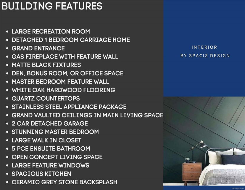 Rare opportunity to own this custom 2,638 sq. ft. home plus legal 1 bed 1 bath carriage house built to the high standards of McKendry Developments featuring high end finishes by locally renowned Spaciz Design. The 3 bed + den, 4 bath welcomes you w/ grand entrance featuring split lvl stairs & ceramic stone tiling, guest bath, white oak hardwood leading into the open kitchen, dining, & living rm. The impressive kitchen offers 2 tone cabinetry w/ panel fridge, quartz countertops, deluxe appliance pkg w/ gas range, & floor to ceiling fireplace in the living rm. The master is executed to perfection w/ oversized walk-in closet & spa-like 5 pce ensuite w/ floating vanity & free standing tub. 2 additional beds are on the main + laundry rm & 4 pce bath w/ dble sink quartz vanity. Upstairs you will find a massive rec room, private study, & tasteful bath. Don’t miss the opportunity to own this new custom home w/ detached 2 car garage melding into the tree lined protected park-like surrounding.