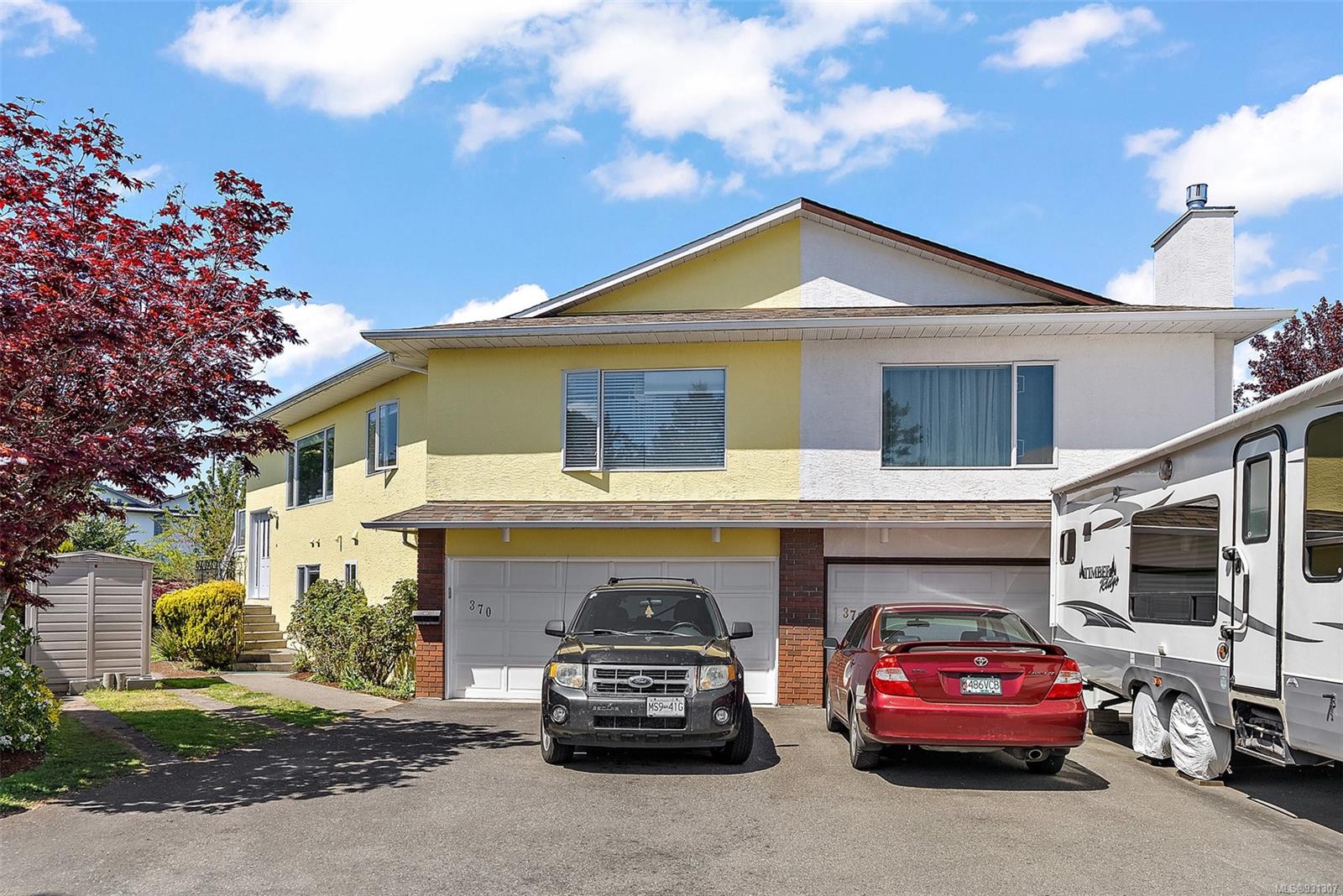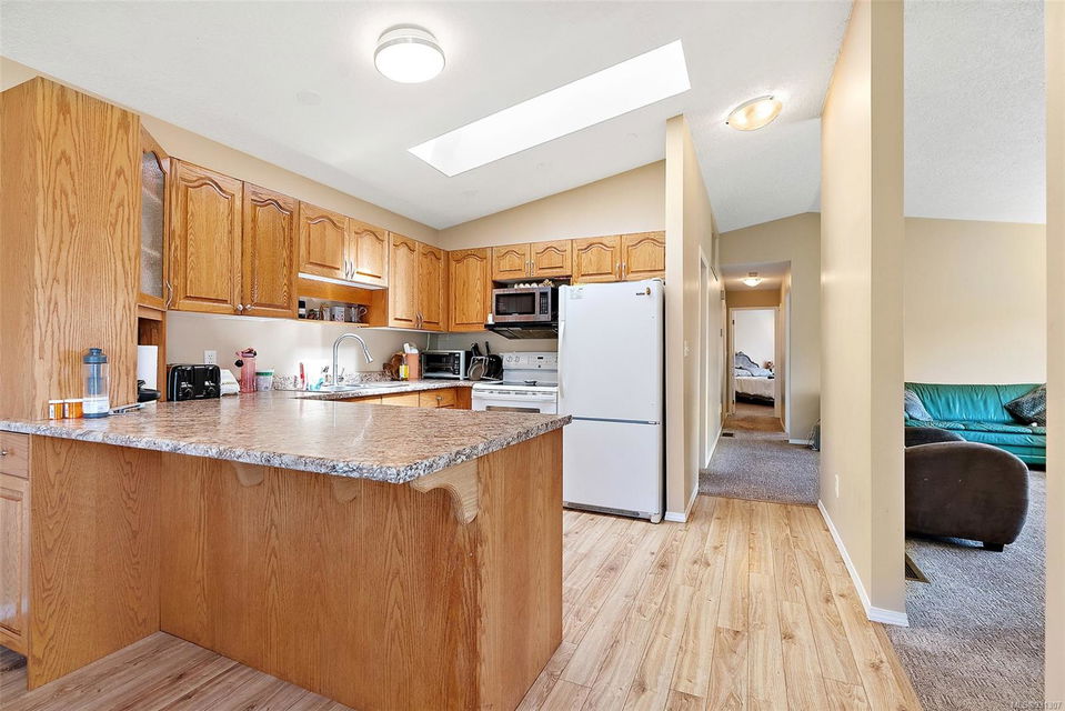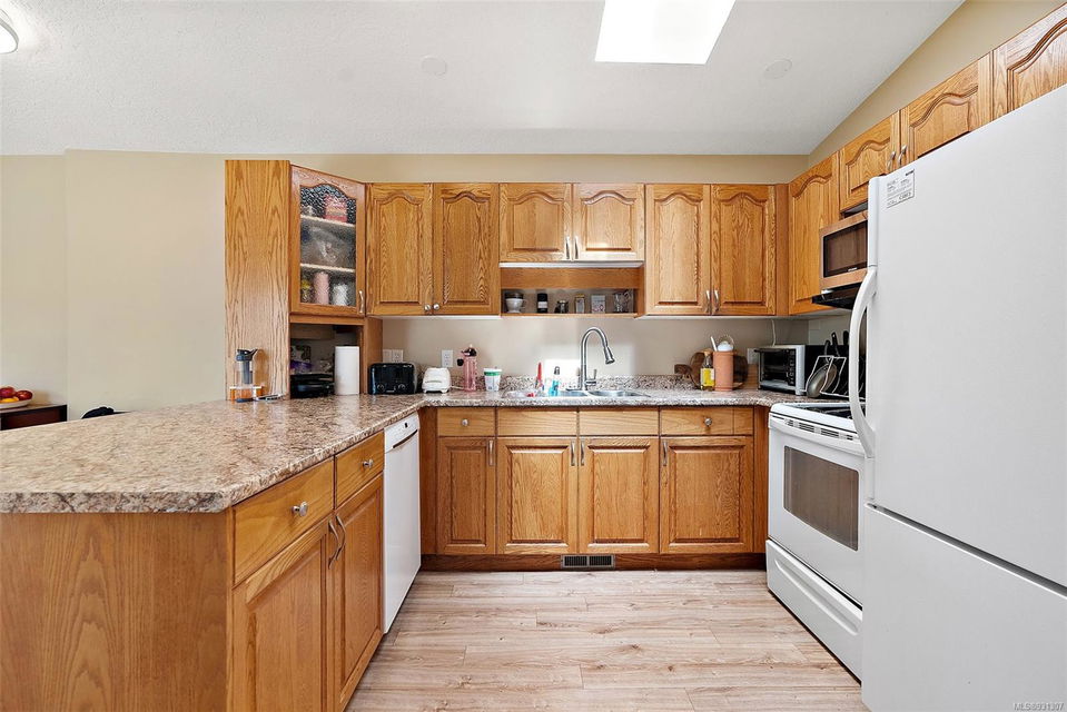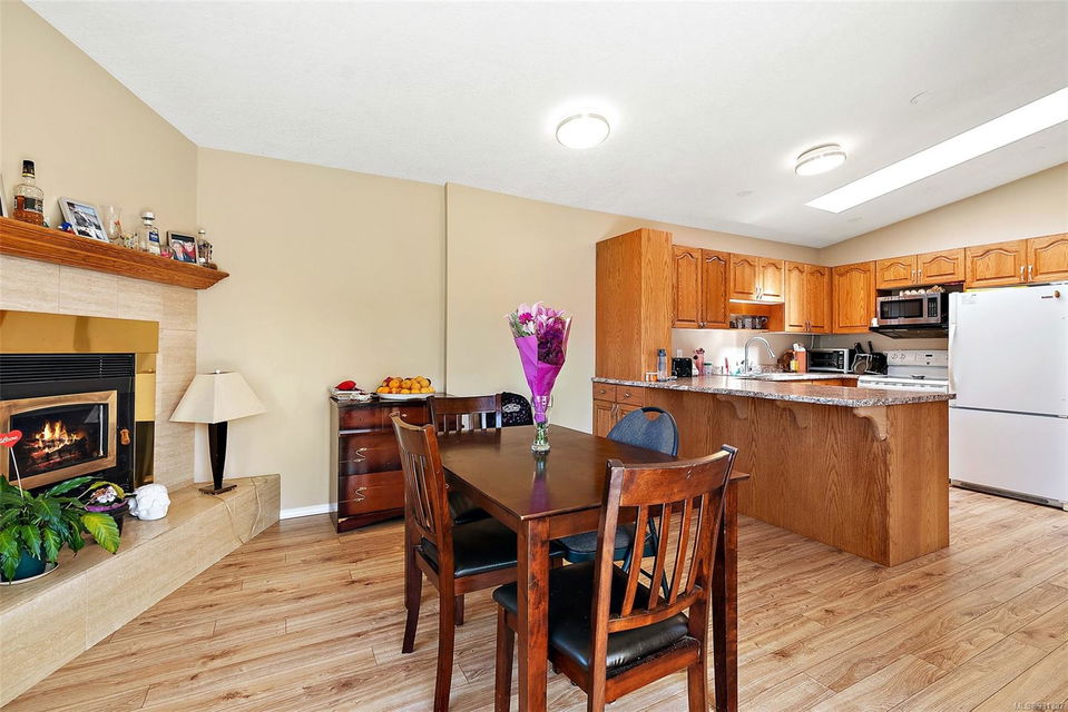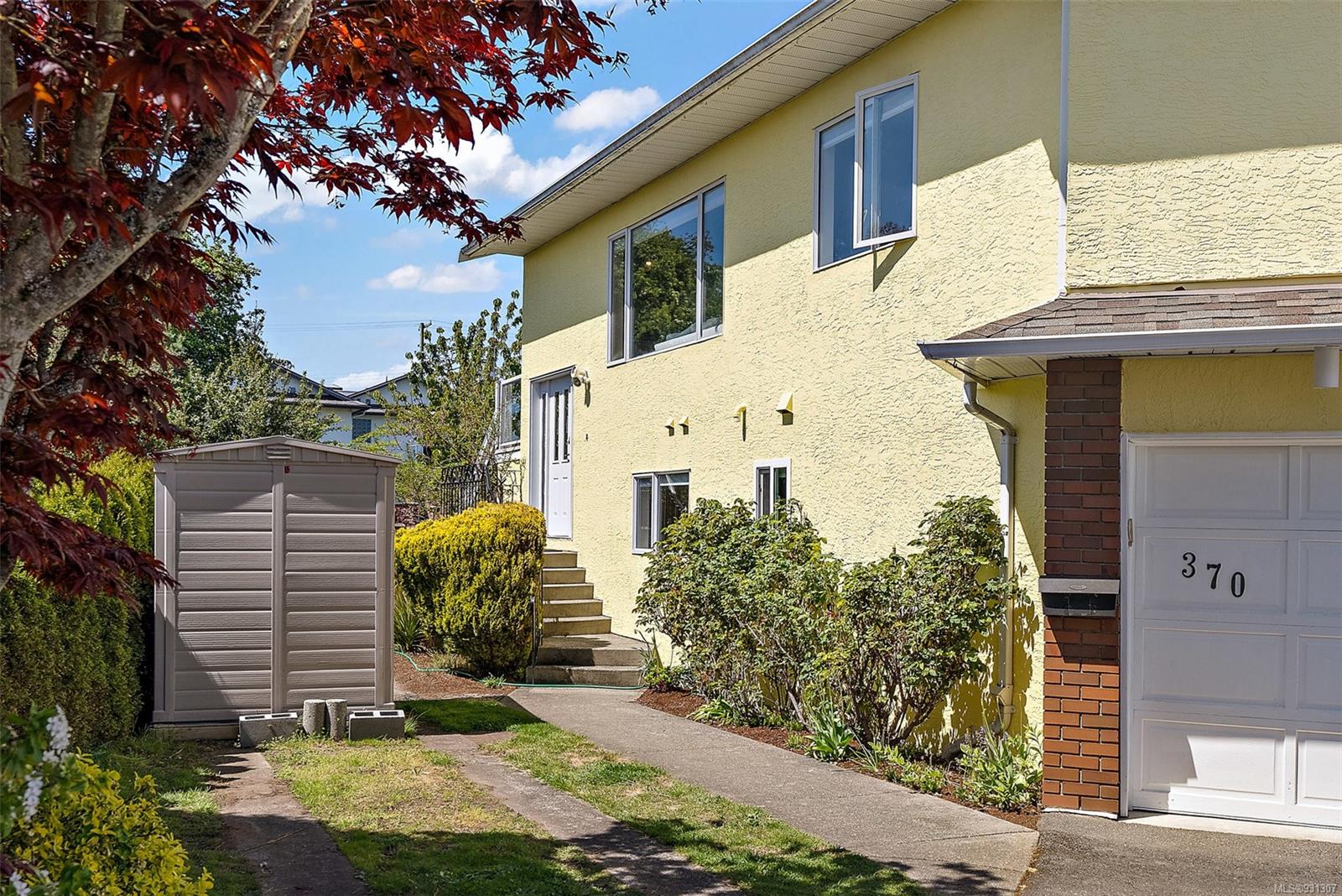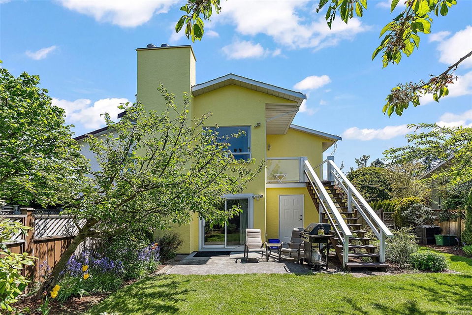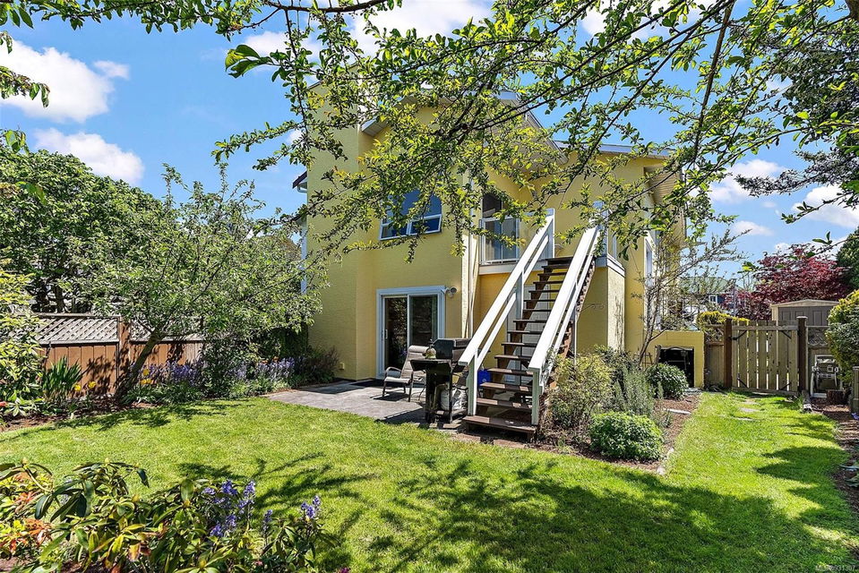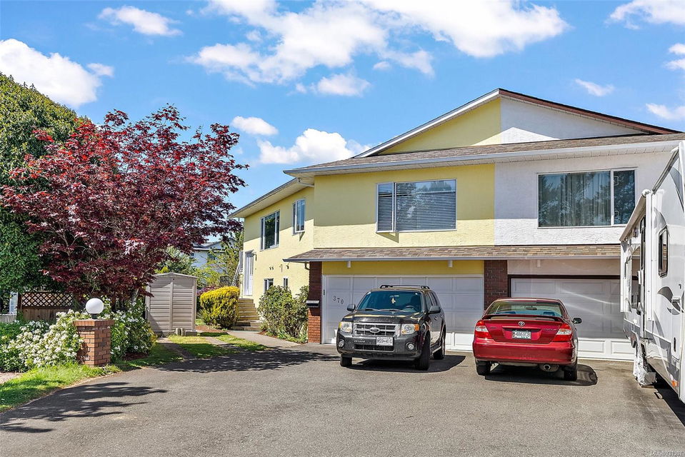 Positioned on easily one of the nicest streets in Esquimalt you will find this simply adorable half duplex with rental helper perfect for families, investors, downsizers or starter home on a quiet cul-de-sac steps from the Macaulay Point Waterfront Park. This 2,000+ spacious layout features 5 bedrooms, 3 bathrooms, & 2 kitchens. The main floor offers 3 bedrooms, 2 bathrooms, sunny balcony, eat-in kitchen island, & wood burning fireplace. Downstairs has 8 ft. ceilings, 2 bedrooms, 4 piece bath, separate laundry, double car garage and is fully self contained with walk out access to the large patio perfect for summer BBQs. The yard is easily maintained, lined with flower beds, fruit trees, & fully fenced, offering a completely private, tranquil retreat. Conveniently located, this home is close to parks, schools, recreation facilities, and shopping centers or a quick commute to downtown Victoria or other neighboring areas.