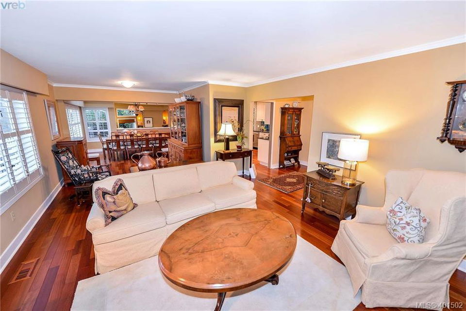 Every so often a home comes along that you know is the one. Tucked away amongst the Garry Oaks, on a rural feeling byway, this home is a rare find. Fantastic floor plan with a 2200+ sq ft. main floor featuring 3 bedrooms with a lovely master ensuite and french doors to adjoining private, west facing deck. The floor plan is nicely separated with the bedrooms on one wing and the living on the other. As you enter the front door, you will appreciate the luxurious hardwood flooring, a stunningly updated kitchen, living and dining rooms made for entertaining, and a cozy family room that opens onto another private patio complete with water feature and outdoor seating. As the main floor is garden level, the house has a beautiful relationship with the outdoor space. There is a bonus of a furnished one bedroom suite with a huge kitchen and bathroom which also enjoys its own private outdoor area. A perfect house for a family or empty nesters who want to live on one level and rent the suite.