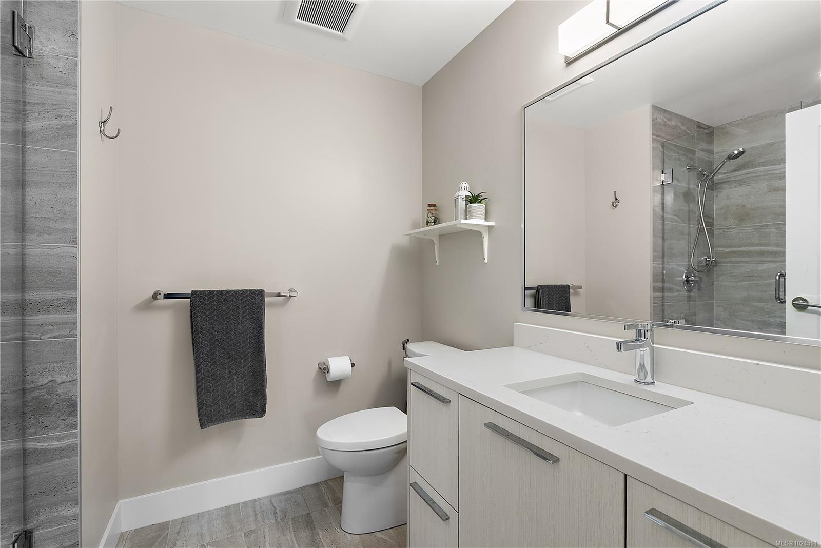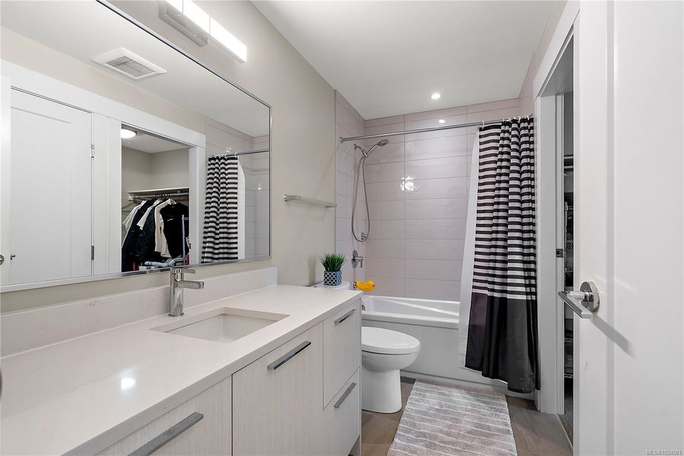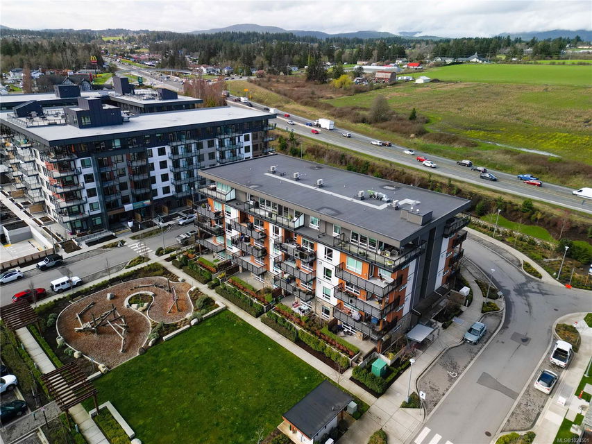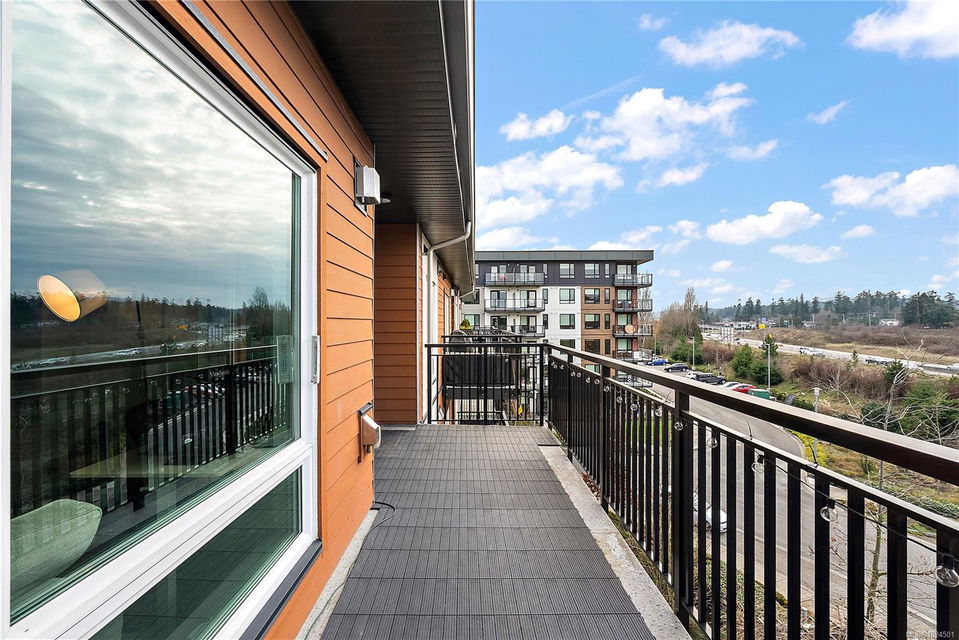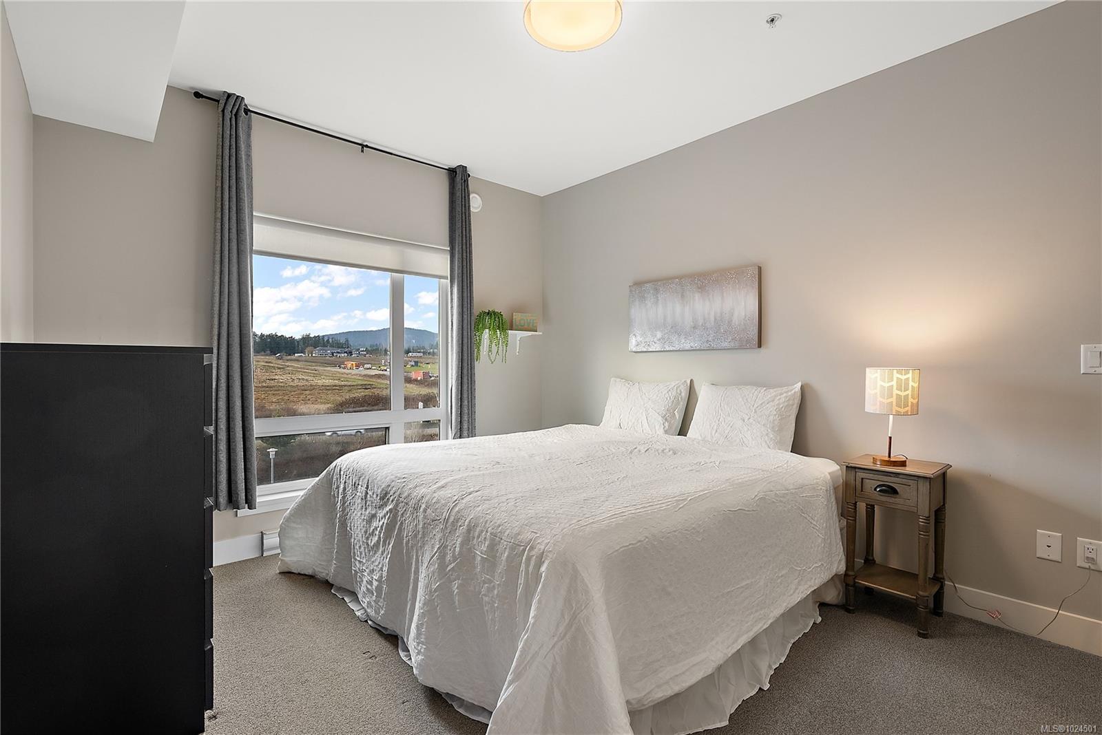 Welcome to The Arbutus—a like-new 2019-built 4th floor residence in Saanichton. This beautifully designed 2 bedroom, 2 bathroom home offers an excellent floor plan with ideal bedroom separation, each featuring walk-in closets and ensuite bathrooms. The primary ensuite boasts luxurious heated tile floors for year-round comfort. The open-concept living, dining, and kitchen area is enhanced by 9’ ceilings, triple-glazed soundproof windows, and a cozy natural gas fireplace. The chef-inspired kitchen includes stainless steel KitchenAid appliances, a gas range, quartz countertops, and ample storage—perfect for entertaining or everyday living. Additional features include in-suite laundry with gas dryer, secured underground parking with recently installed EV charging infrastructure, storage locker, bike storage, designated visitor parking and street parking with free city EV charging station outside. Pet friendly building allowing two dogs or two cats or one of each with no size restriction. Still covered by the 2-5-10 National Home Warranty. Ideally located in Central Saanich, just minutes to downtown Sidney, ferries, and the airport, with easy access to Victoria. Steps from popular Marigold Cafe and a convenient family clinic and pharmacy. Outdoor enthusiasts will love the nearby Lochside Trail, perfect for cycling and jogging. A fantastic opportunity to enjoy modern living in a prime location.