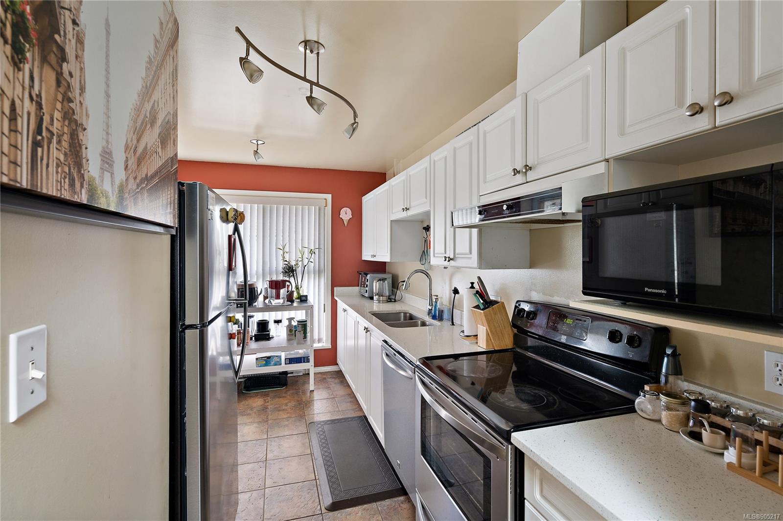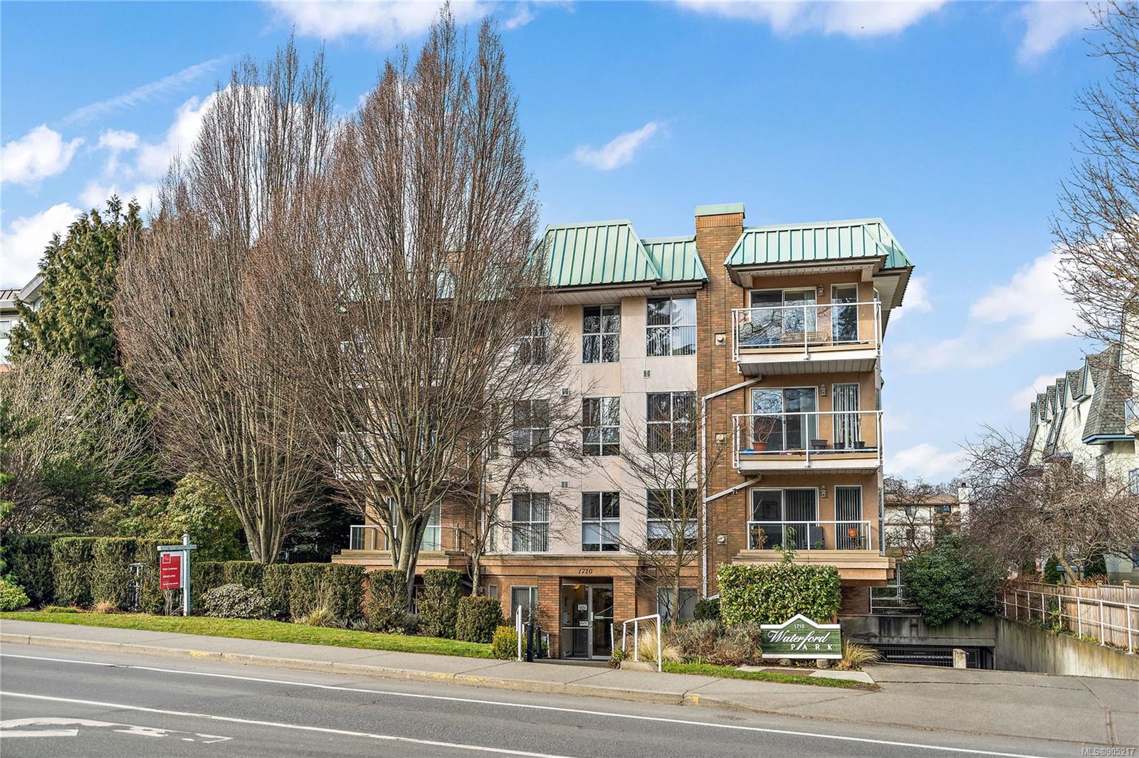 Don’t miss the opportunity to view this spacious 2 bed 2 bath top floor unit in an unbeatable location near the Oak Bay border & walking distance from Downtown Vic! The open living space is invitingly bright w/ skylight, large windows, hardwood flooring, & relaxing gas fireplace to spend your downtime. The kitchen has an abundance of cupboard space, stainless steel appliances, & quartz countertops leaving no updates undone. The master bed is generous in size & leads through to the 4-pce ensuite w/ soaker tub & quartz vanity. With the additional bedroom, dining area, & another 4-pce bath there is plenty of space for a small family, couple, or option to use the 2nd bed as an office to conveniently work from home. This unit includes secure parking, storage, in suite laundry w/ new washer/dryer, pet friendly, & rentable making this an appealing option for any buyer! A fantastic location w/ proximity to shopping, UVIC, Camosun, Jubilee Hospital, Oak Bay, & all that Downtown has to offer.