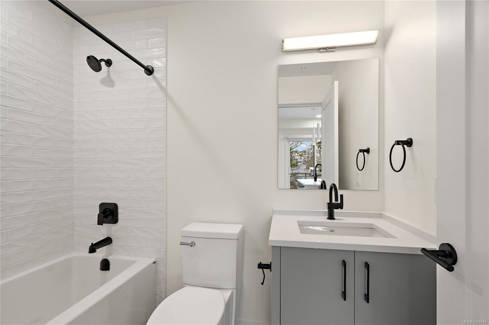 Move in ready!! Southwest facing 1 bedroom corner unit where natural light floods through! Located in the back Bellus building, this is an interior courtyard and Lampson facing unit perched up on the 4th floor inclusive of parking and storage. Finished in our popular Caligo colour scheme mixing neutral & modern tones with quartz countertops, large eat-in island, and black stainless KitchenAid appliance package. Brought to you by award winning GT Mann Contracting and superior design by Spaciz Design. The grand glass lobby welcomes residents to enjoy the state of the art gym, atrium, and courtyard. Located in the heart of Esquimalt Village, The Proxima is perfectly positioned for a life full of adventure, experiences, & amenities w/ Saxe Point Park, local breweries, Esquimalt Market, shopping, & the Archie Browning Sports Centre just a stone’s throw away.