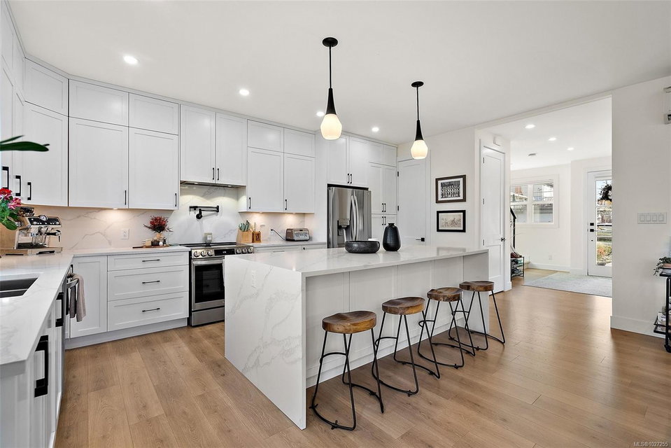 Welcome to 4240 Springridge Crescent, a near-new residence built in 2023, discreetly positioned on its own private road in one of West Saanich’s most sought-after central & family-friendly neighbourhoods. This thoughtfully designed home offers elegant open-concept living with three spacious bedrooms on the upper level, complemented by a self-contained one-bedroom suite above the garage with a private entrance ideal for added income potential, guests, or extended family. High-end fixtures and finishes are showcased throughout, including a chef-inspired kitchen with premium stainless steel appliances, massive island, quartz countertops w/ matching backsplash, and walk-in pantry. The luxurious primary ensuite is paired with a generous walk-in closet, and refined attention to detail at every turn. Outdoors, enjoy a fully fenced backyard designed for both relaxation and entertaining. Ideally located within walking distance to Copley Park, public transit, Northridge Elementary, and just minutes from Royal Oak Shopping Centre, Commonwealth Place, & Broadmead Village. Complete with the balance of the 2-5-10 New Home Warranty, this exceptional home offers a rare blend of modern luxury, functionality, and peace of mind.