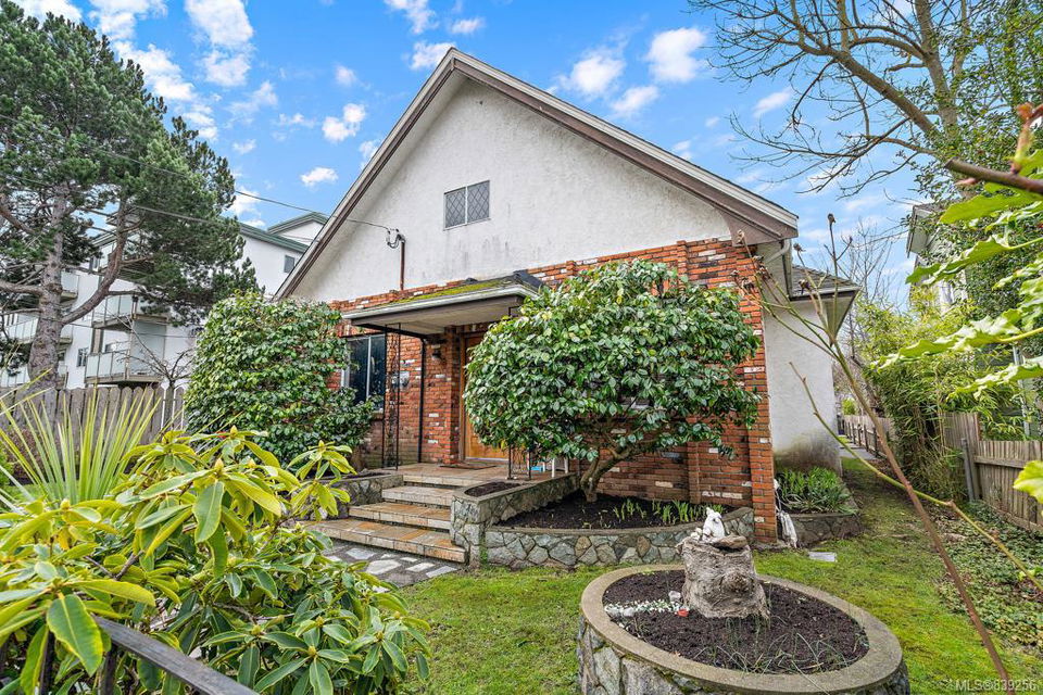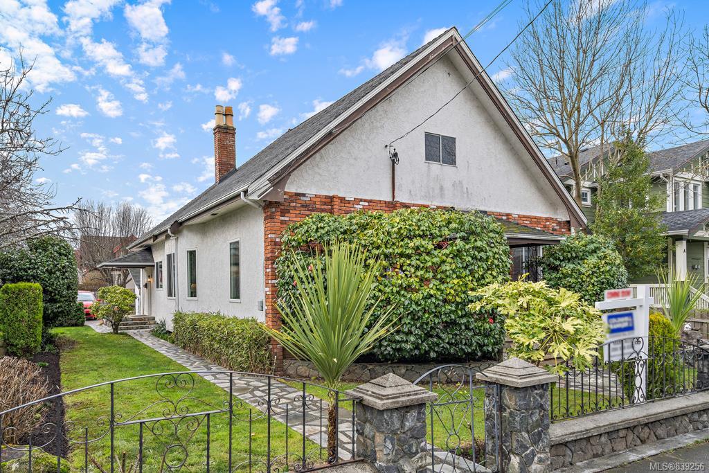 Attn Investors and Developers. Great James Bay location one block from the ocean on a 6,681 sq. ft. level lot. Built in 1920, one side is 2 bedrooms, 1 bath and the other is 1 bedroom, 1 bath for a total of 1,757 finished sq. ft. plus a large undeveloped attic. Spacious living rooms and kitchens, separate laundries and storage, multiple fireplaces, great patios for both sides, updated kitchen and bath, newer roof, vinyl windows and much more. Currently zoned R2. Bring your ideas!