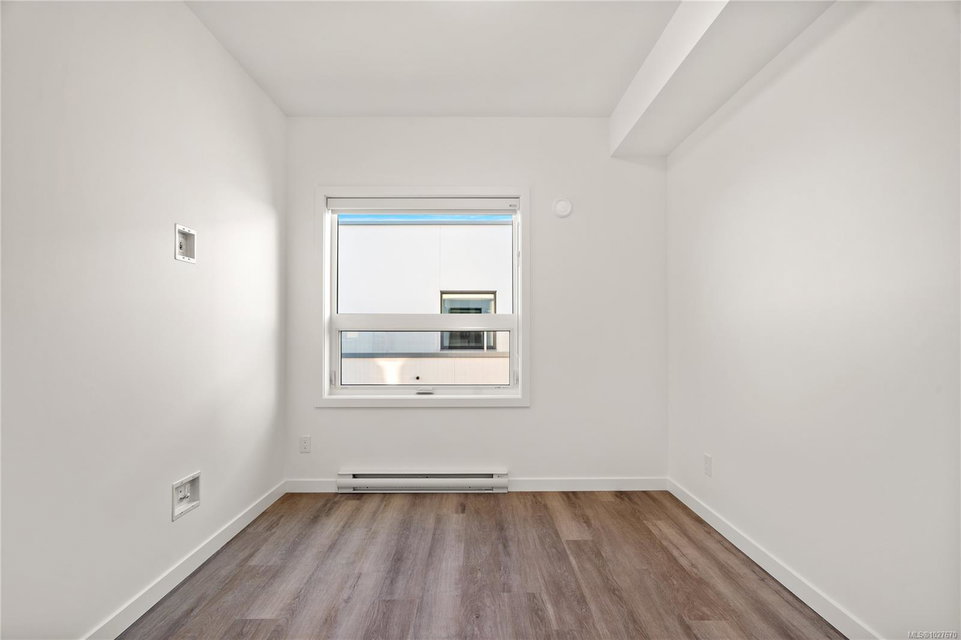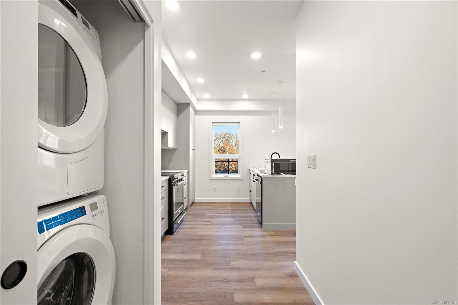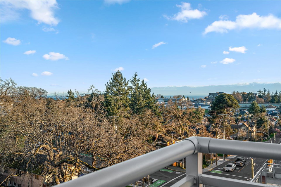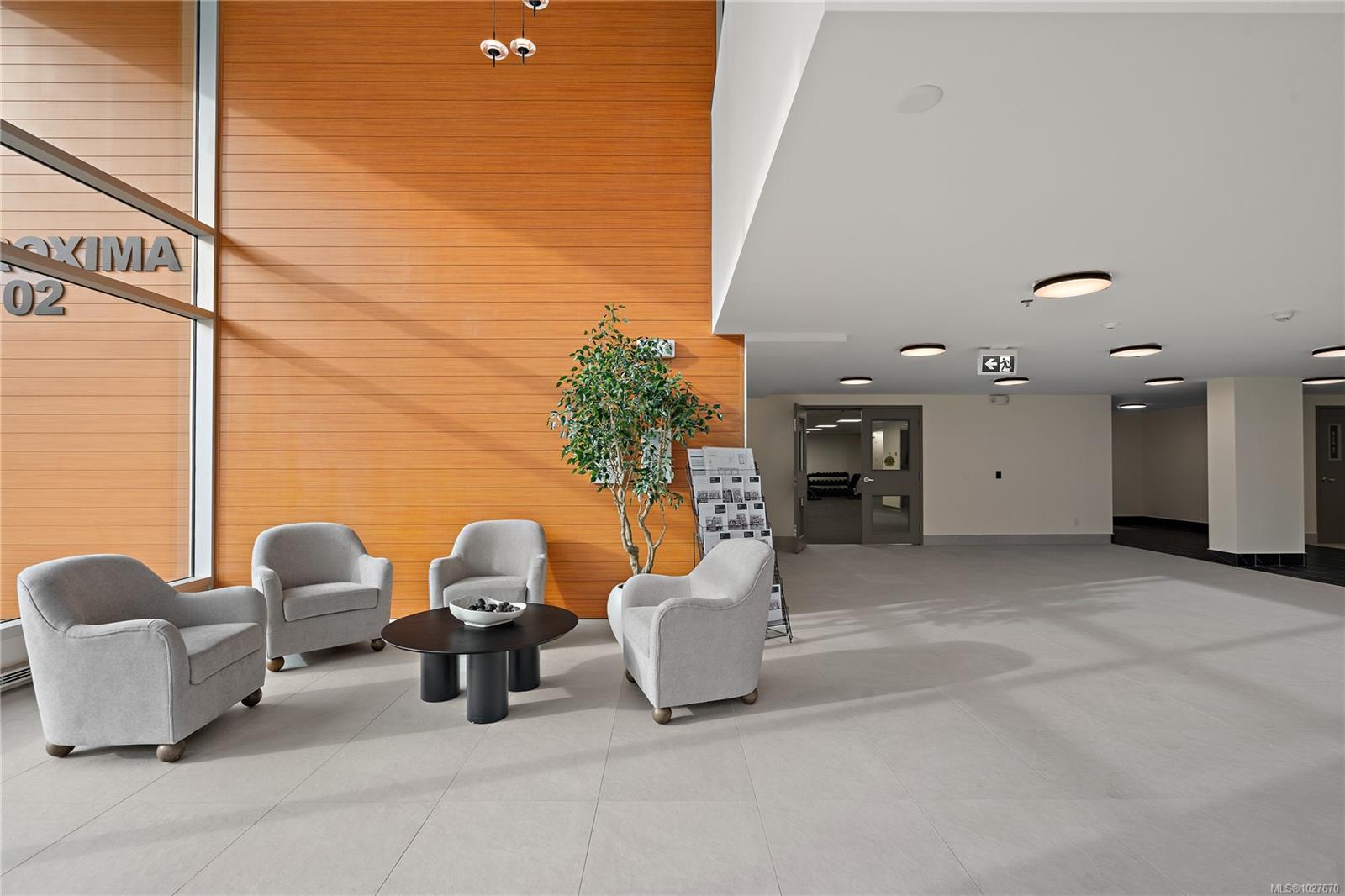 Move-in ready!! Unit 507 is the last available in this 1 bed 1 bath floor plan perched up on level 5 offering elevated living in the heart of Esquimalt. Perfectly positioned as a sub-penthouse corner unit, this home is located in the Bellus building on the Lampson St. side. Crafted by award-winning GT Mann Contracting with interiors by Spaciz Design, this residence is finished in the sophisticated Caligo colour scheme — a rich, modern palette complemented by quartz countertops, an eat-in kitchen island, premium appliance package, heated ensuite flooring, fireplace, and a heat pump with cooling for year-round comfort. Residents at The Proxima enjoy thoughtfully designed amenities including a fully equipped gym, inviting atrium, & beautifully landscaped courtyard space. Located just moments from Saxe Point Park, local breweries, Esquimalt Market, shopping, and the Archie Browning Sports Centre, this is vibrant, walkable living at its finest. Secure underground parking & storage included.