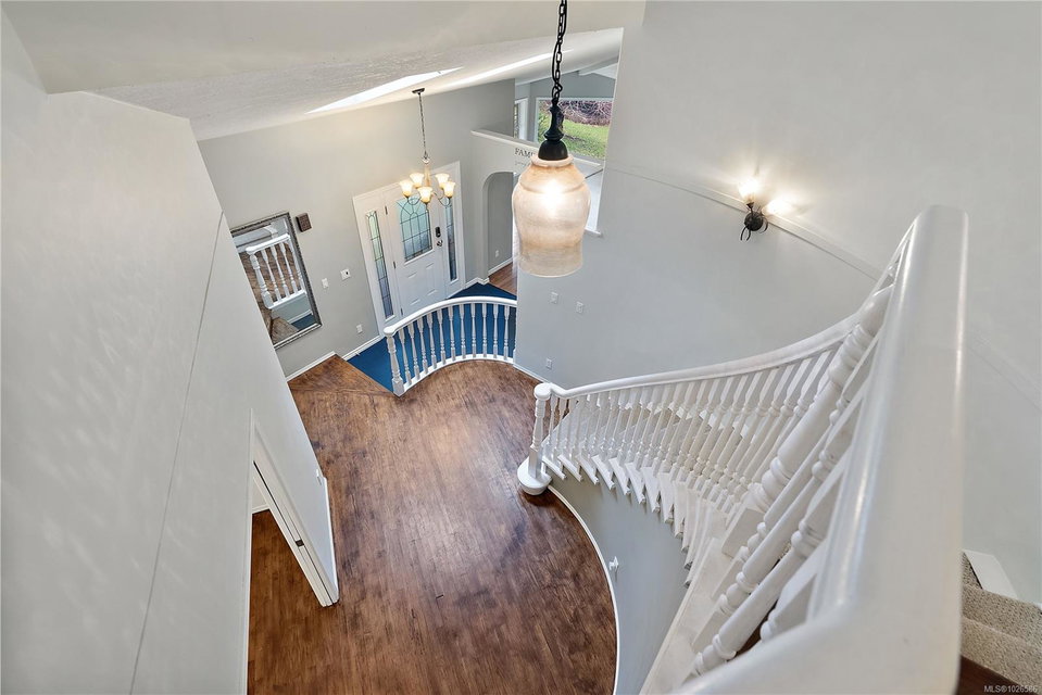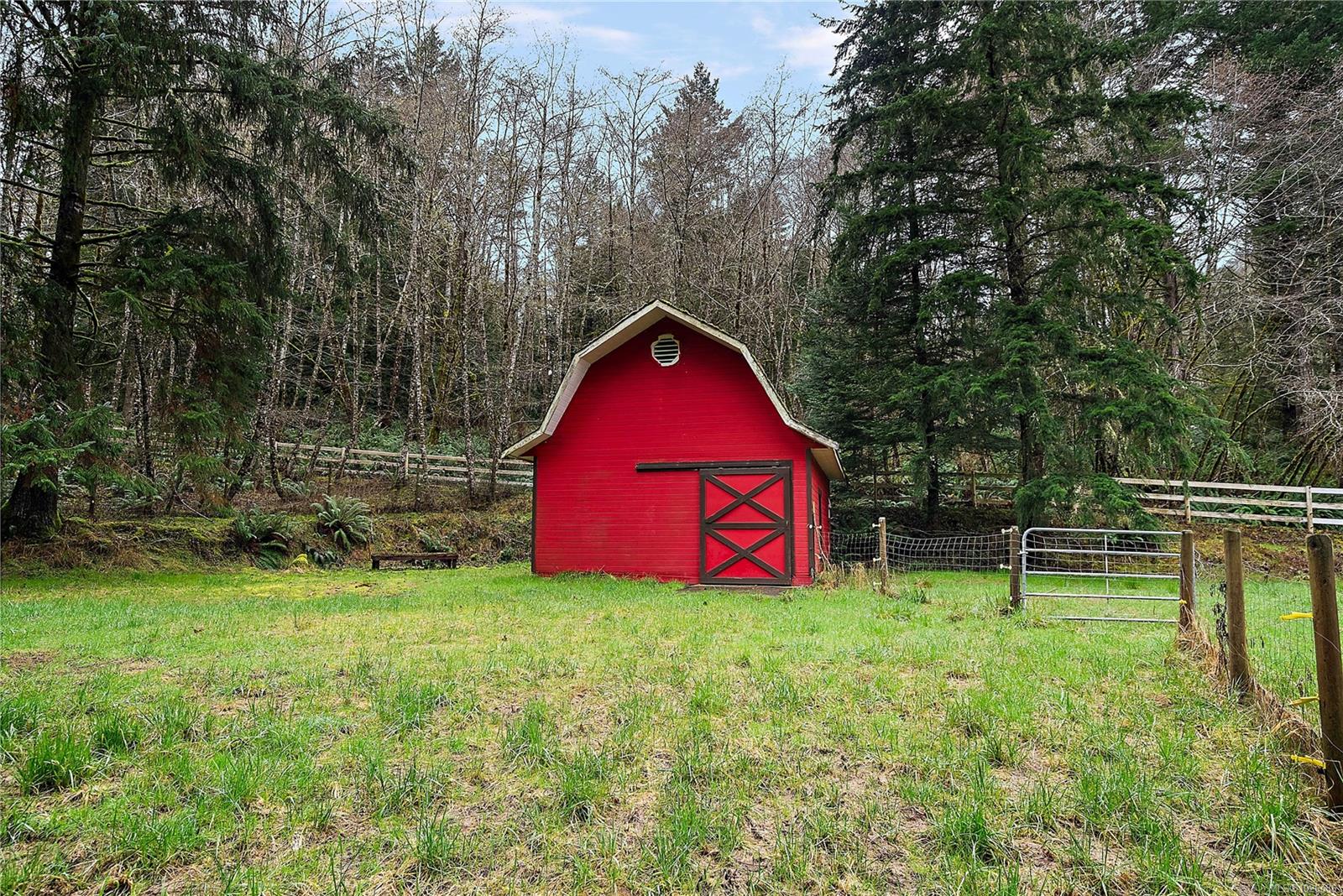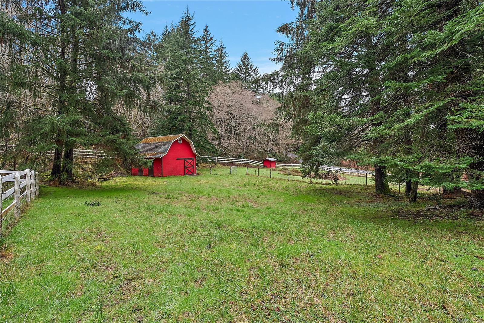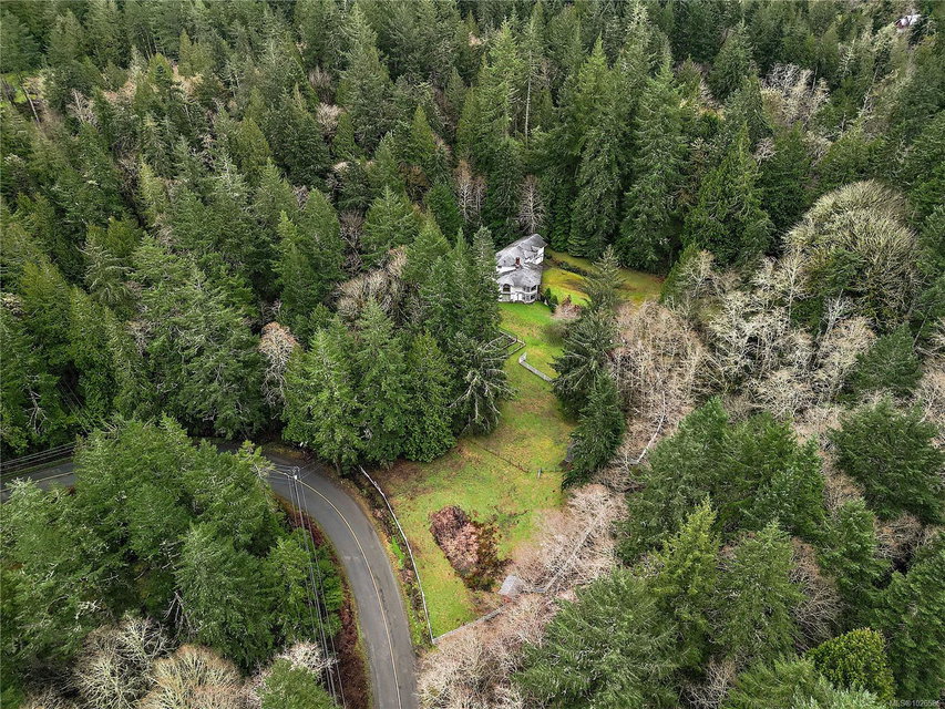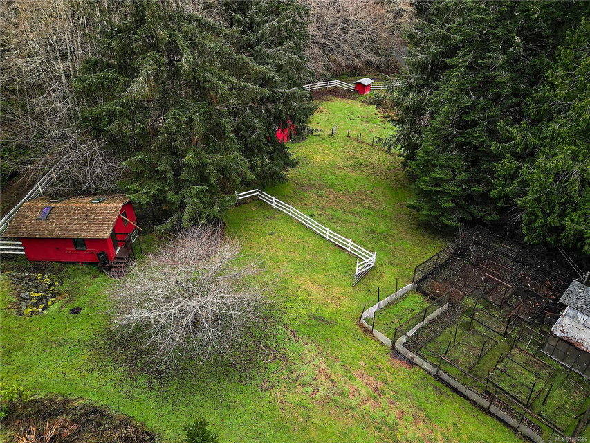 Lovely East Sooke estate set on nearly 2.5 level acres, just minutes from Anderson Cove. This picturesque property features a rolling pasture, a burbling creek, barn and green house in a peaceful rural setting close to trails and schools. The 3,776 sq. ft. home offers 4 bedrooms and 4 bathrooms with a thoughtful layout ideal for family living and entertaining. The grand two story entrance with winding staircase to the upper level sets the scene for grand ambiance. Main level features spacious open rooms with vaulted ceilings and wood floors. The living room offers a cozy fireplace, while the family room flows seamlessly into a large eating area and kitchen. A separate formal dining room, powder room completes the main level. Upstairs, the very large primary suite is a true retreat with an updated spa-like 5-piece ensuite, walk-in closet, and private balcony. Two additional bedrooms and a 4-piece bath are also located on this level. The lower level offers a generous one-bedroom in-law suite, ideal for extended family, guests or revenue. Additional features include a large single-car garage/workshop, a two-stall barn with durable Gabro roof, greenhouse, and multiple outdoor storage sheds. A rare opportunity to enjoy space, privacy, and a serene East Sooke lifestyle.
