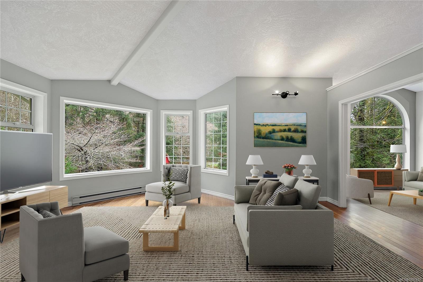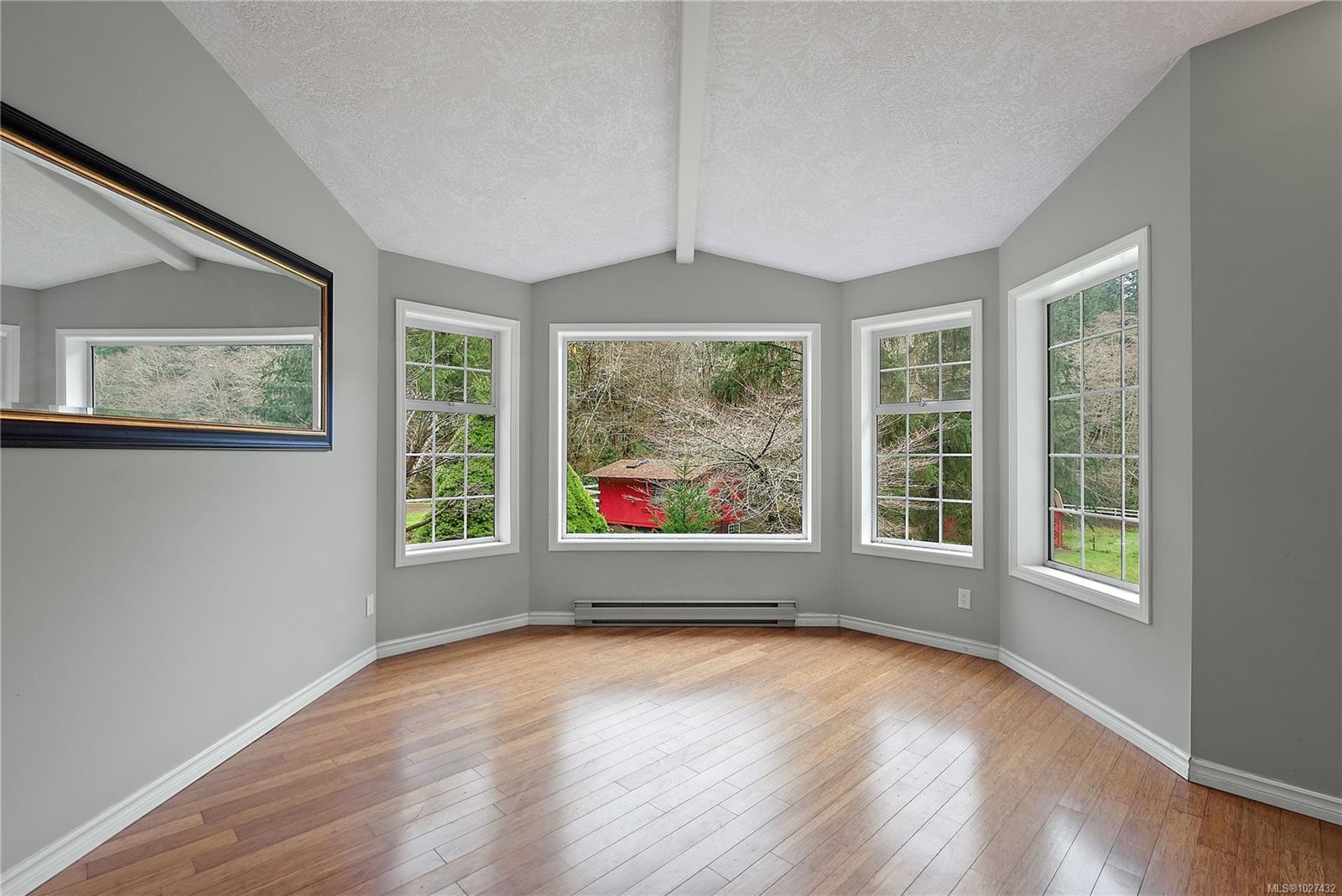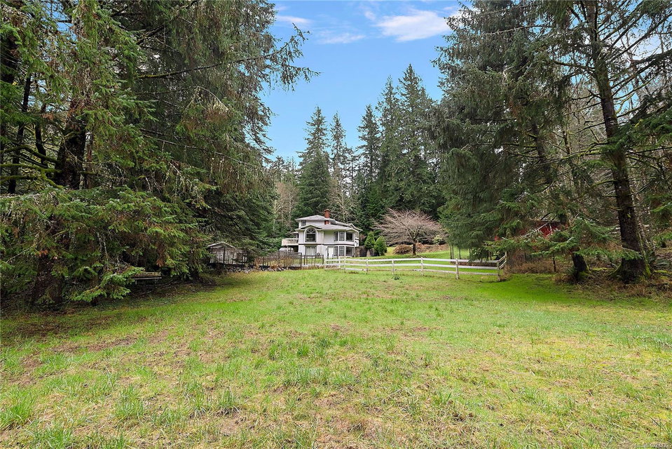 Lovely East Sooke estate set on nearly 2.5 level acres, just minutes from Anderson Cove. This picturesque property features a rolling pasture, a burbling creek, barn and green house in a peaceful rural setting close to trails and schools. The 3,776 sq. ft. home offers 4 bedrooms and 4 bathrooms with a thoughtful layout ideal for family living and entertaining. The grand two story entrance with winding staircase to the upper level sets the scene for grand ambiance. Main level features spacious open rooms with vaulted ceilings and wood floors. The living room offers a cozy fireplace, while the family room flows seamlessly into a large eating area and kitchen. A separate formal dining room, powder room completes the main level. Upstairs, the very large primary suite is a true retreat with an updated spa-like 5-piece ensuite, walk-in closet, and private balcony. Two additional bedrooms and a 4-piece bath are also located on this level. The lower level offers a generous one-bedroom in-law suite, ideal for extended family, guests or revenue. Additional features include a large single-car garage/workshop, a two-stall barn with durable Gabro roof, greenhouse, and multiple outdoor storage sheds. A rare opportunity to enjoy space, privacy, and a serene East Sooke lifestyle.