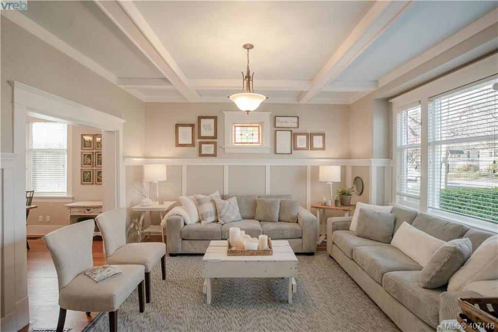 Have you ever Dreamed of living just steps to the sea, a stroll to Cook St village or even walkable to down town??!! Well this Updated 1911 Character Charmer is for you. front entry welcomes you to the updated character interior featuring coffered 9 ft. ceilings, stained glass windows, wainscoting and original fir floors. The generously size living room offering loads of light and a cozy fireplace is sure to impress. The formal dining room leads to the bright modern kitchen with large island and plenty of cupboards. A small office and powder room complete the main level. Up you will find three good size bedrooms and a delightful updated 4 piece bathroom. The separate studio/office is wired and heated. The lower level offers loads of storage with a direct exit to the back garden. Updates include 200 amp service, high efficiency furnace, new windows throughout and more. Beacon Hill Park, Clover Point, the beach and all amenities just a short walk away.