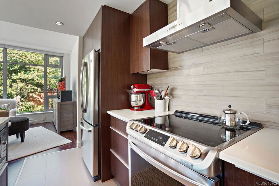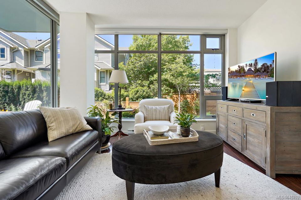 2 bed 2 bath with your very own secluded terrace & patio in the highly sought out location in James Bay nestled in on the quiet side of the building. 104-646 Michigan offers an open concept space ideal for entertaining with bedrooms located on opposite sides of the condo. The open and airy space features floor to ceiling windows with separate dining area & you will not be disappointed by the kitchen! Built in lower microwave, stainless steel appliances, soft closing cabinets, and large kitchen island. The strata building itself is unique with it’s top floor BBQ station/lounge area that overlooks Downtown Victoria w/ mountains & ocean views. The secure underground level offers a pet washing station, bike storage, & parking. Not to mention the PRIME location! Steps to your favorite dining, recreational, & entertainment experiences. If you are looking for a vibrant lifestyle, Michigan Street is the place to be!