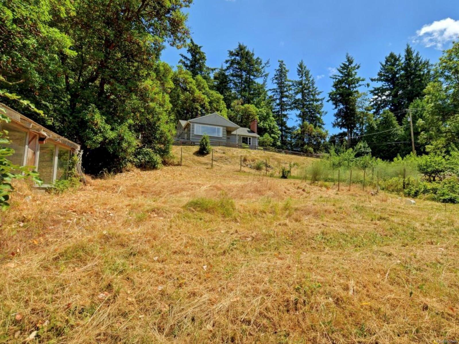 Very rare property, 1.50 acres with stunning views overlooking Elk Lake. The value of this property is in the land, the house has some major issues. This is ideally located 15 mins to town and airport and ferry. The acreage still has beautifully treed areas as well as perfect location for a hobby farm. You could build your dream house and take advantage of the unobstructed views of the lake and the stunning sunsets. Being sold as is where is.