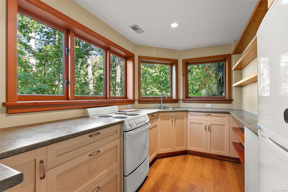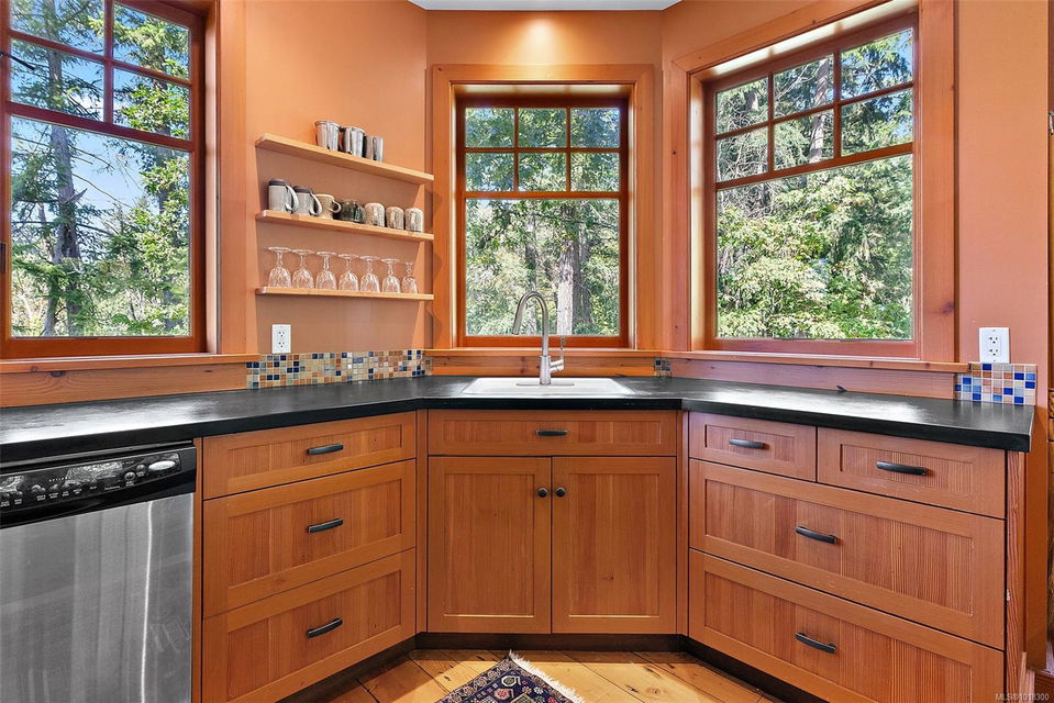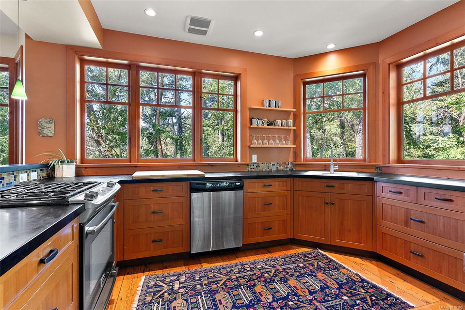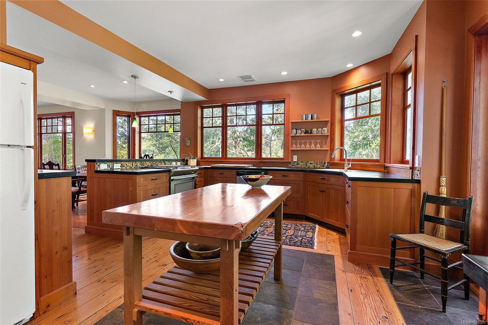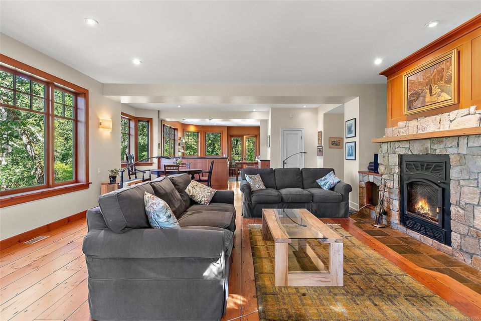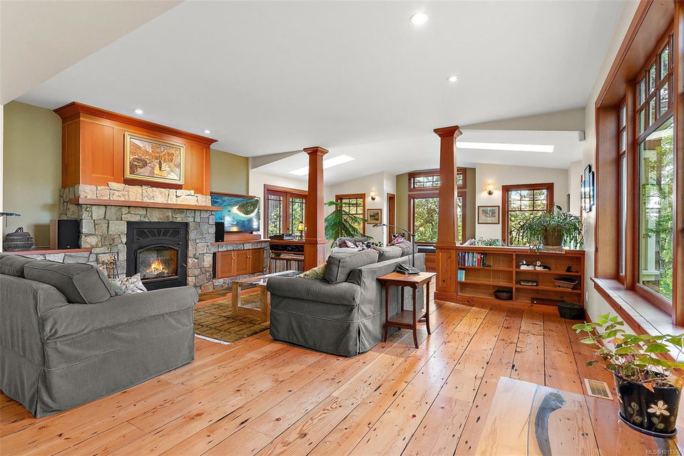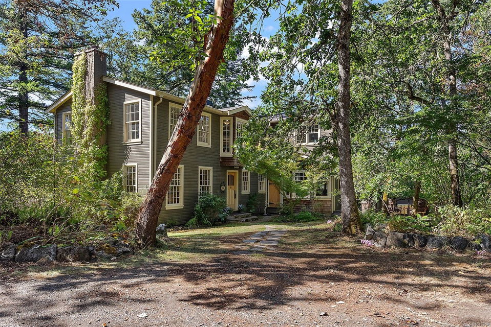 Nestled at 800 Bardsey Lane in Victoria, BC, this 5-bed, 4-bath property blends urban access with serene escape, just steps from Saanich Inlet and John Dean Provincial Park’s lush trails and ancient Douglas firs. Spanning 2.23 acres of wooded haven with mature Fir, Arbutus, and Garry oak, this property offers both privacy and beauty. Rebuilt in 2009 with a full renovation and major addition, the 4,287-sq-ft residence feels brand-new. Clear fir details, solid wood floors, and a striking rock fireplace anchor the family room. The open kitchen shines with Paperstone counters and custom-made fir cupboards. There are two spacious studies/offices. The primary suite is large and features forest views, while a private 816-sq-ft 1-bed suite with kitchen and patio suits guests or rentals. Surrounded by nature, this property is a personal slice of heaven—located in the heart of the Saanich Peninsula, just around the corner from the beautiful Mt. Newton Cross Road.