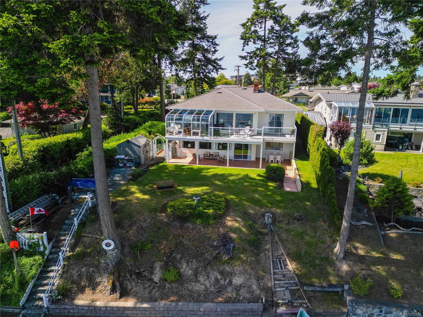 Experience Unparalleled Waterfront Living at 8001 Arthur Drive! Discover an exceptional opportunity to own a very usable walk-on waterfront property in Central Saanich. This stunning 2,467 sq ft home offers direct access to a beautiful beach, perfect for kayaking, beach activities, such as fish-frys and evenings around the fire pit, embracing a vibrant coastal lifestyle. Enjoy the convenience of being close to Saanichton’s shopping, amenities, and transit, with the charming vibrancy of Sidney by the Sea just a short 15-minute drive away. Step inside and be captivated by amazing water views from nearly every room. The fabulous sunroom and expansive deck create an ideal setting for seamless indoor/outdoor living and entertaining, allowing you to fully immerse yourself in the breathtaking surroundings. The thoughtfully designed upper level boasts a formal living room with a cozy gas fireplace, commanding ocean views, and direct access to the deck and sunroom. This level also features a spacious dining room, a well-appointed kitchen with skylights and a large eating area, plus a convenient primary bedroom on the main floor complete with a 4-piece ensuite bath and a walk-in closet.